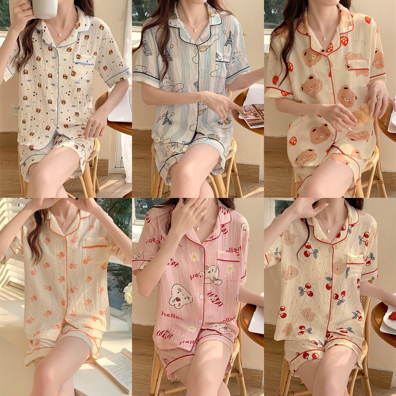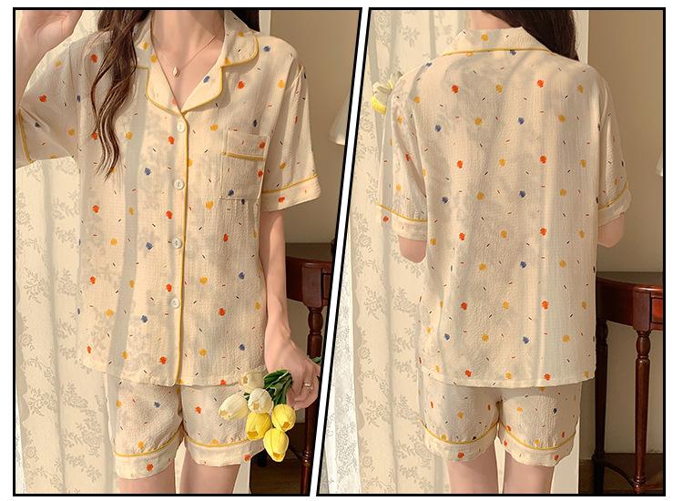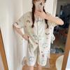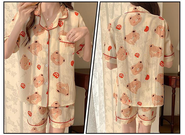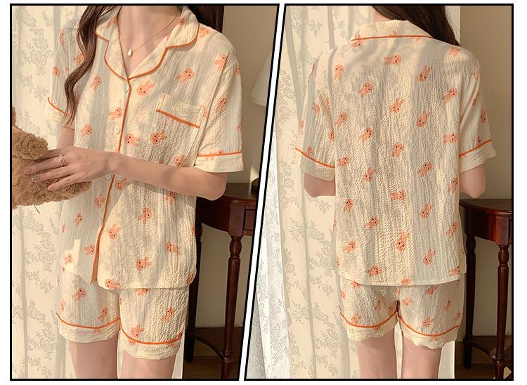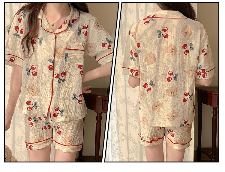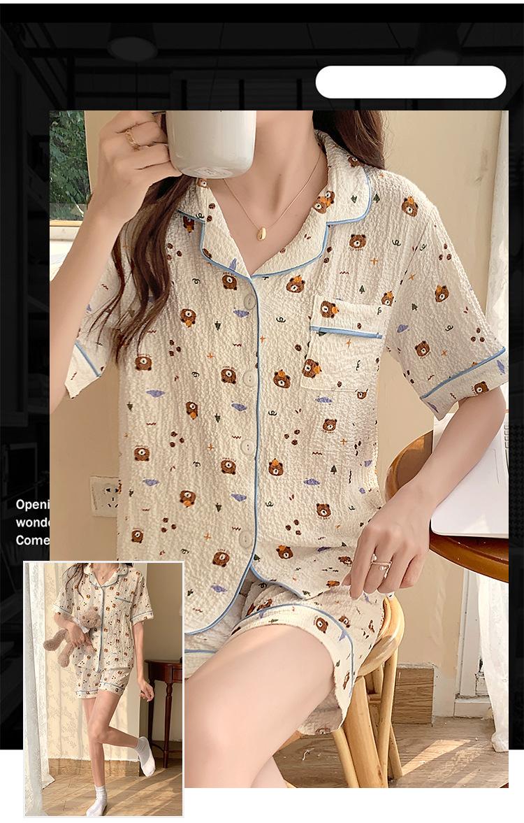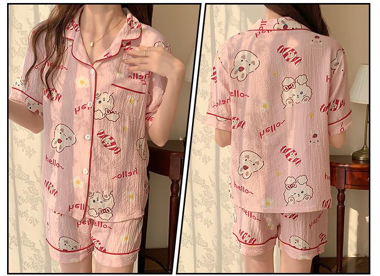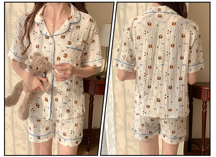 Pijama de manga corta para mujer, estilo coreano 2024, cárdigan de tela de crepé con burbujas para verano, ropa bonita y dulce para el hogar, traje de verano