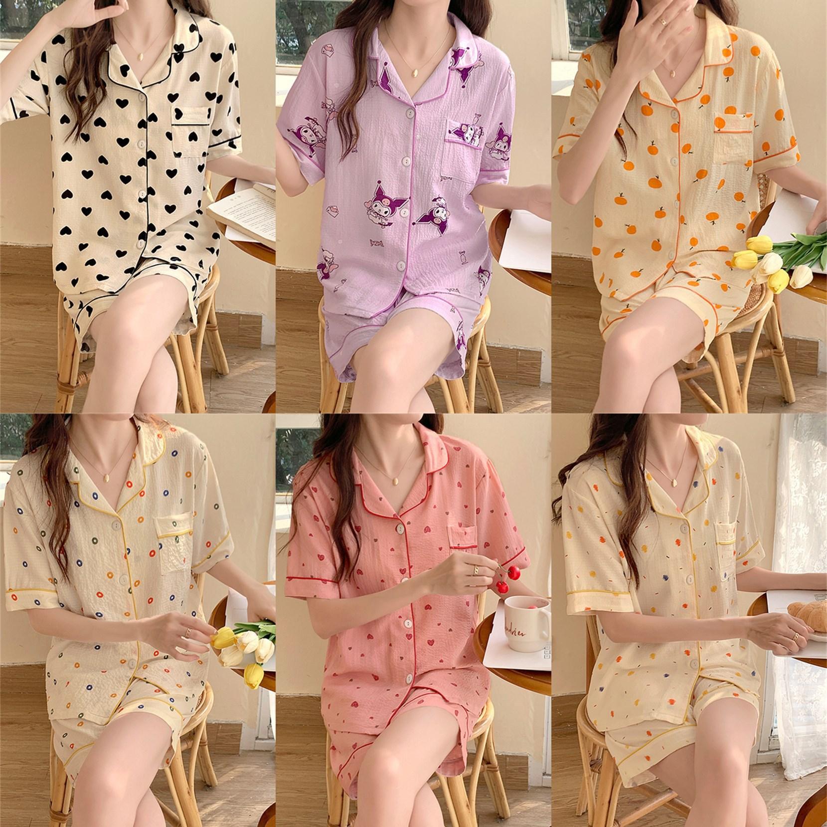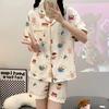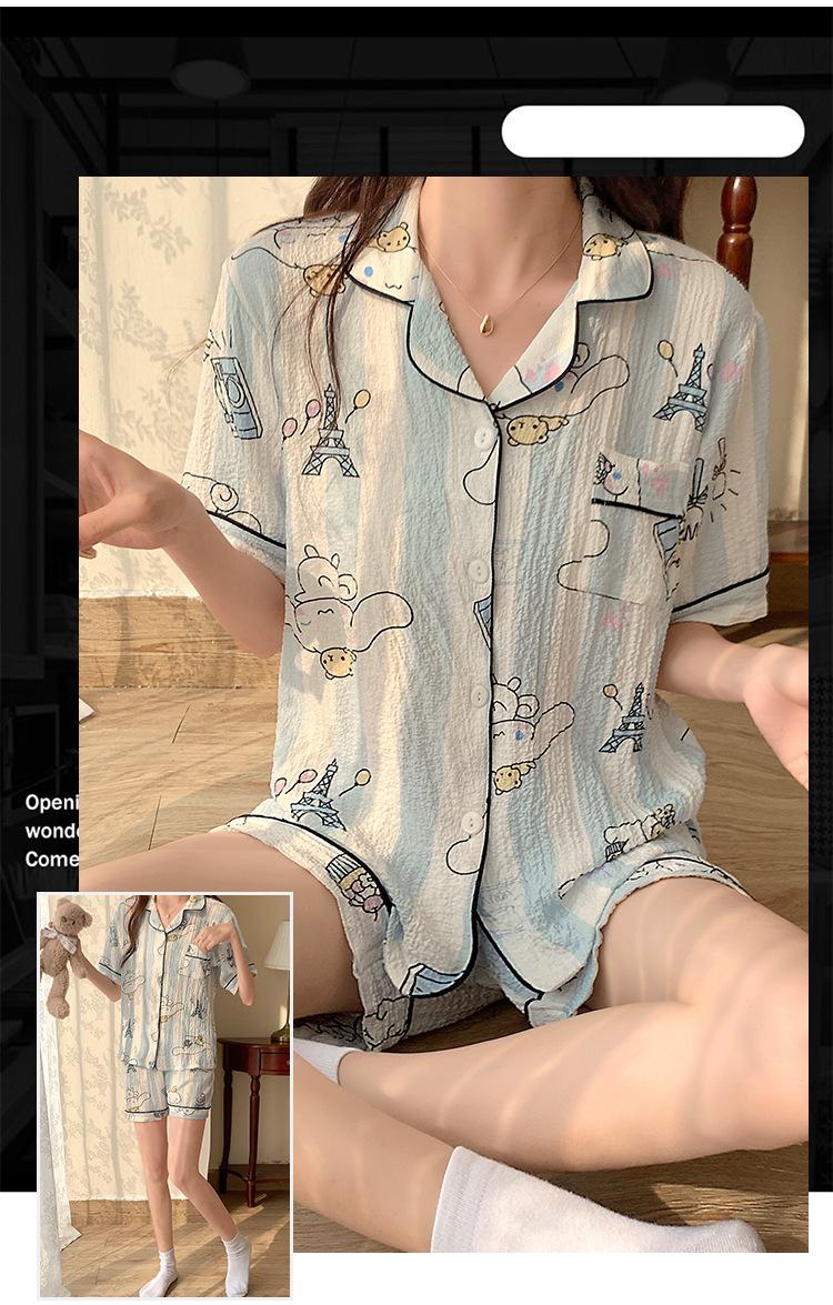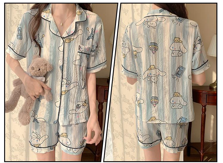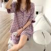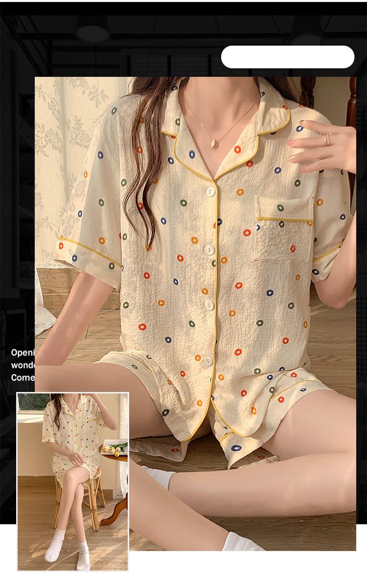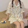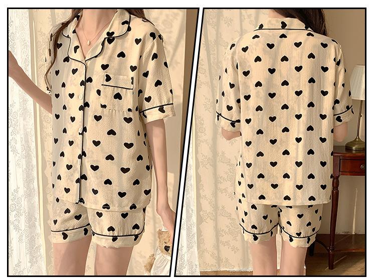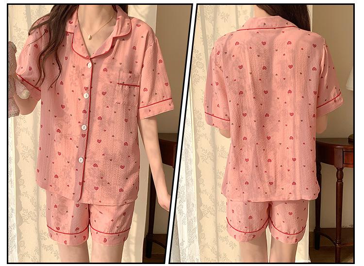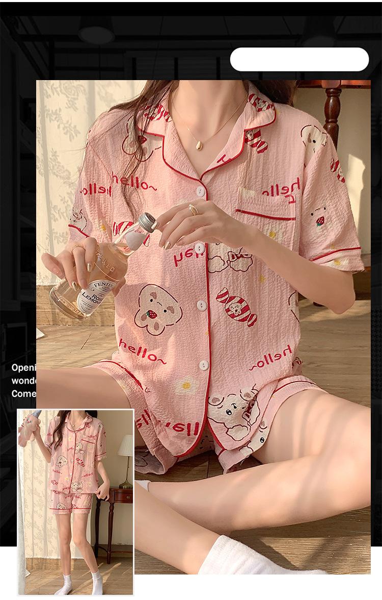 Pijama de manga corta para mujer, estilo coreano 2024, cárdigan de tela de crepé con burbujas para verano, ropa bonita y dulce para el hogar, traje de verano