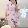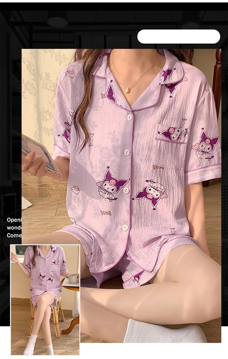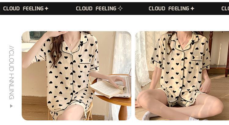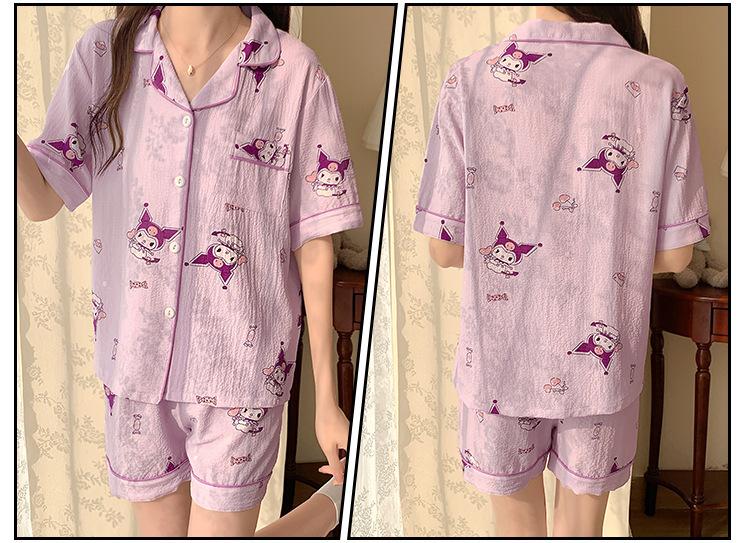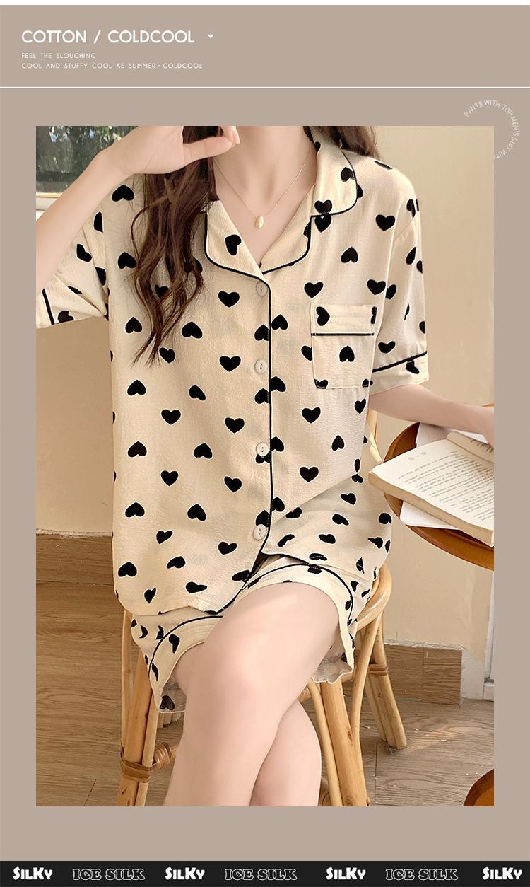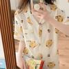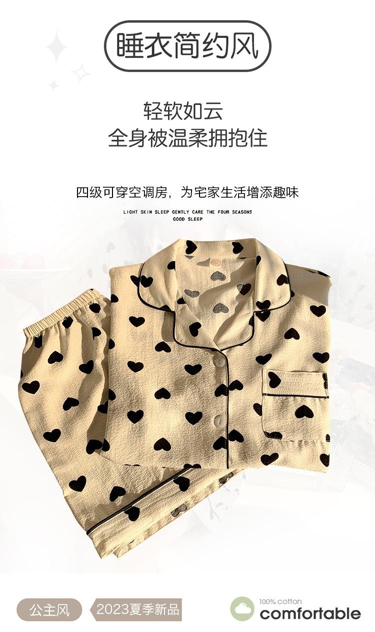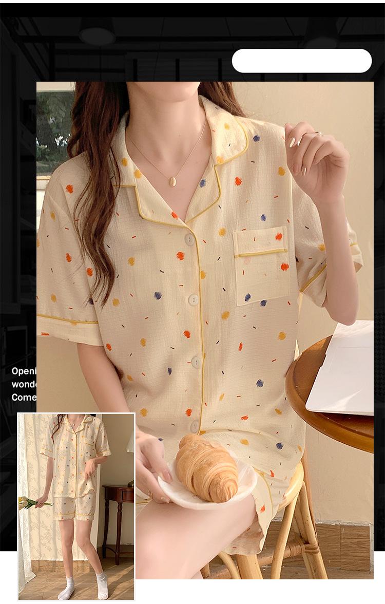 Pijama de manga corta para mujer, estilo coreano 2024, cárdigan de tela de crepé con burbujas para verano, ropa bonita y dulce para el hogar, traje de verano
