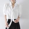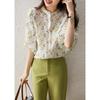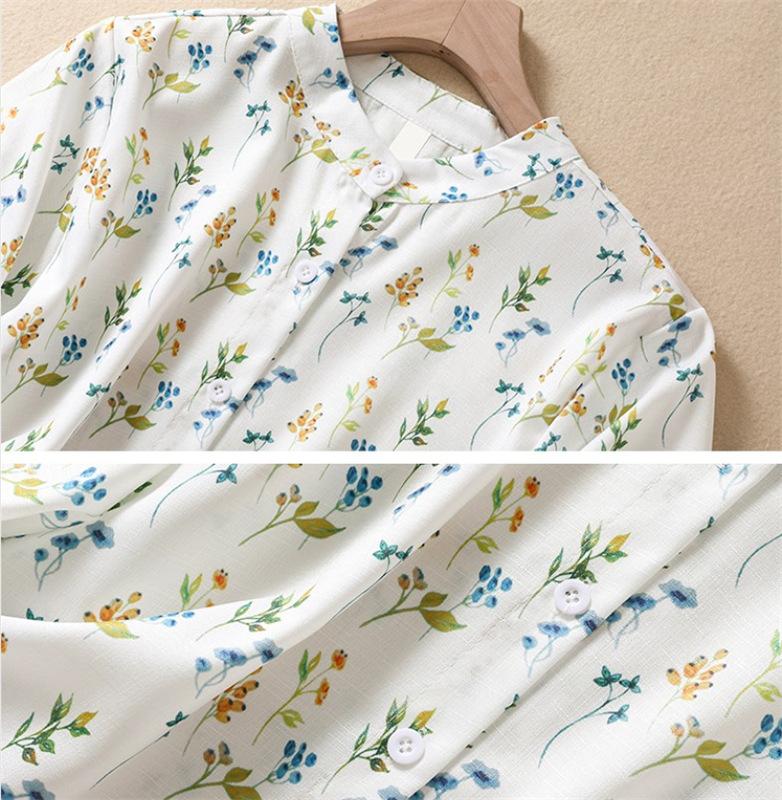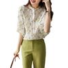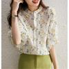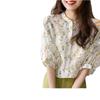 Camisa con estampado floral, verano 2023, nuevo diseño, Sense Niche, para mujer, holgada, de media manga, ajustada, con cuello alto.