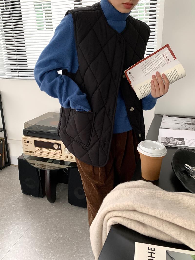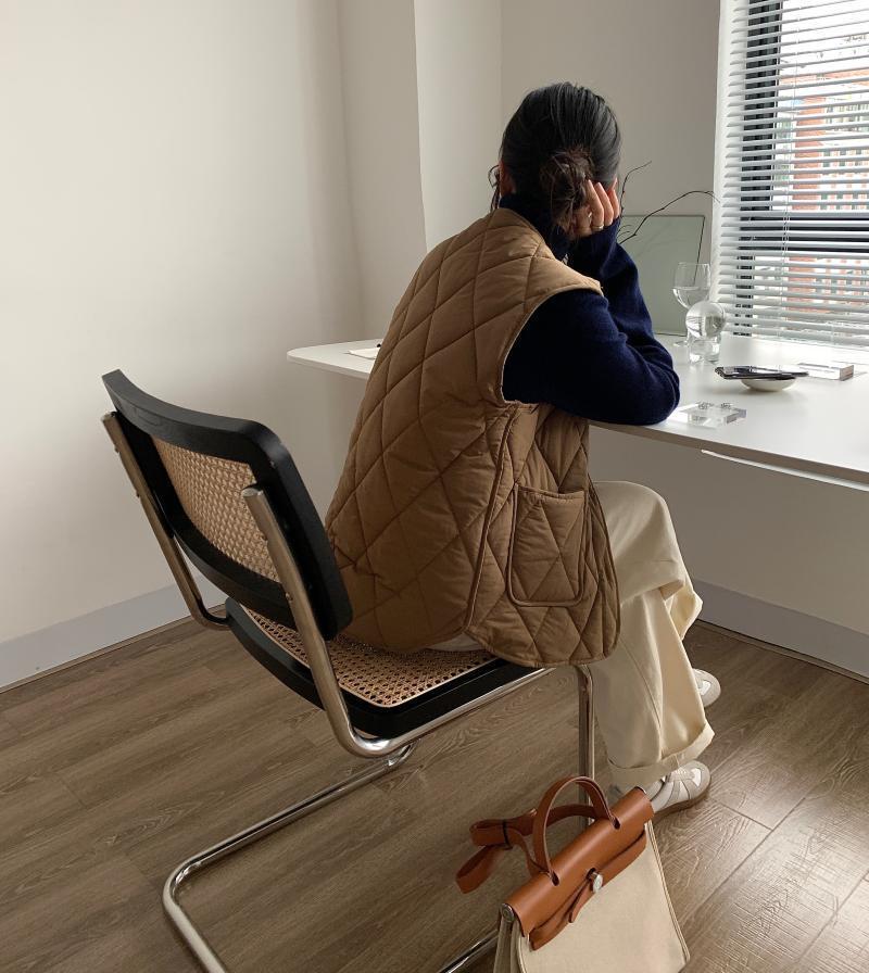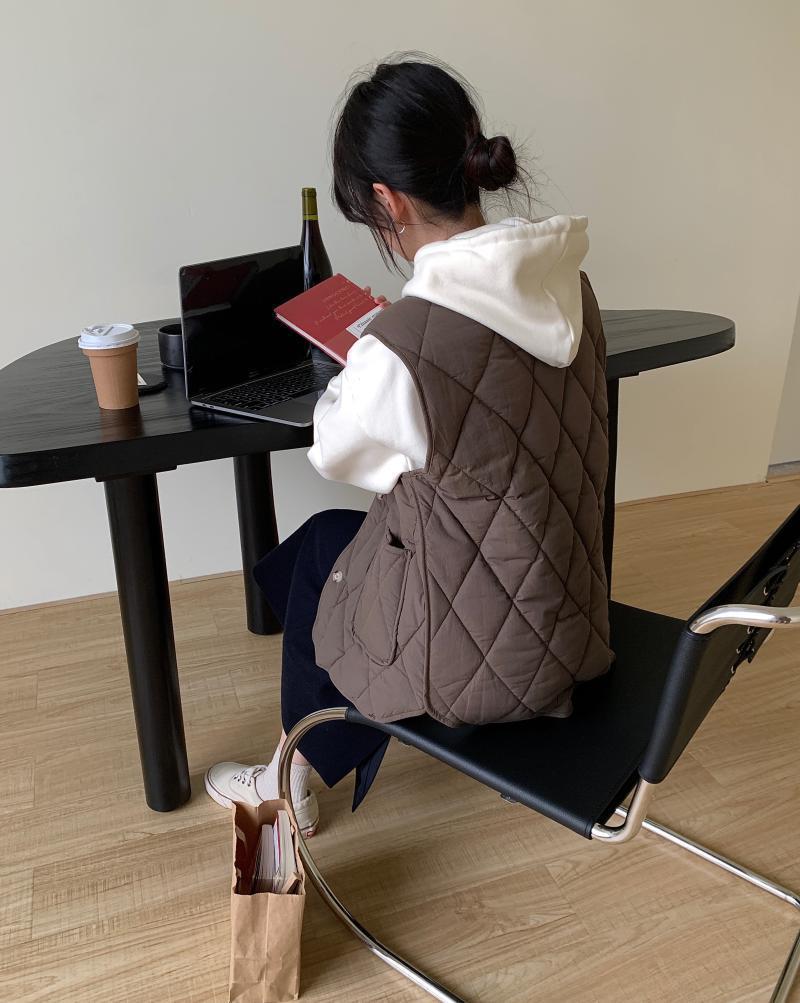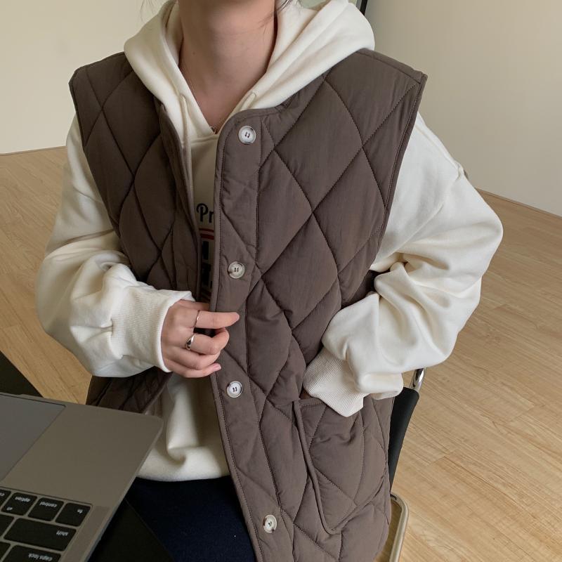 Chaleco ligero y combinable para otoño e invierno, chaqueta acolchada cálida y holgada con cuadros rombales para mujer