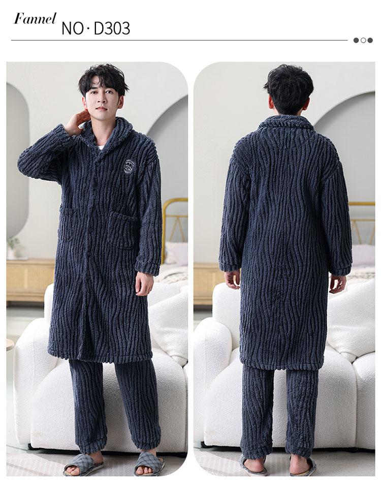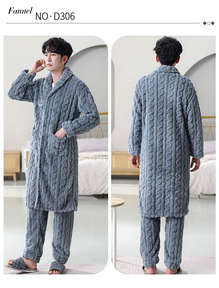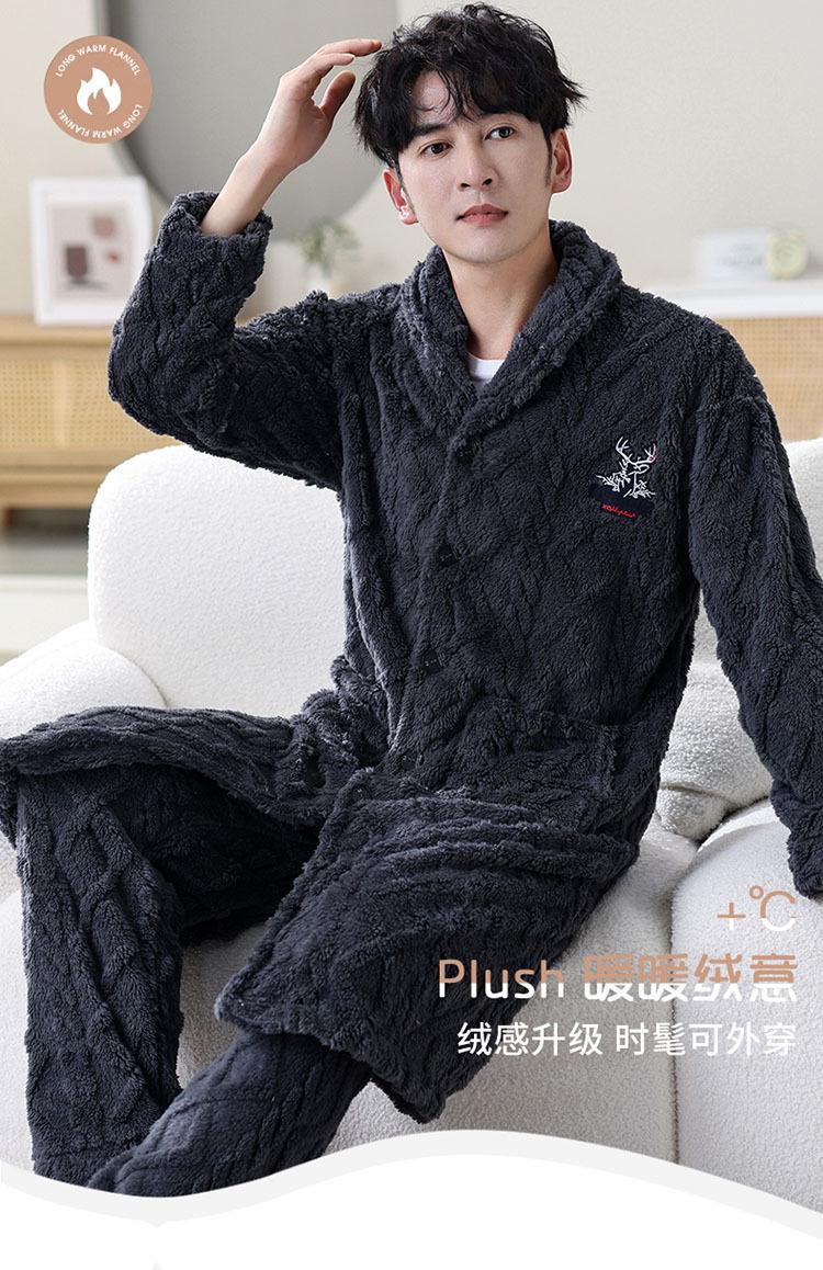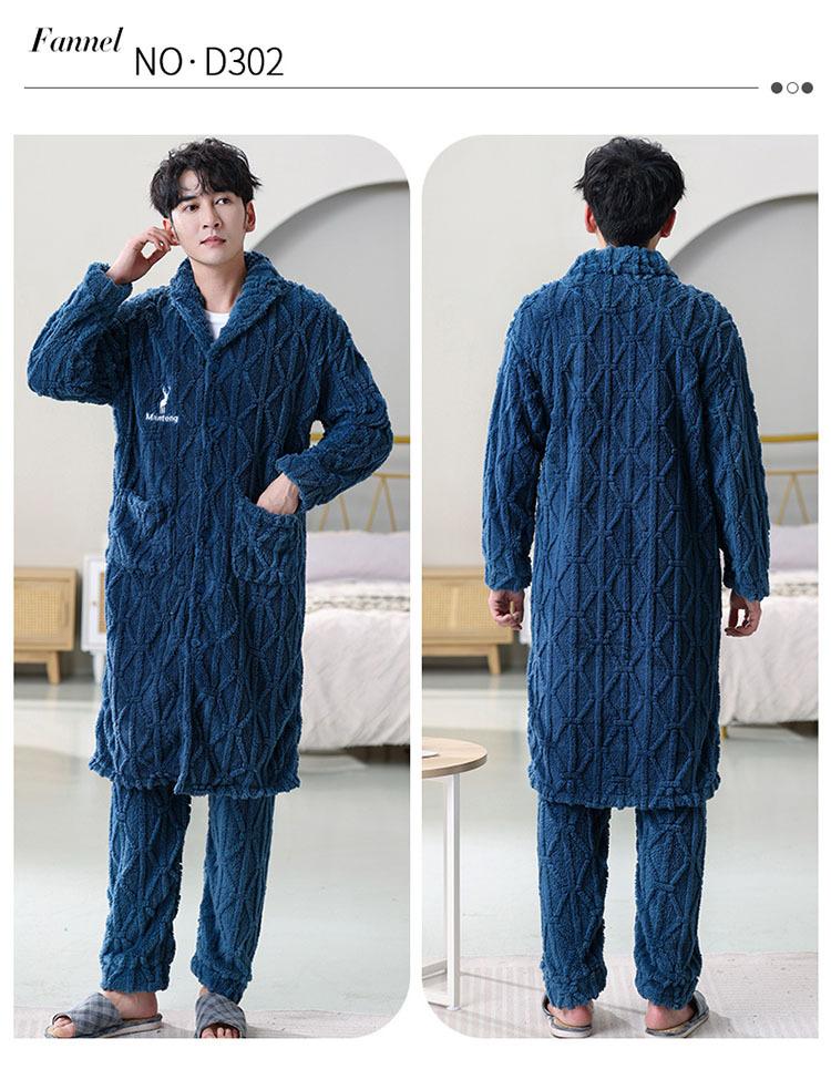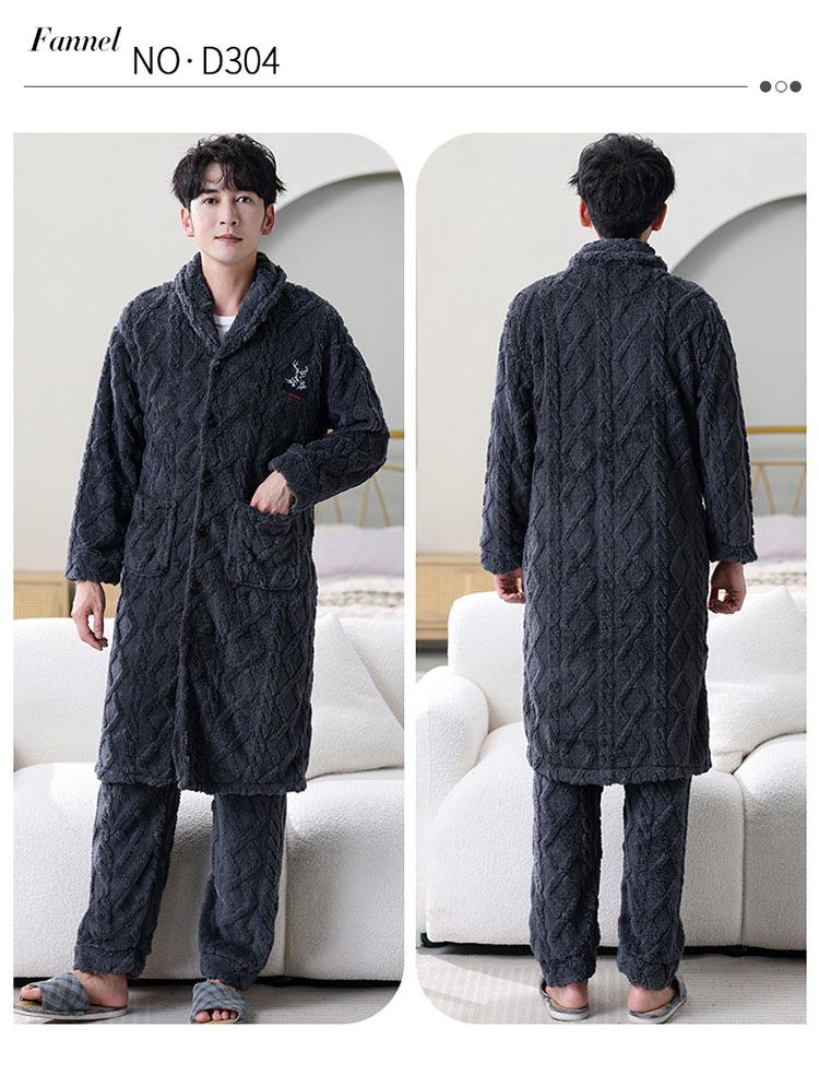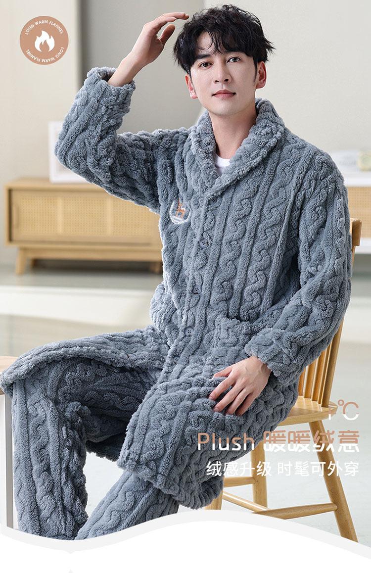 Nuevo pijama para hombre de otoño e invierno con forro polar coral, bata larga de felpa de invierno gruesa con forro polar, se puede usar al aire libre