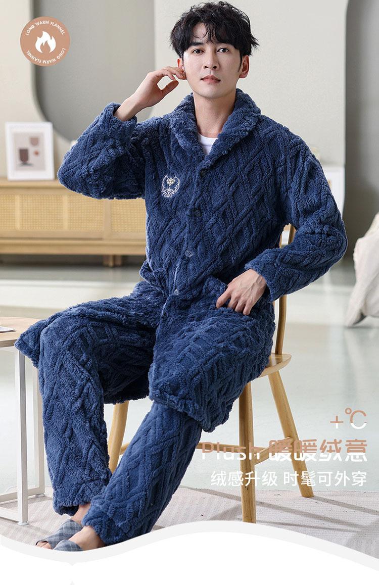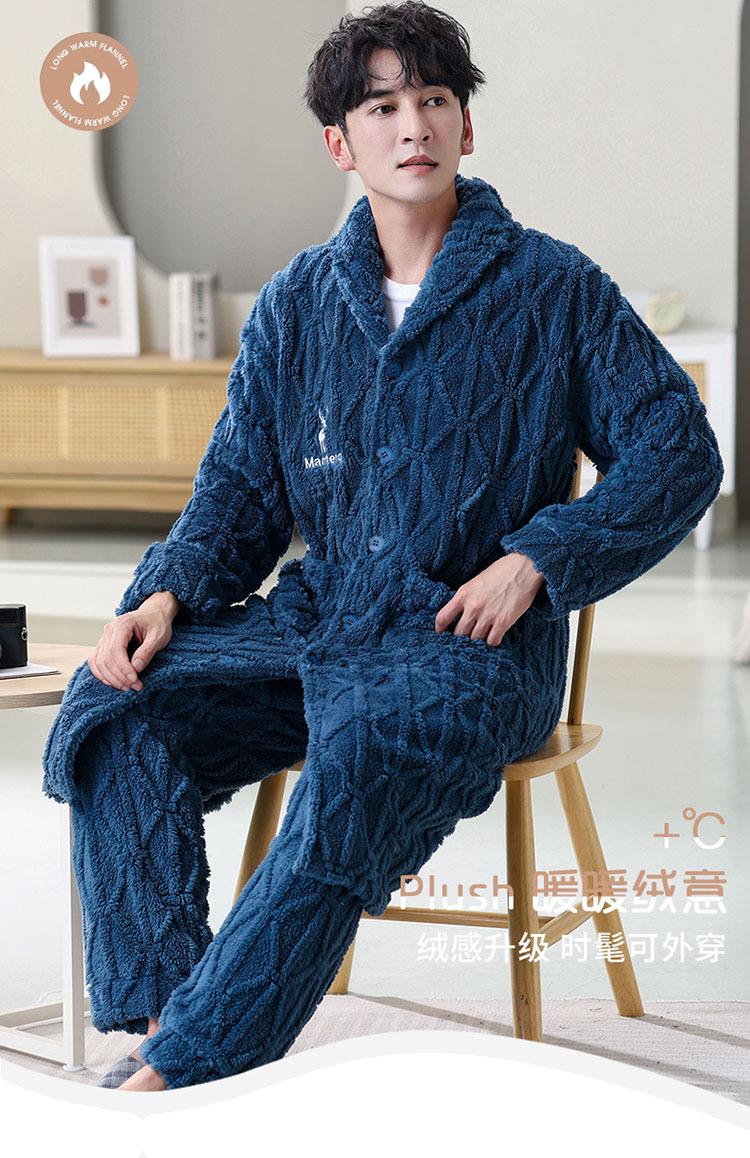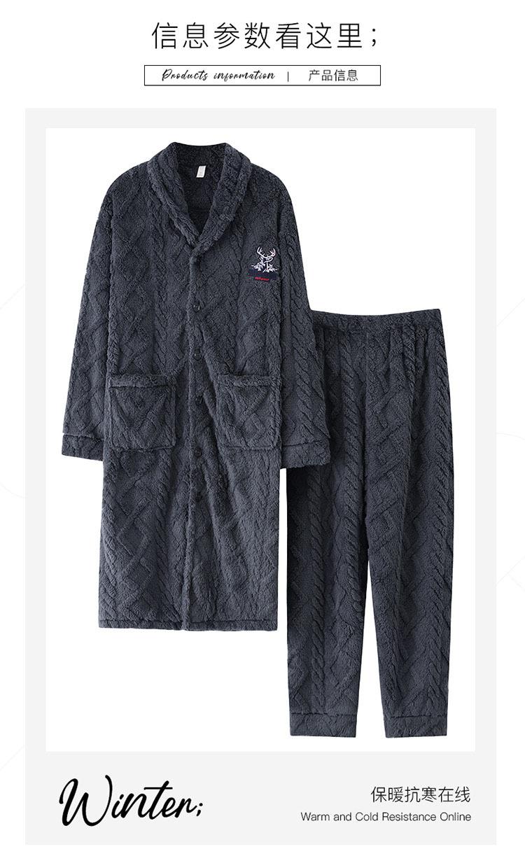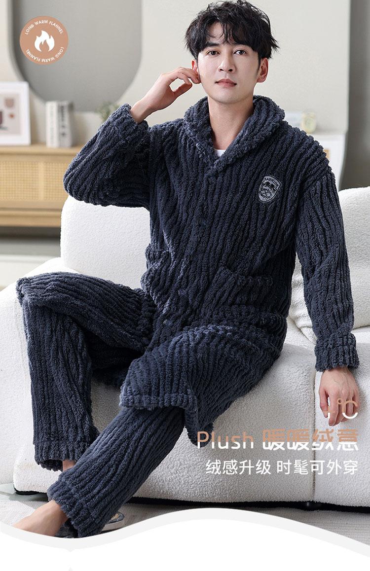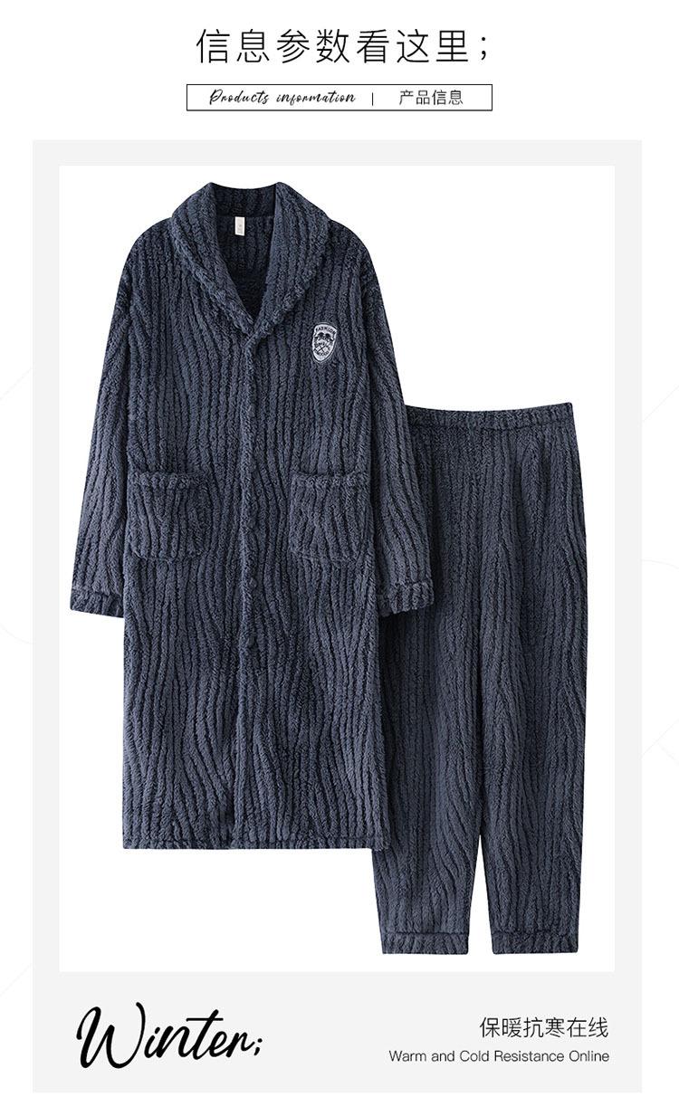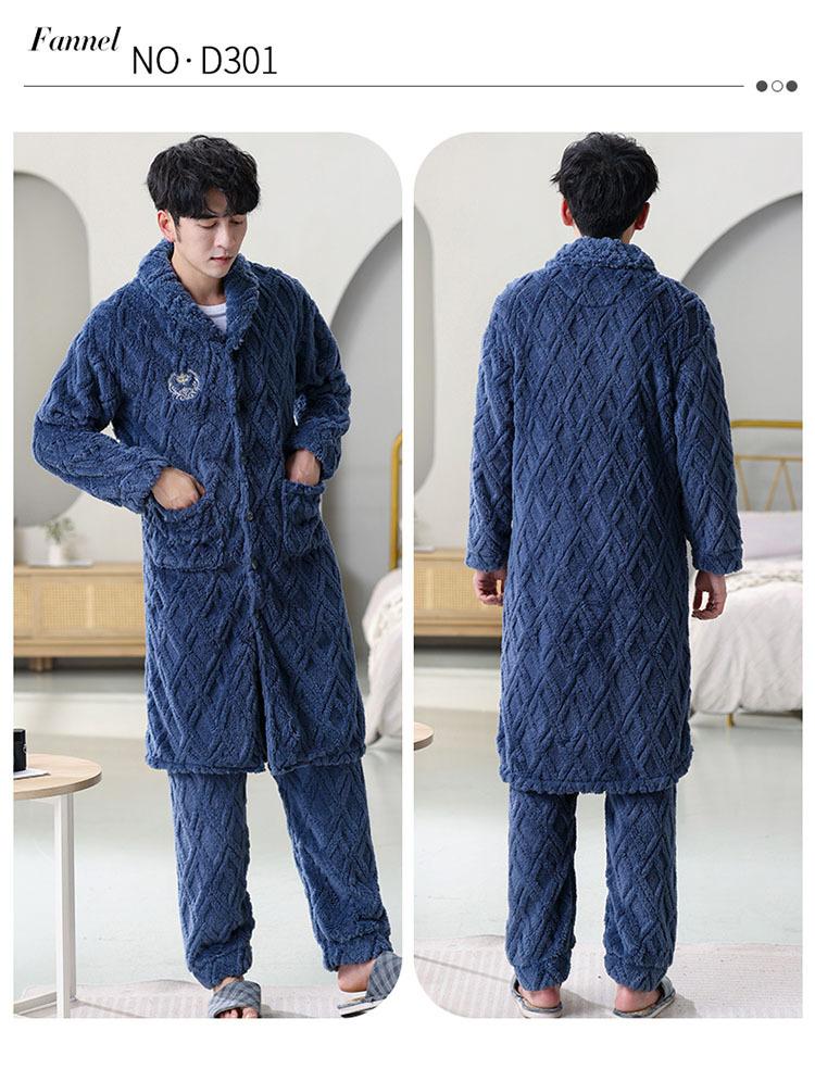 Nuevo pijama para hombre de otoño e invierno con forro polar coral, bata larga de felpa de invierno gruesa con forro polar, se puede usar al aire libre