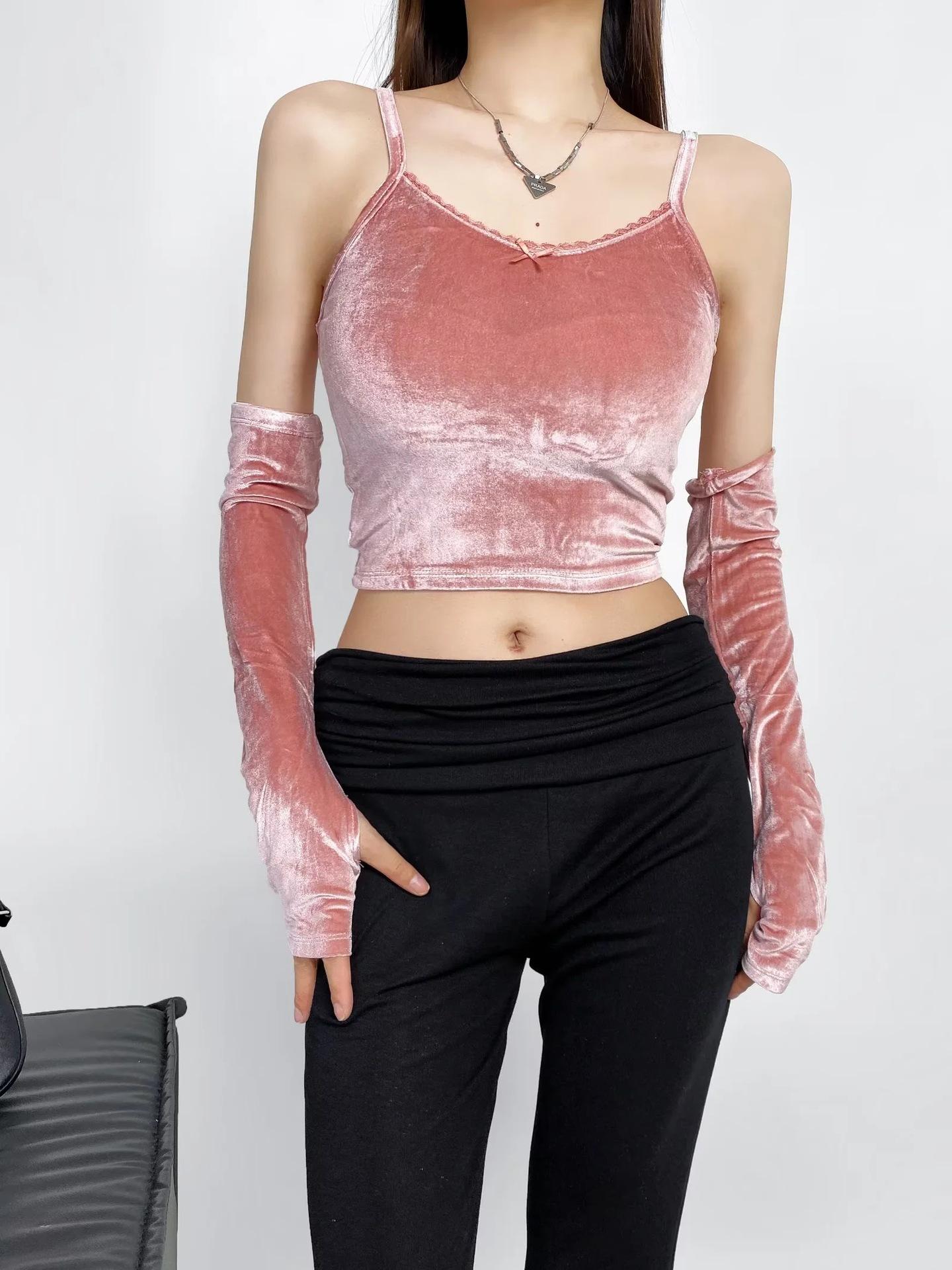 Camisola de encaje con cuello en V de Sweet Spice Girl para mujer, primavera 2024, nueva camiseta vintage de manga corta Lori, moderna