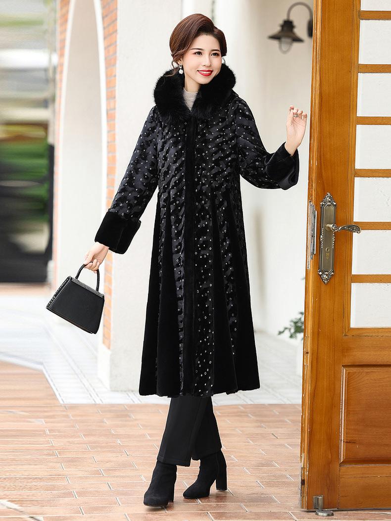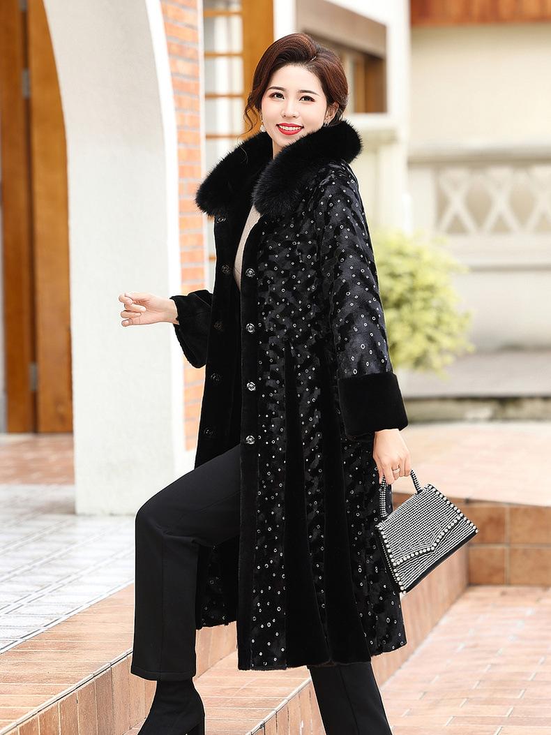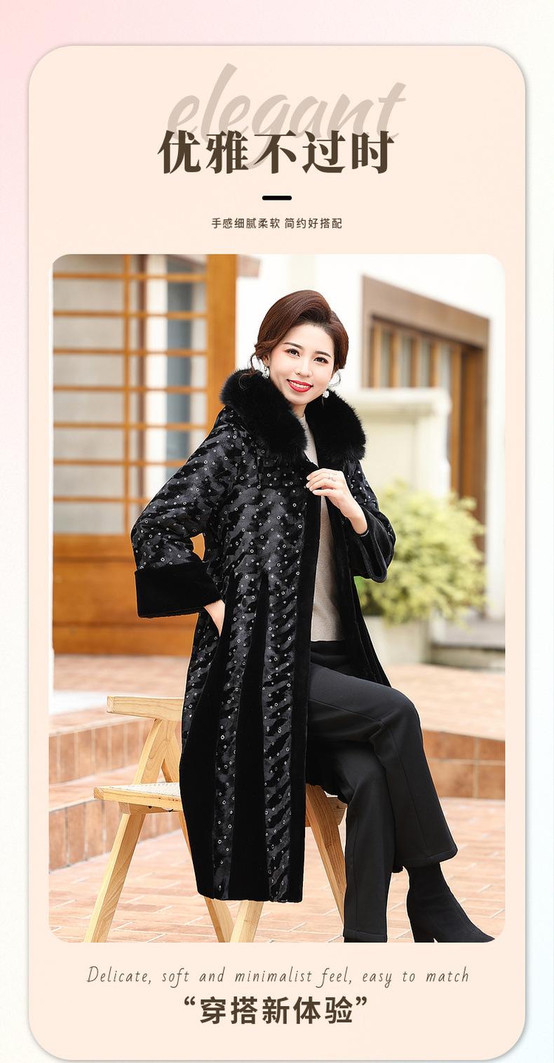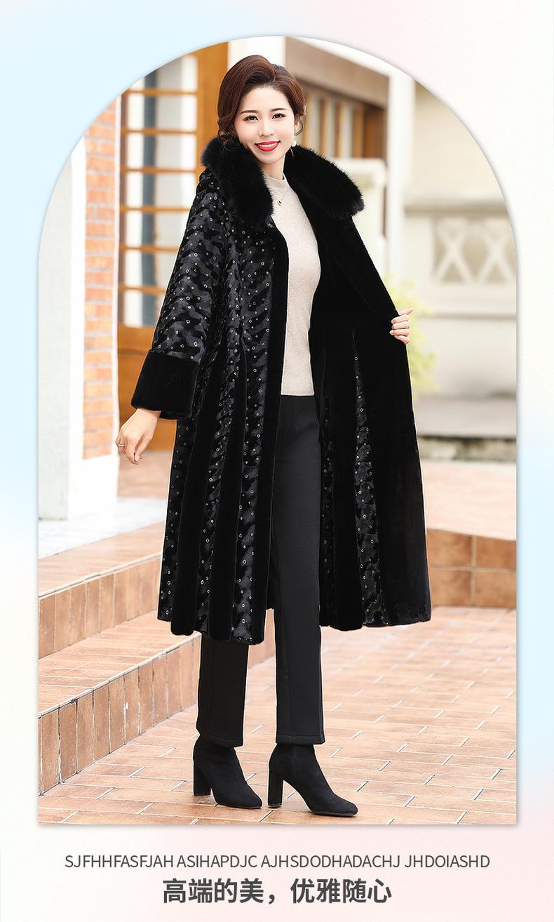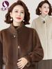 Abrigo de lana de visón sintético estilo occidental para madres de mediana edad, ropa de invierno, abrigo de piel sintética de longitud media para mujeres de mediana edad y mayores