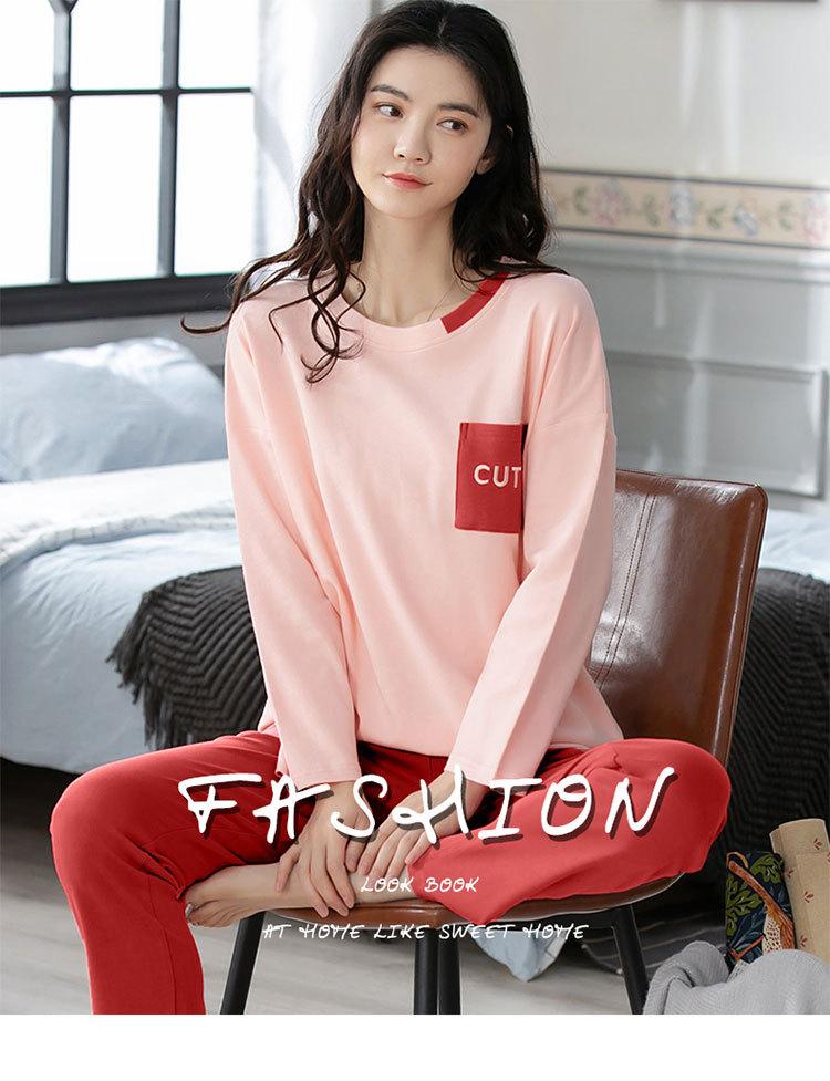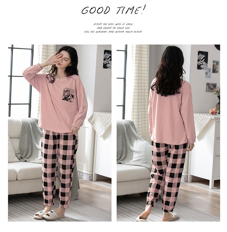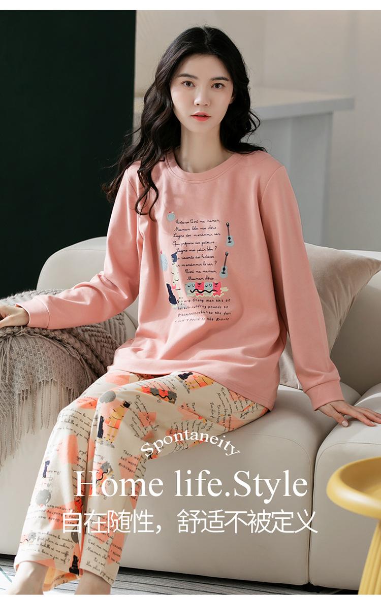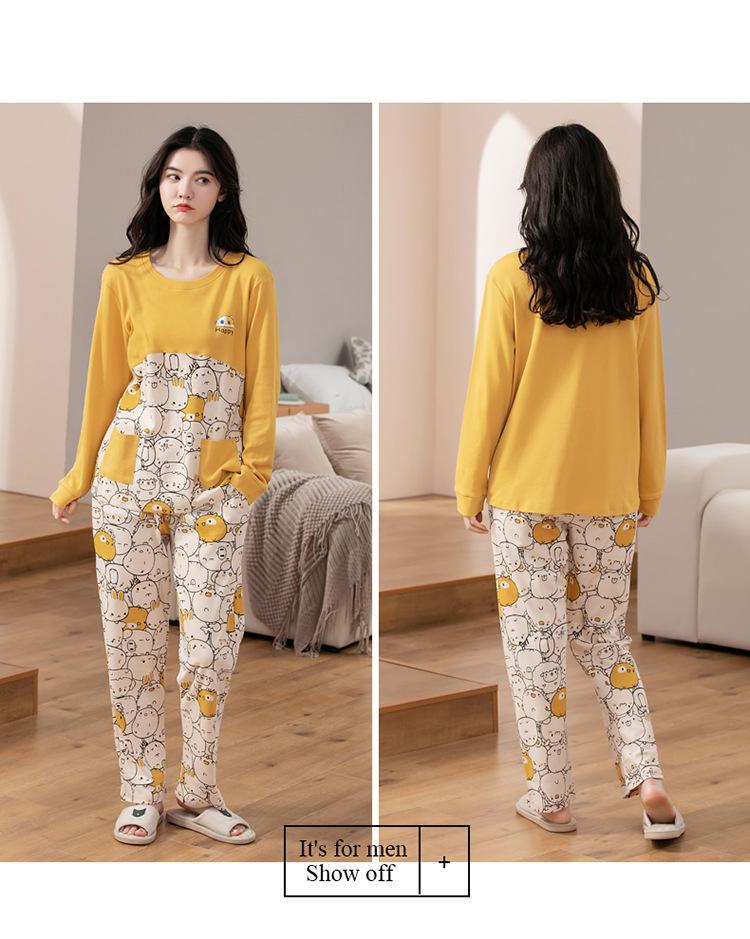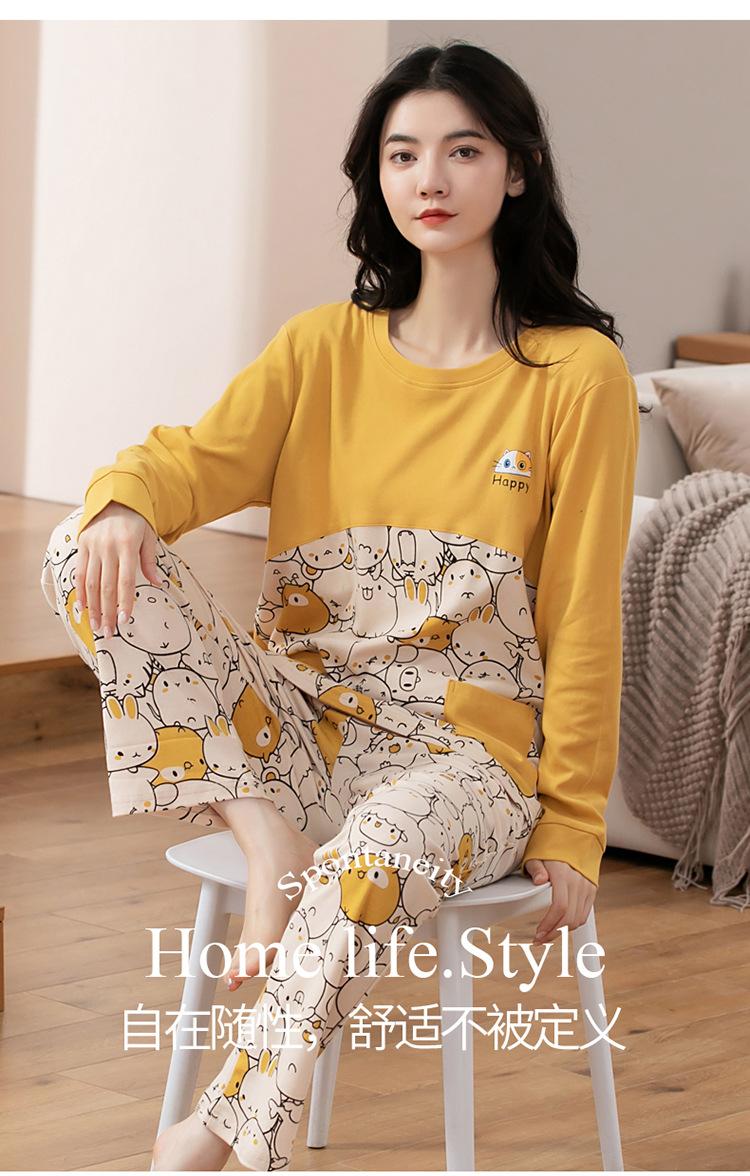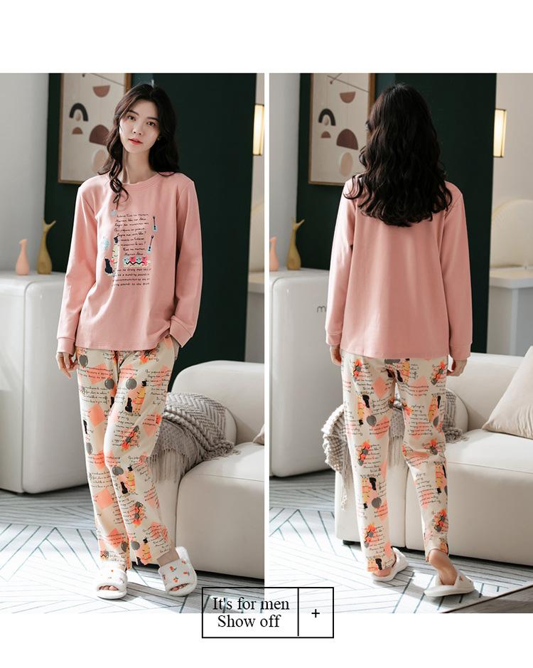 Pijama de manga larga para mujer, primavera y otoño, verano, algodón puro, dulce y fino, para el hogar