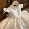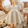 Vestido de Princesa de Satén Elegante Transfronterizo Falda Tutú Vestido de Primer Cumpleaños de Bebé Vestido de Cumpleaños de Niña Estilo Coreano Floral Ropa Infantil Otoño