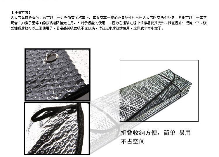 Este producto tiene un muy buen efecto de protección solar.,Puede reducir eficazmente la temperatura dentro del coche.,Previene el envejecimiento prematuro del tablero y otros componentes del automóvil.,Hermosa apariencia, colores brillantes, fuerte rendimiento publicitario,Es un anunciante,El producto de elección para promotores.