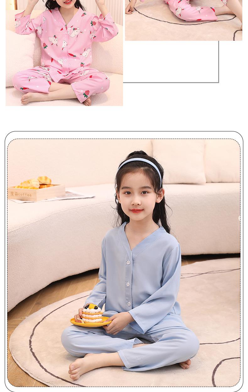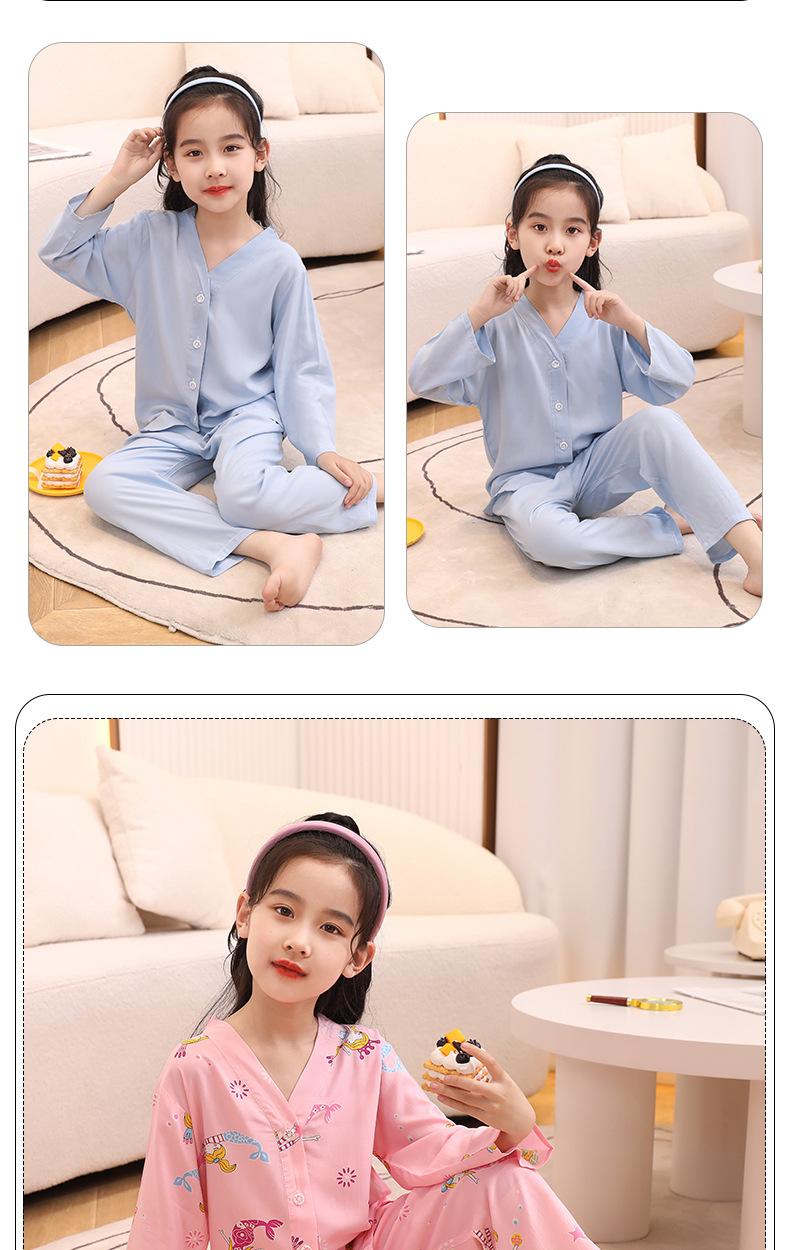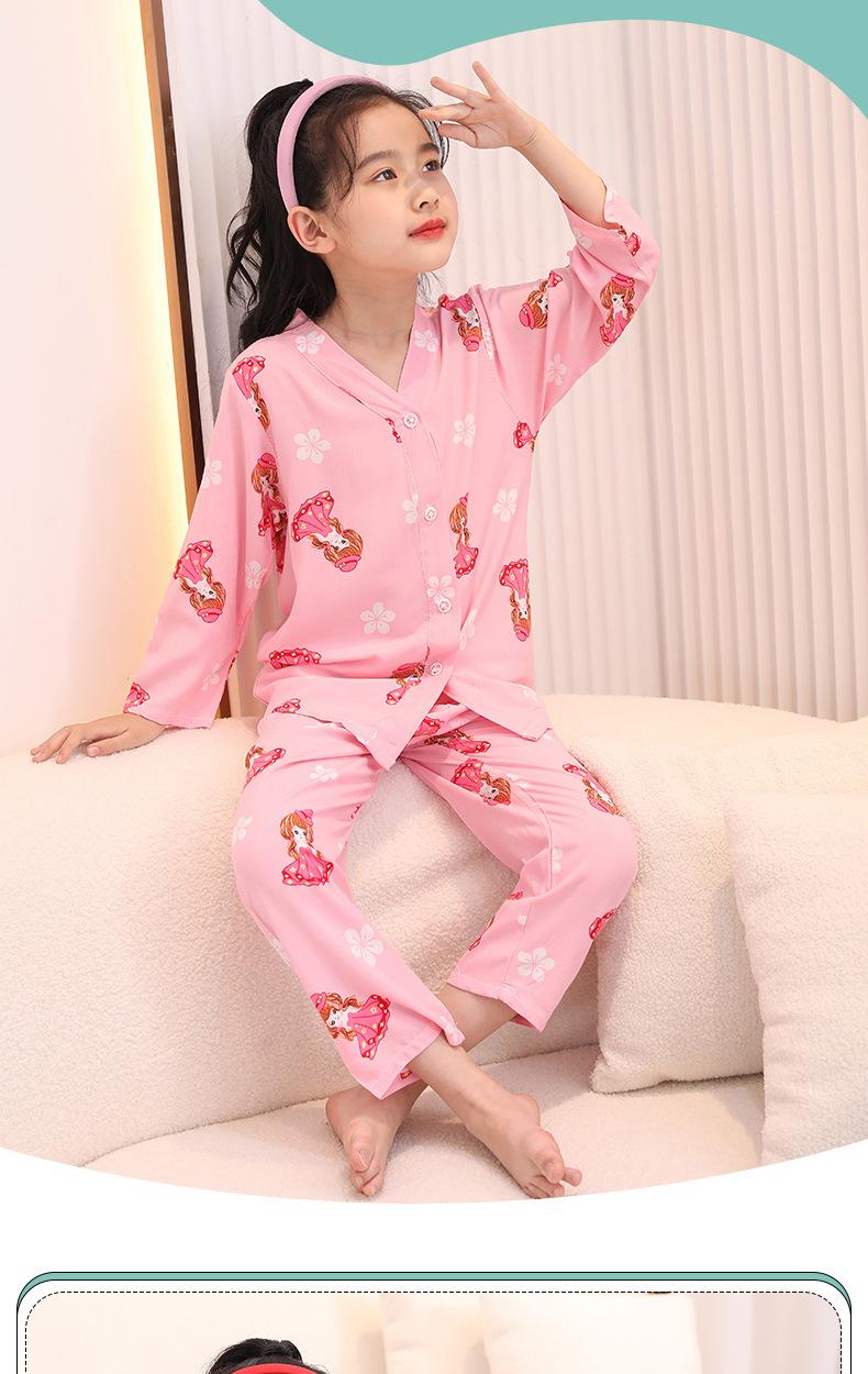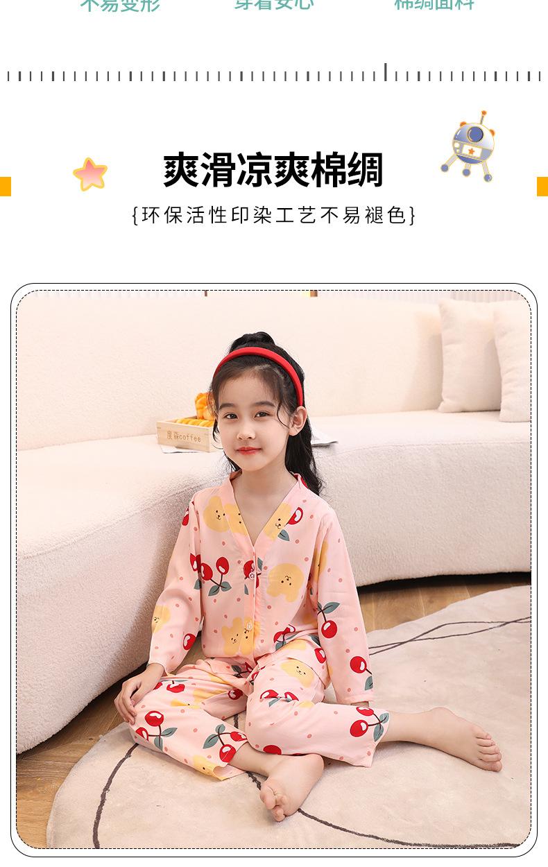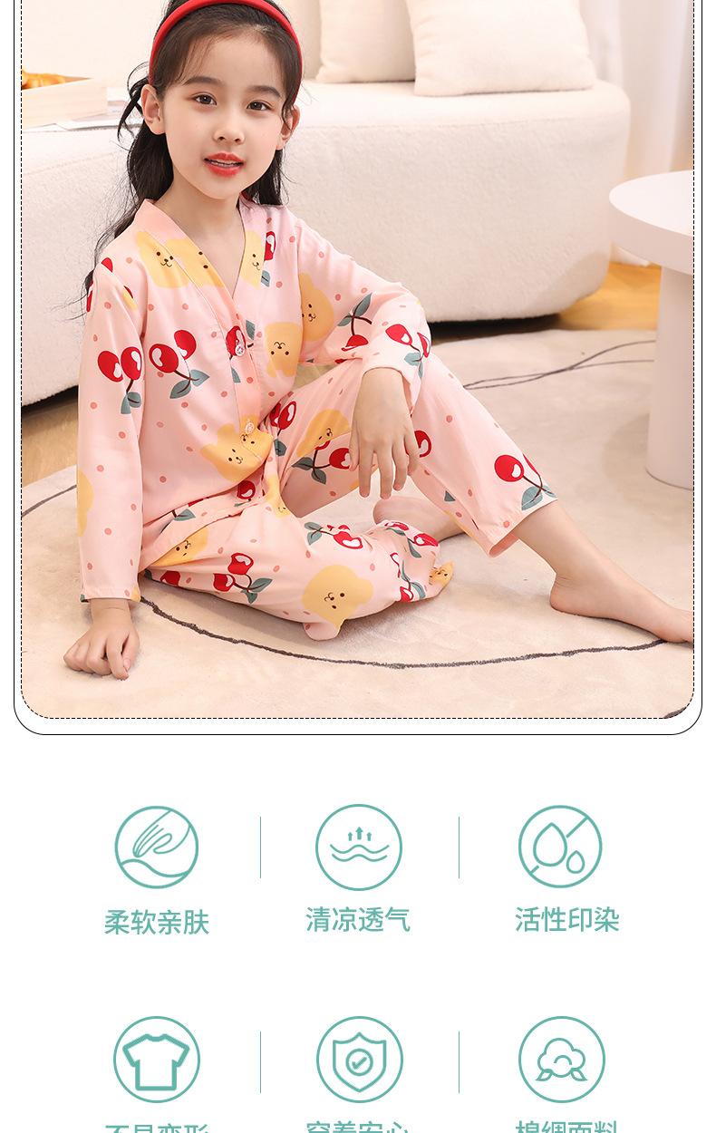 Conjunto de pijama de seda de algodón para niños, traje de aire acondicionado para niñas, ropa de casa de bebé de seda de algodón fina grande para verano
