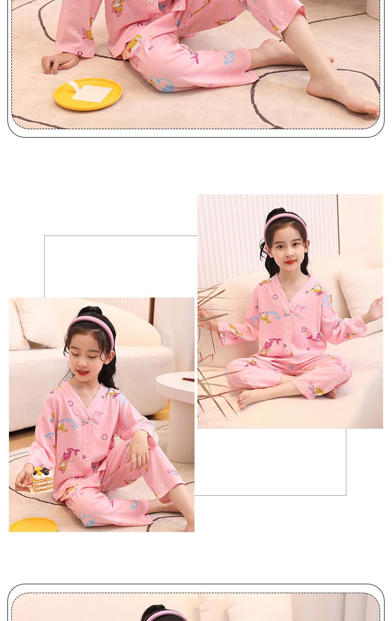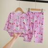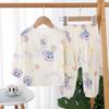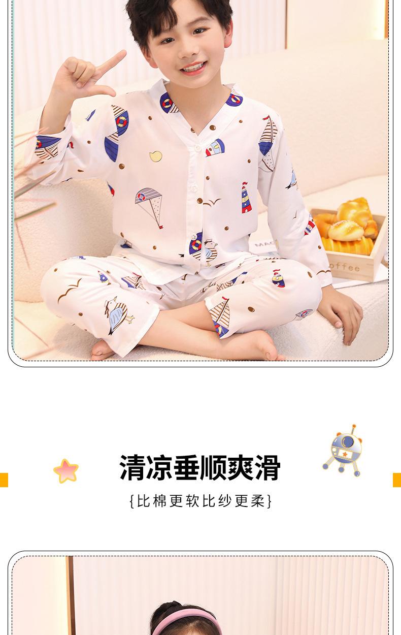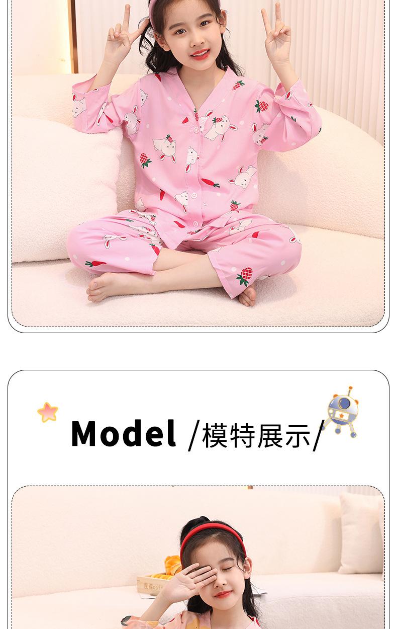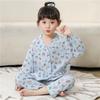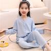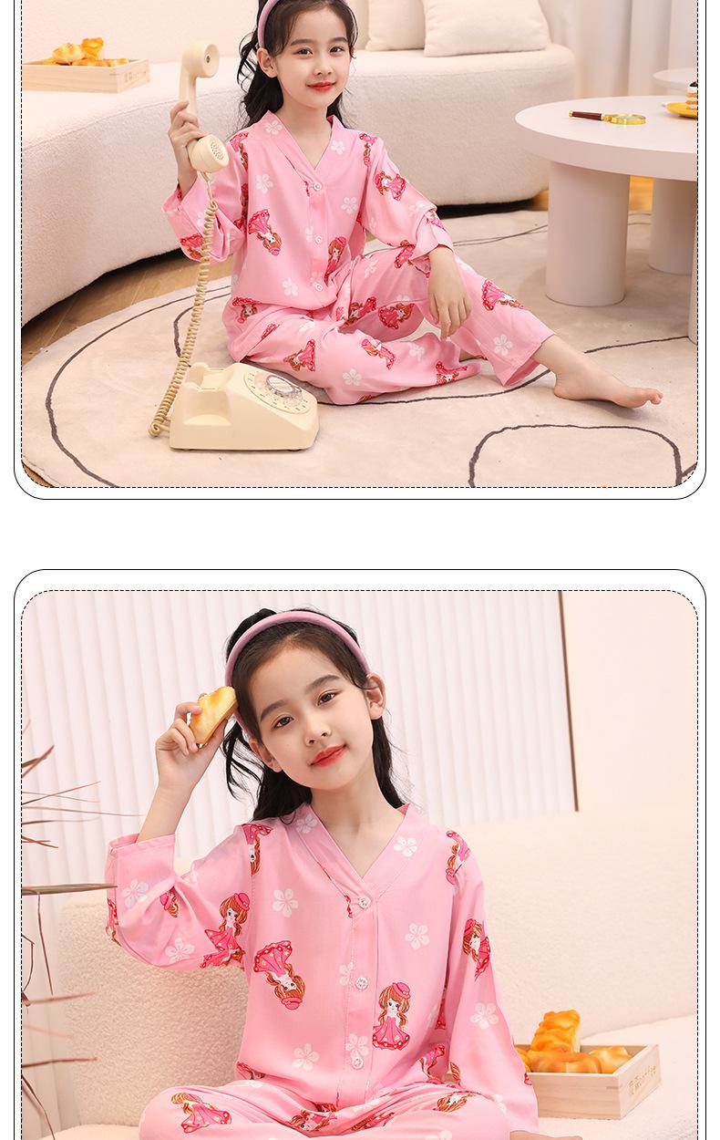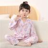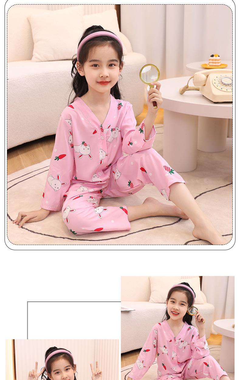Conjunto de pijama de seda de algodón para niños, traje de aire acondicionado para niñas, ropa de casa de bebé de seda de algodón fina grande para verano