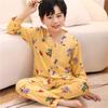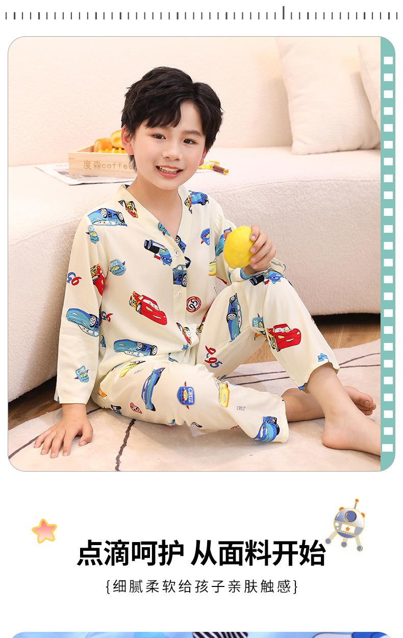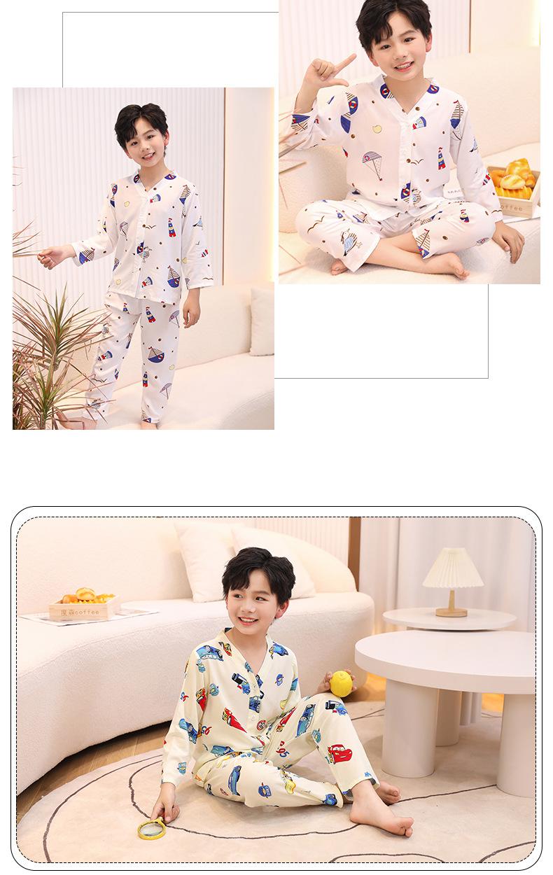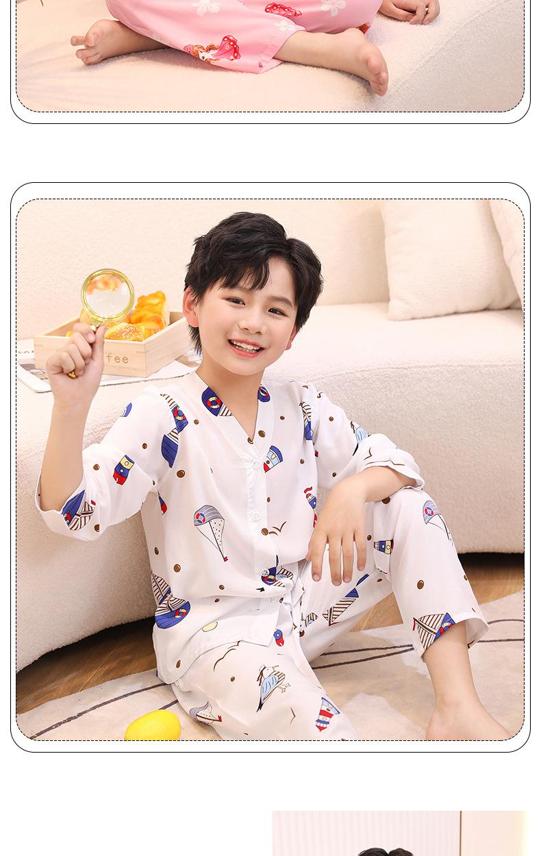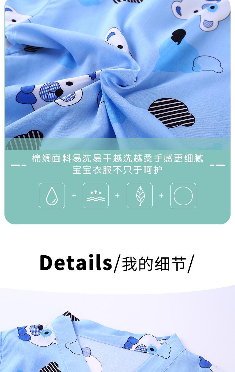 Conjunto de pijama de seda de algodón para niños, traje de aire acondicionado para niñas, ropa de casa de bebé de seda de algodón fina grande para verano