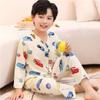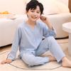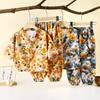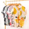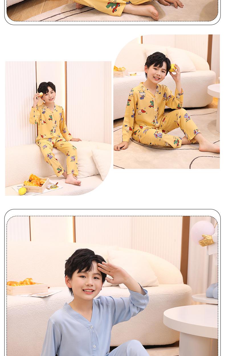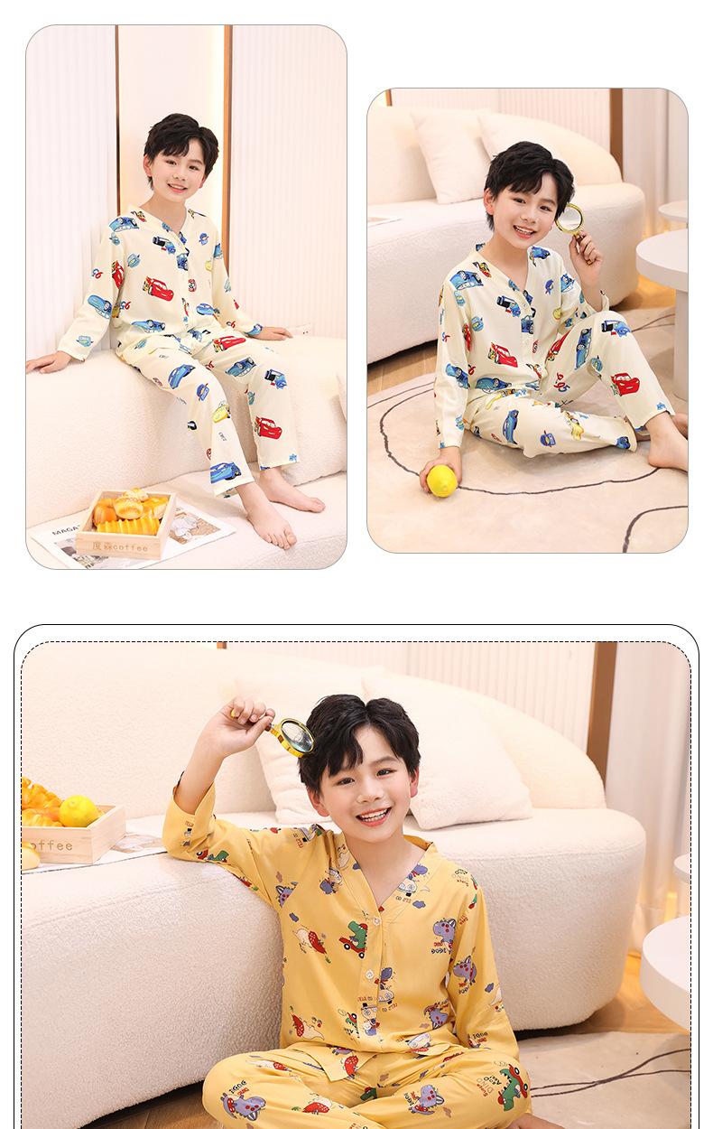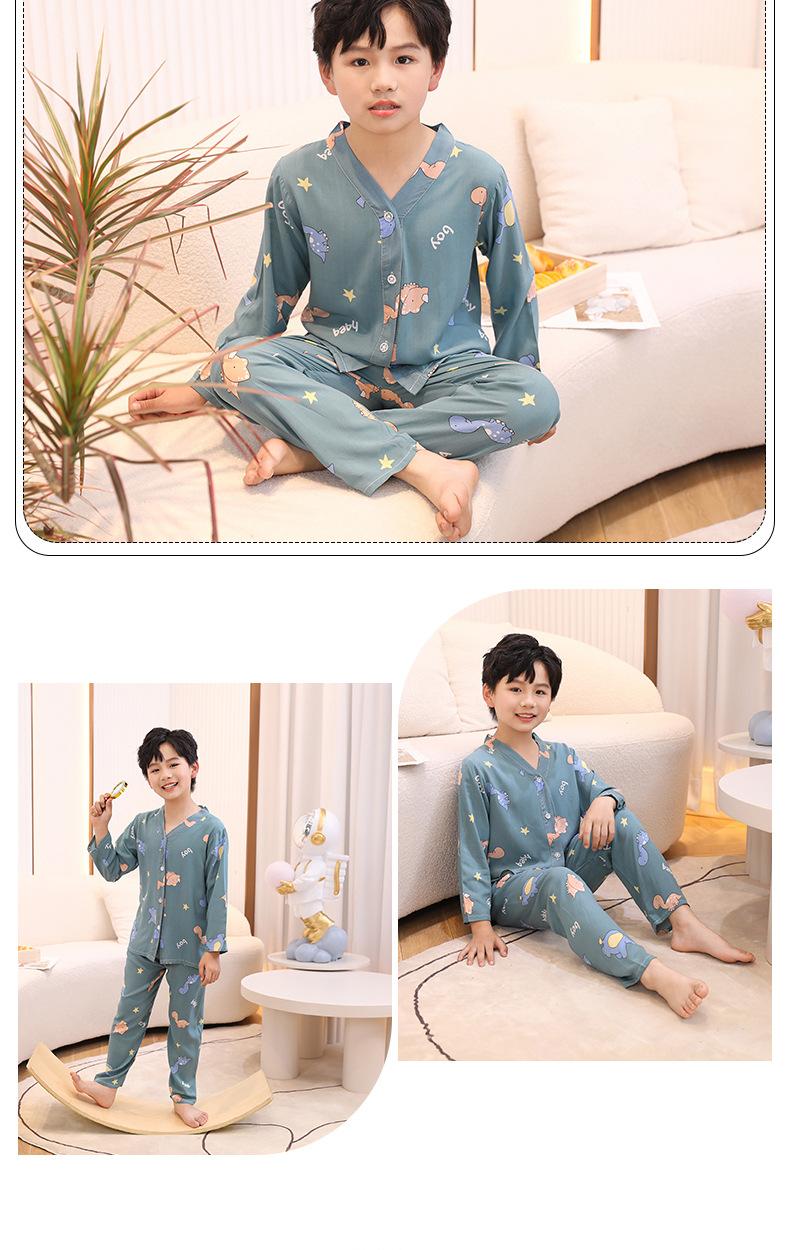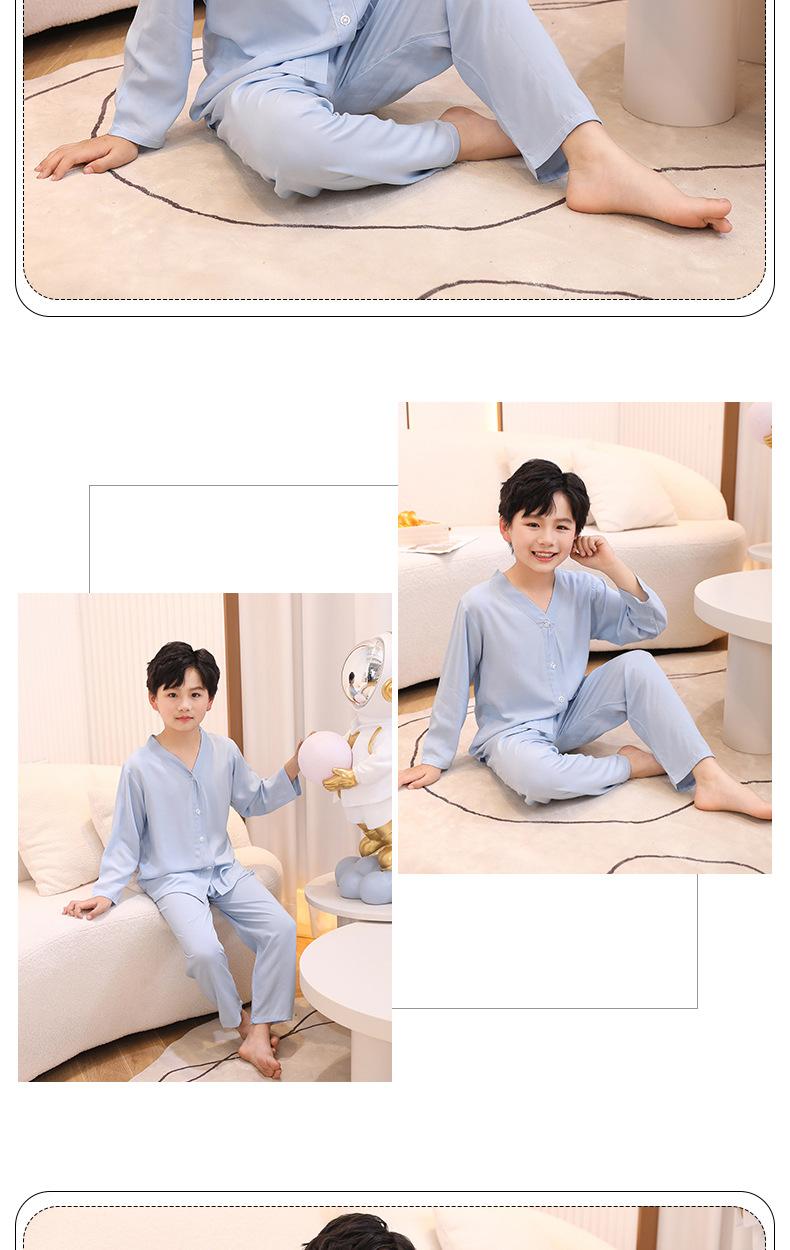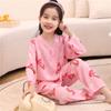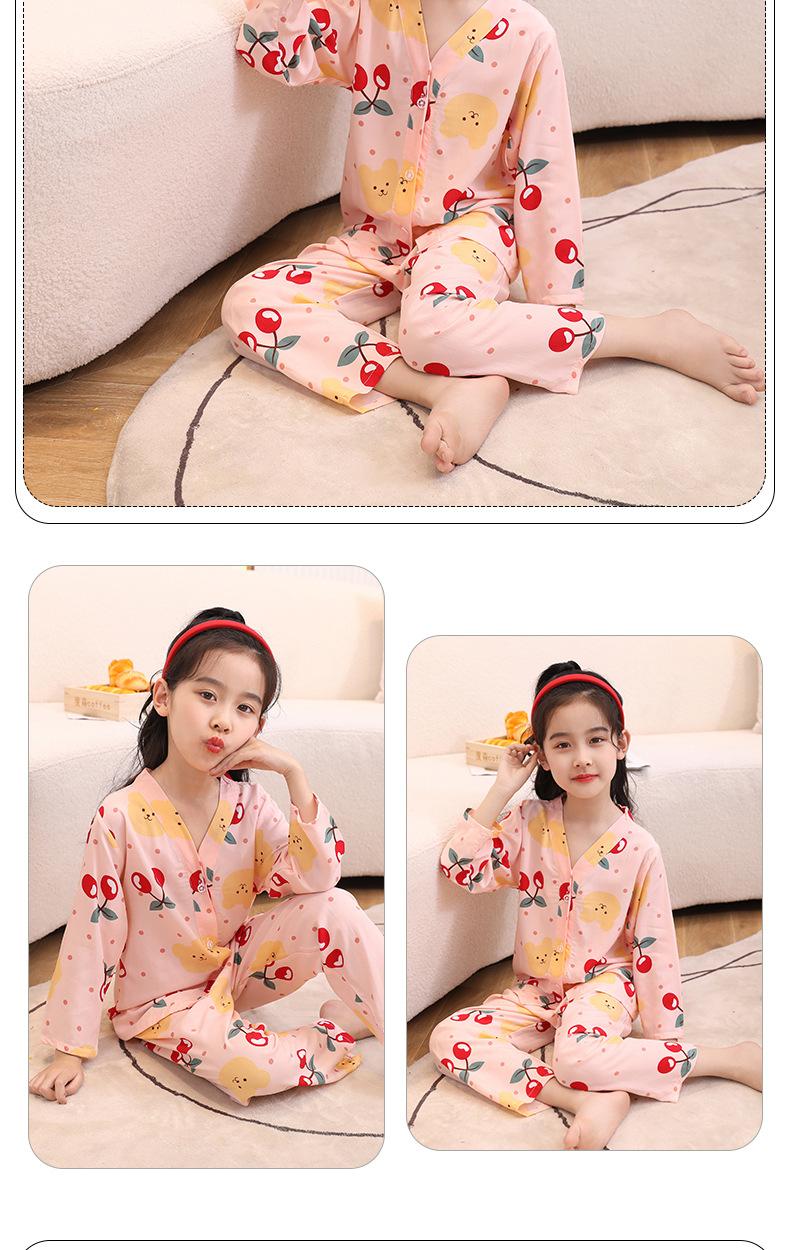 Conjunto de pijama de seda de algodón para niños, traje de aire acondicionado para niñas, ropa de casa de bebé de seda de algodón fina grande para verano