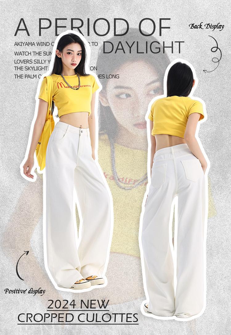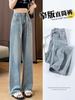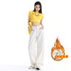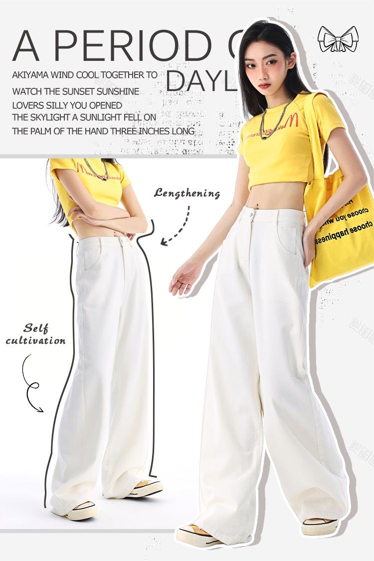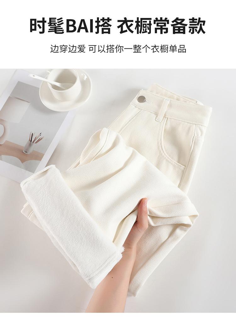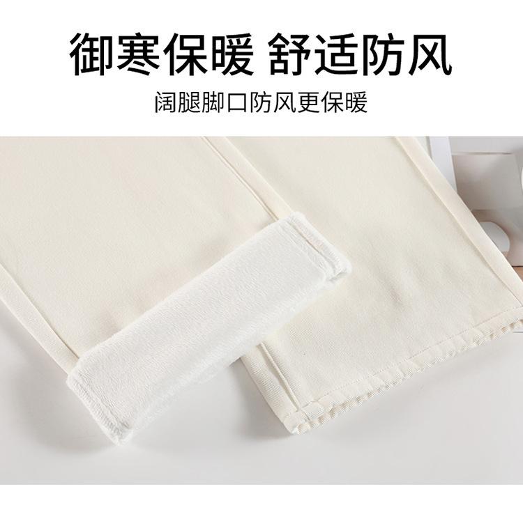 Pantalones vaqueros blancos de cintura alta y pierna ancha para mujer, estilo casual americano, con forro polar, gruesos, sueltos y rectos, para invierno de 2024.