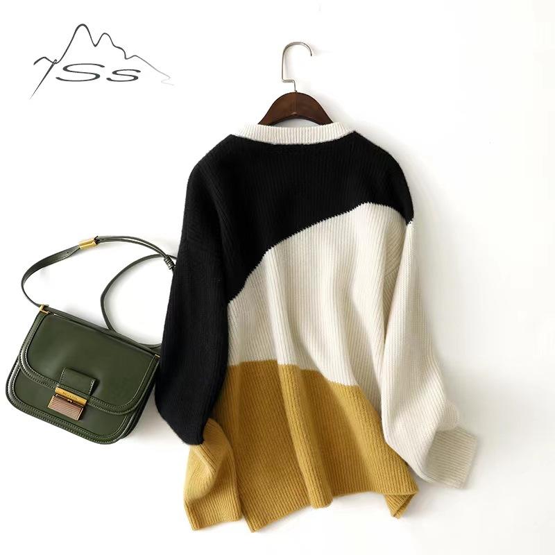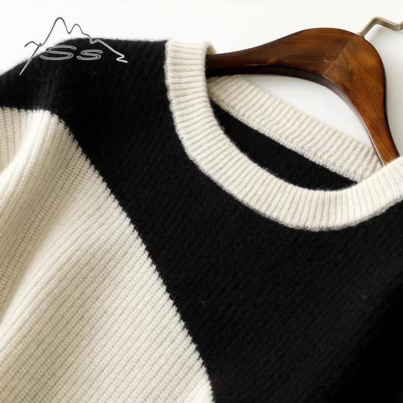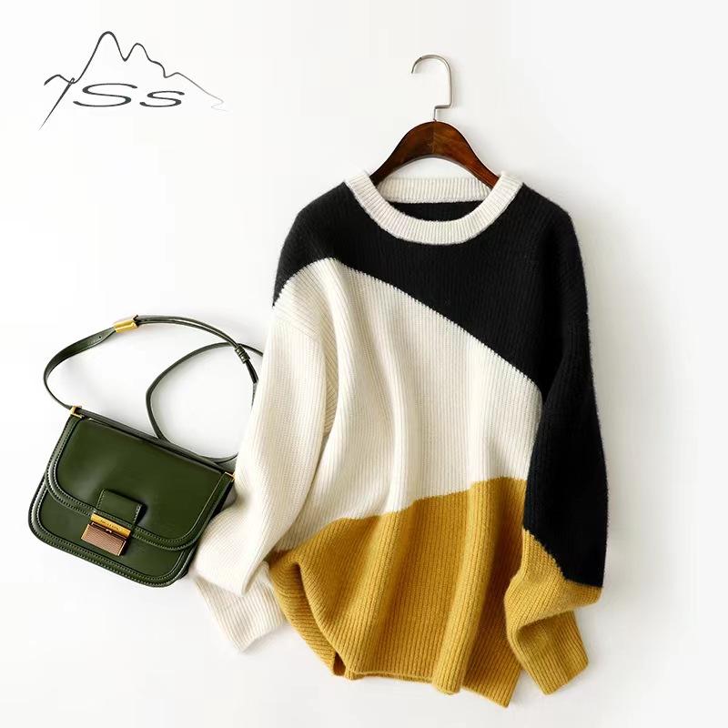 Hermoso jersey de cuello redondo de punto a juego para mujer, jersey de punto grueso de nuevo diseño para otoño e invierno europeo