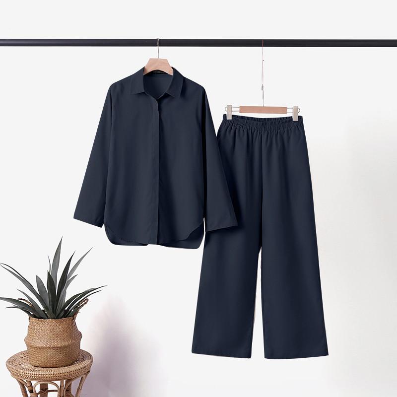 Conjunto de dos piezas para mujer, estilo europeo y americano, con solapa, camisa de manga larga, pantalones casuales de color sólido, traje de pierna ancha, primavera y otoño, 2023