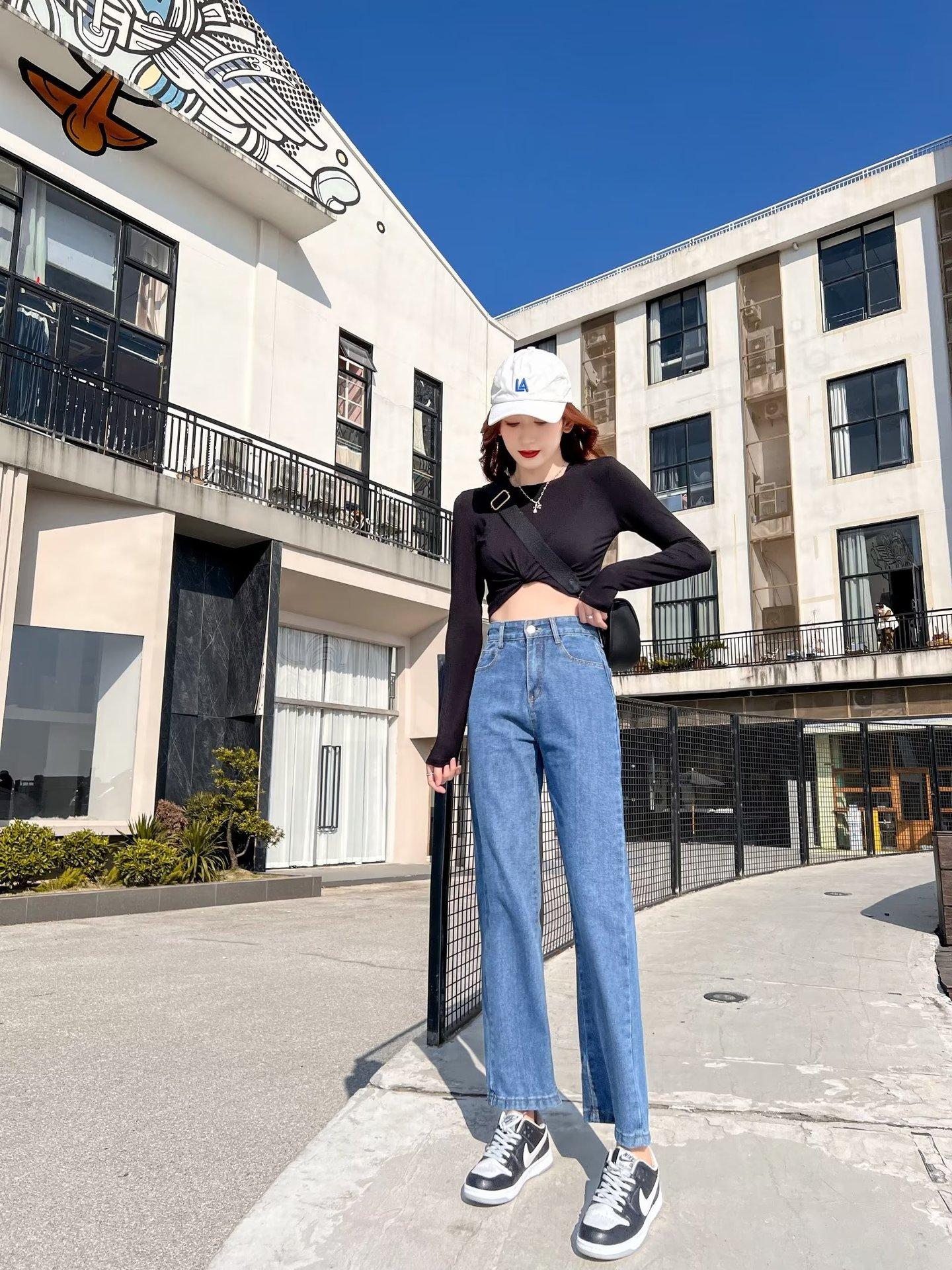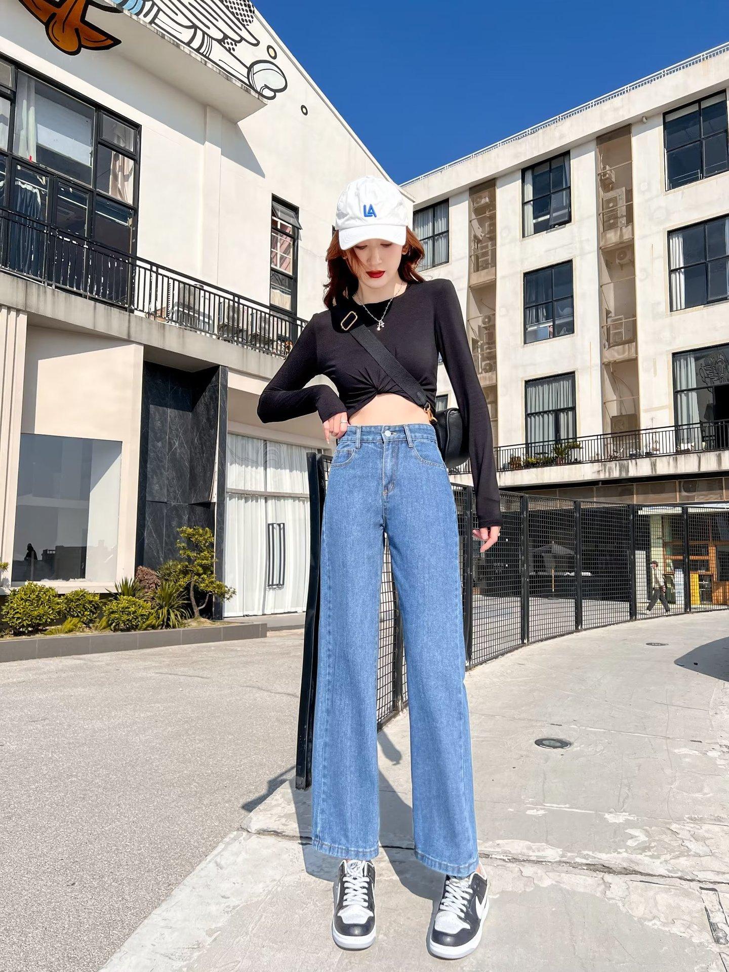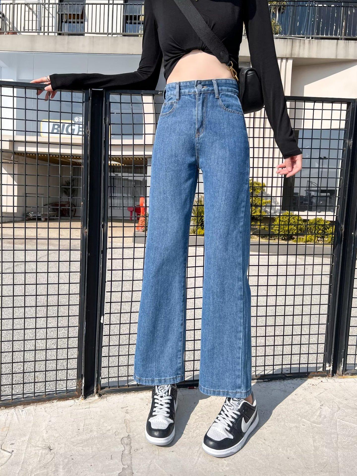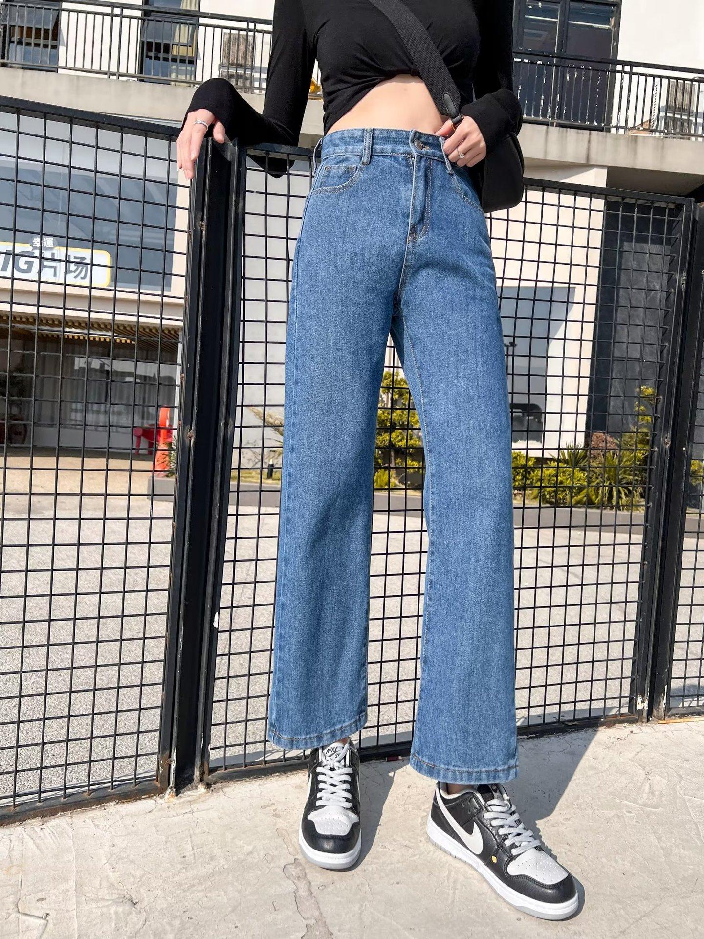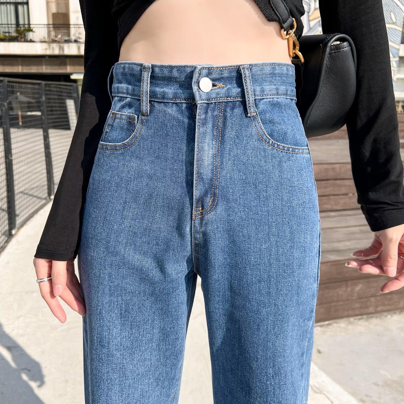 Jeans de pierna ancha para mujer primavera y otoño 2023 nuevo estilo otoño cintura alta slim holgados talla pequeña pantalones rectos de nueve puntos