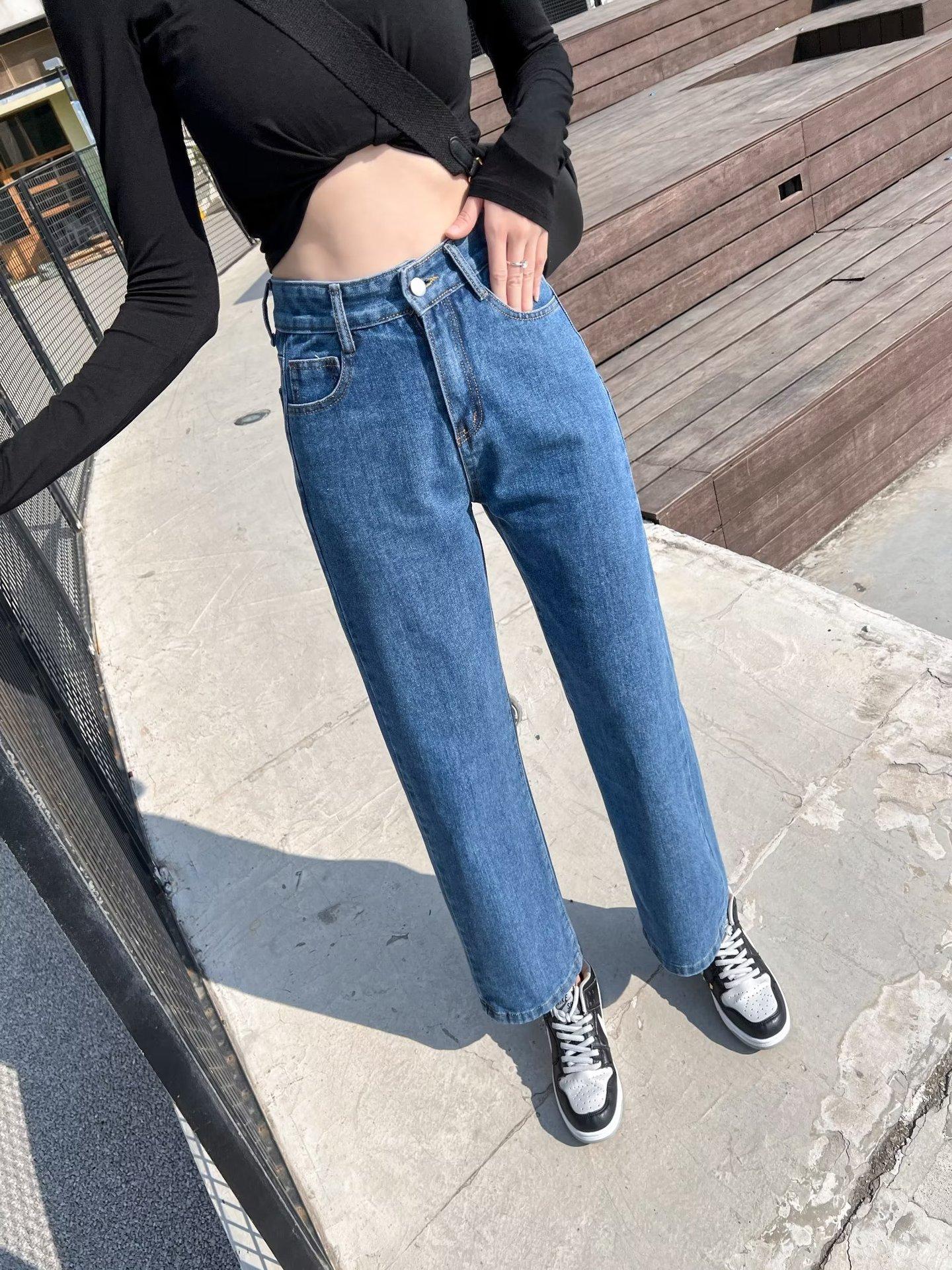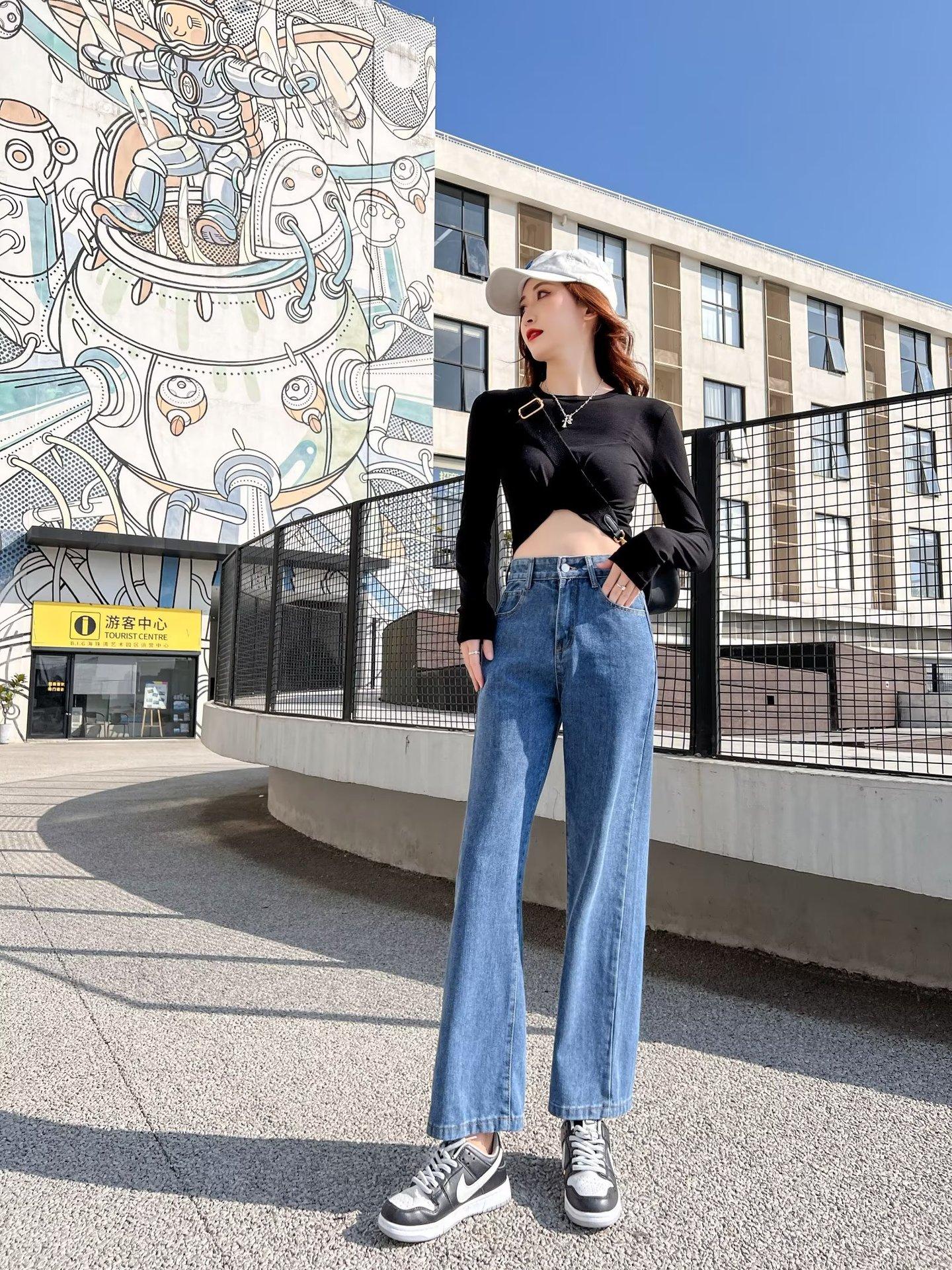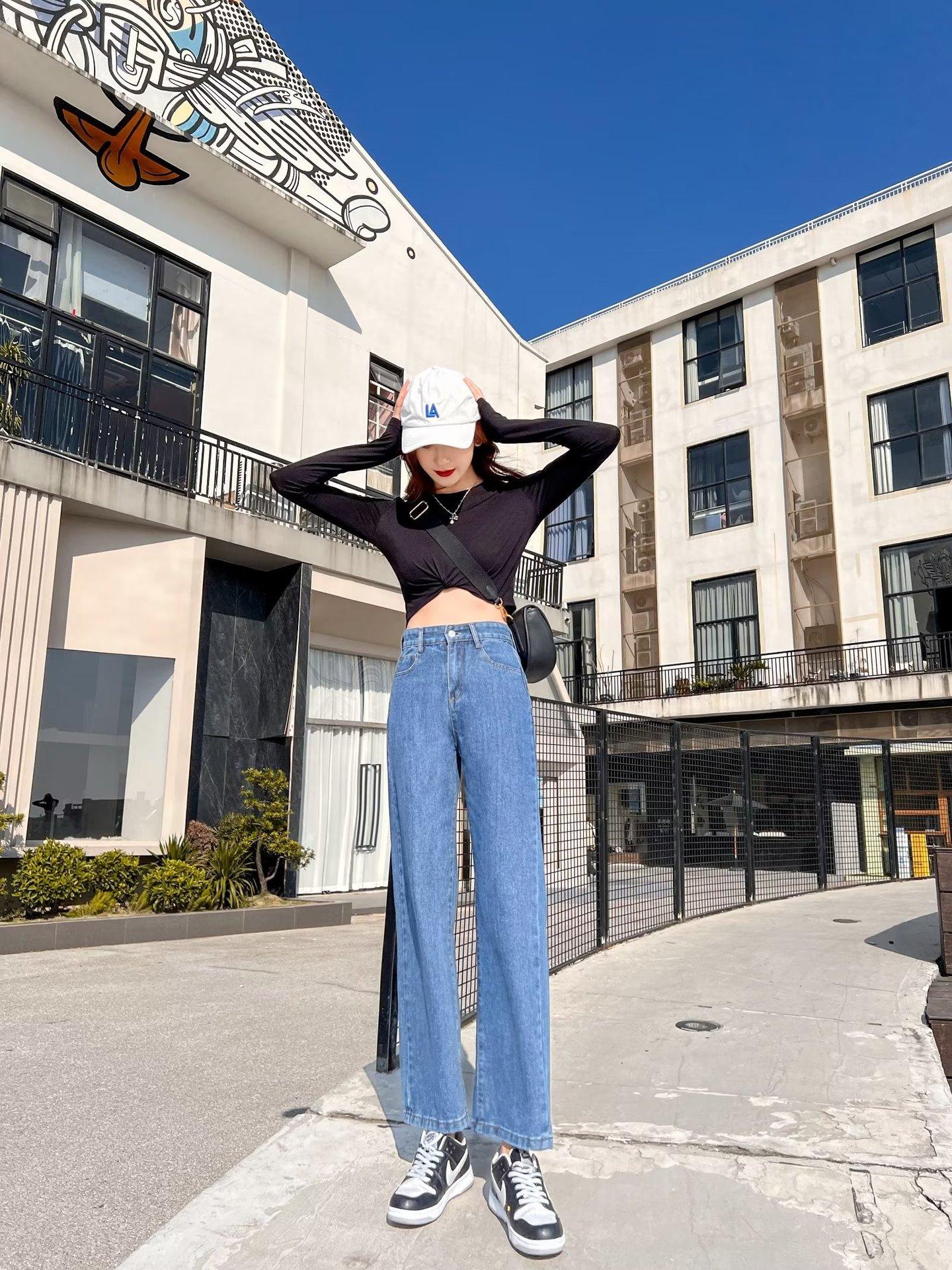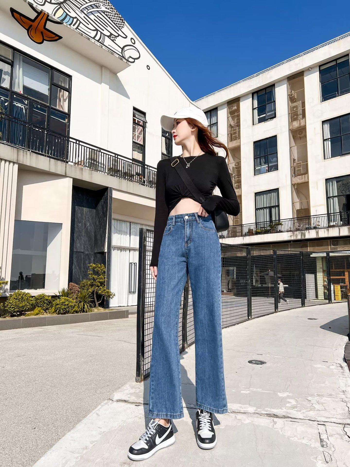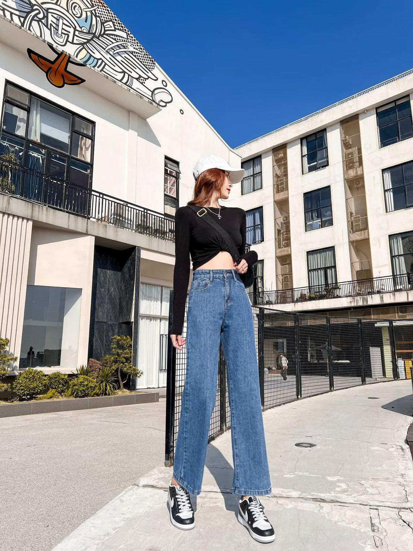 Jeans de pierna ancha para mujer primavera y otoño 2023 nuevo estilo otoño cintura alta slim holgados talla pequeña pantalones rectos de nueve puntos