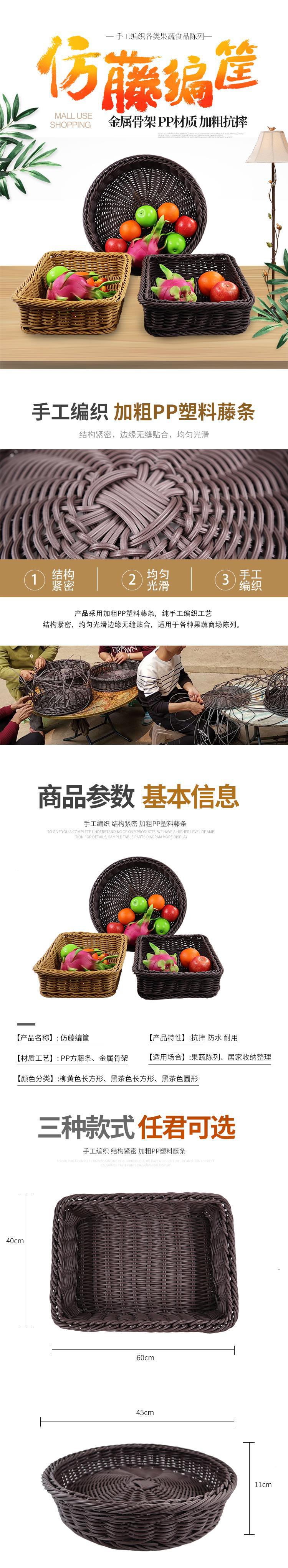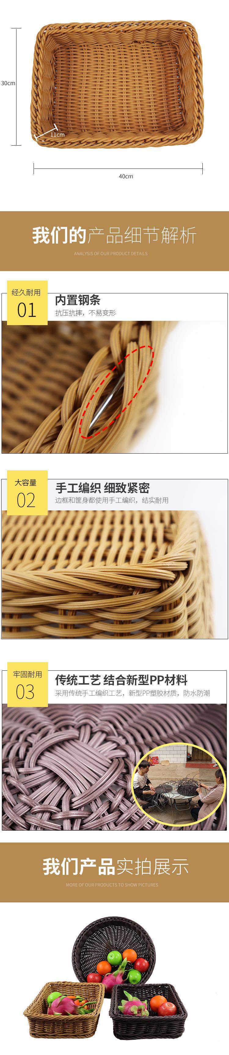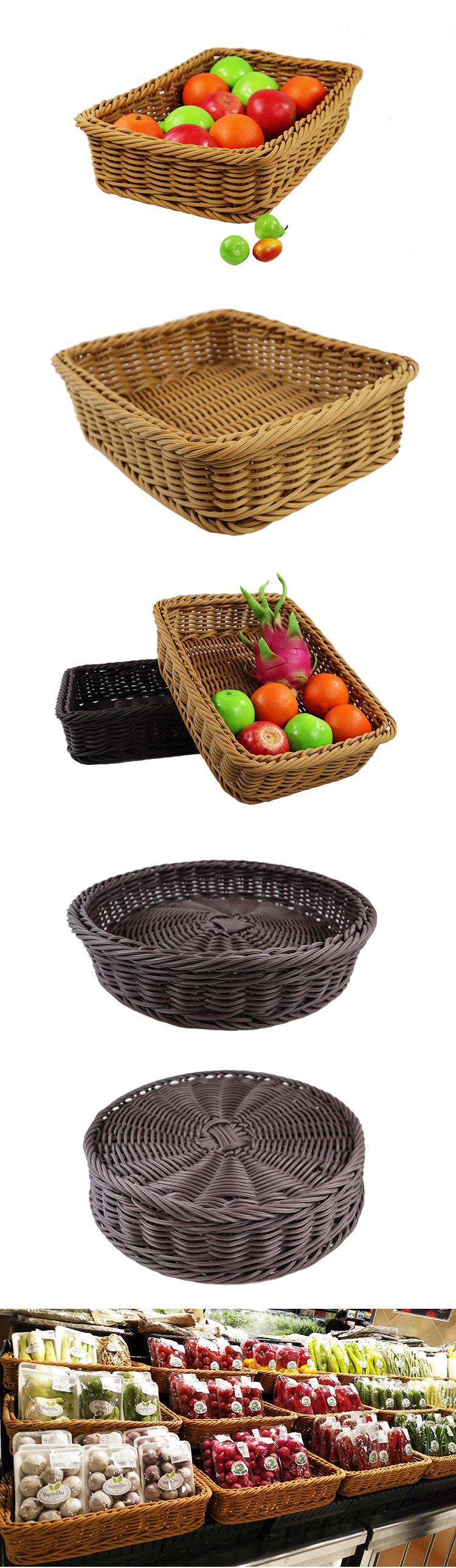 Cesta de frutas tejida de ratán sintético, cesta de pan, cesta de exhibición de verduras de cocina, bandeja de plástico, cesta gruesa de exhibición de refrigerios