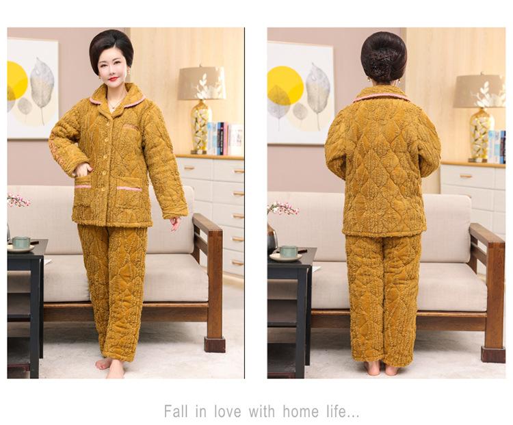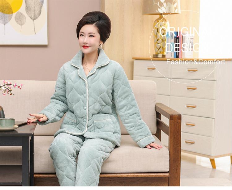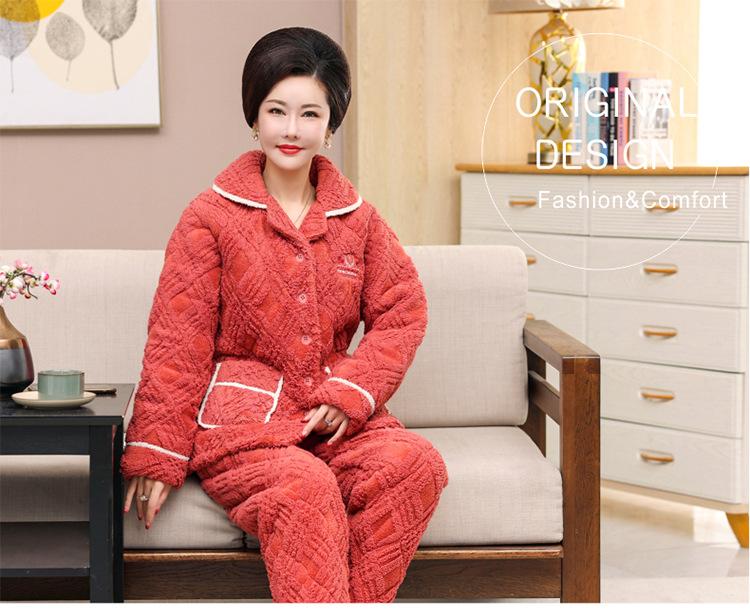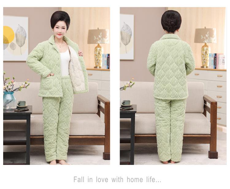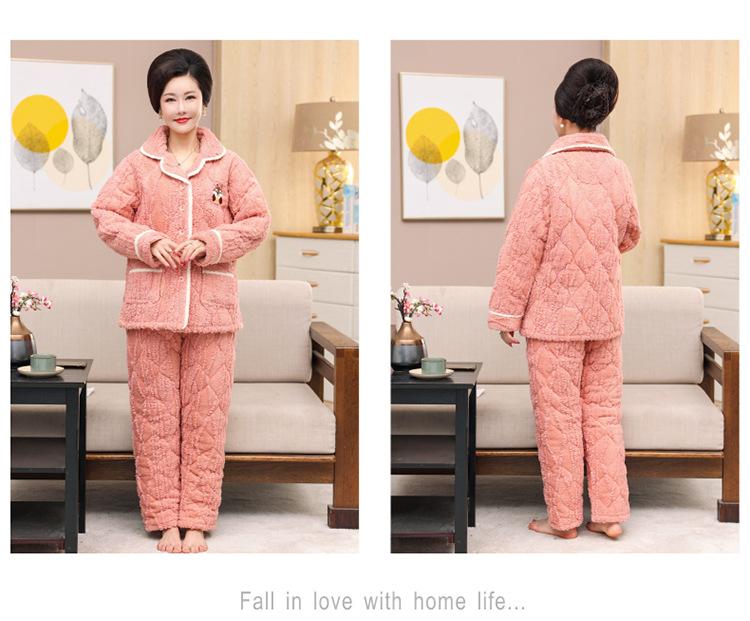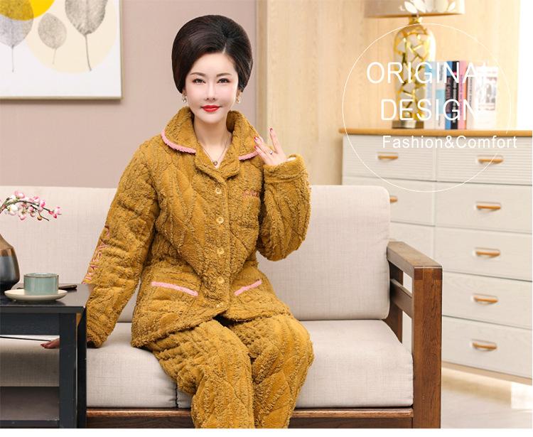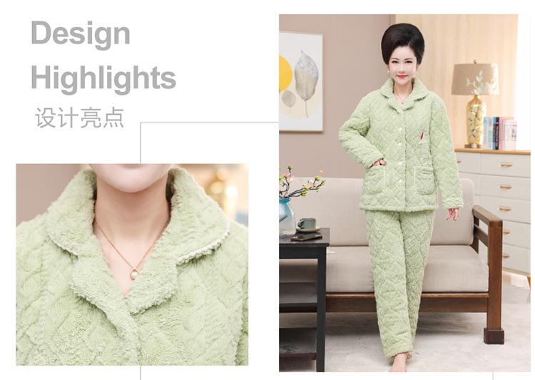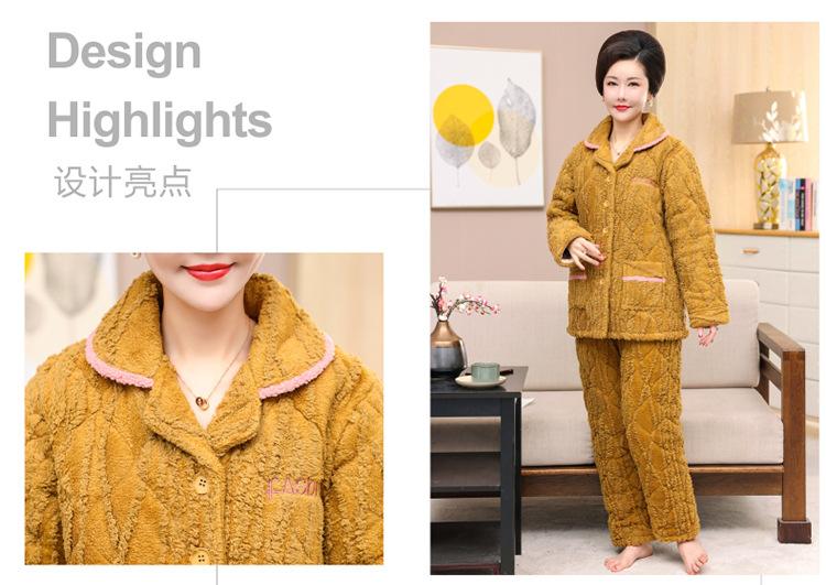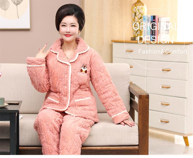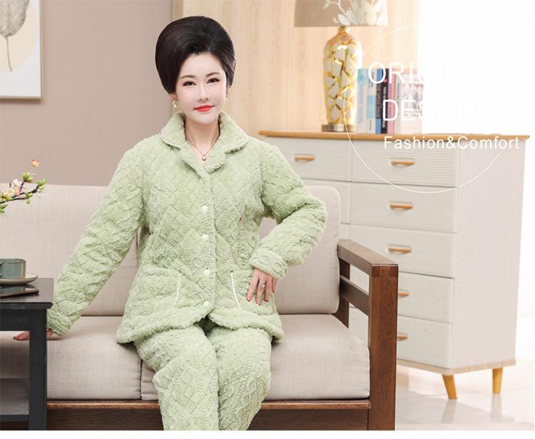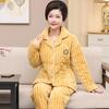 Pijama de lana coral de otoño e invierno para madres de mediana edad, cárdigan de solapa de franela de talla grande para ropa de hogar de mediana edad y mayores.