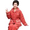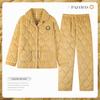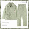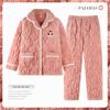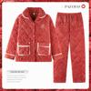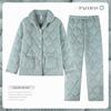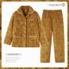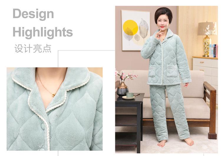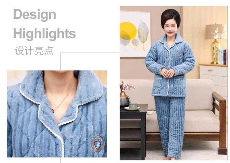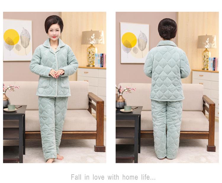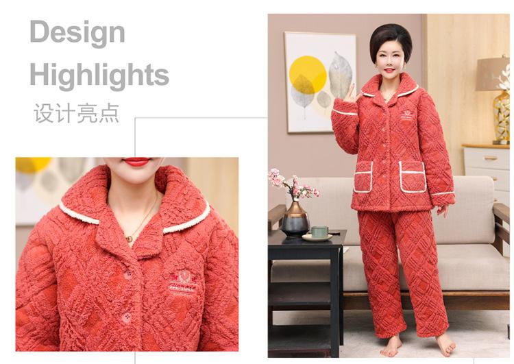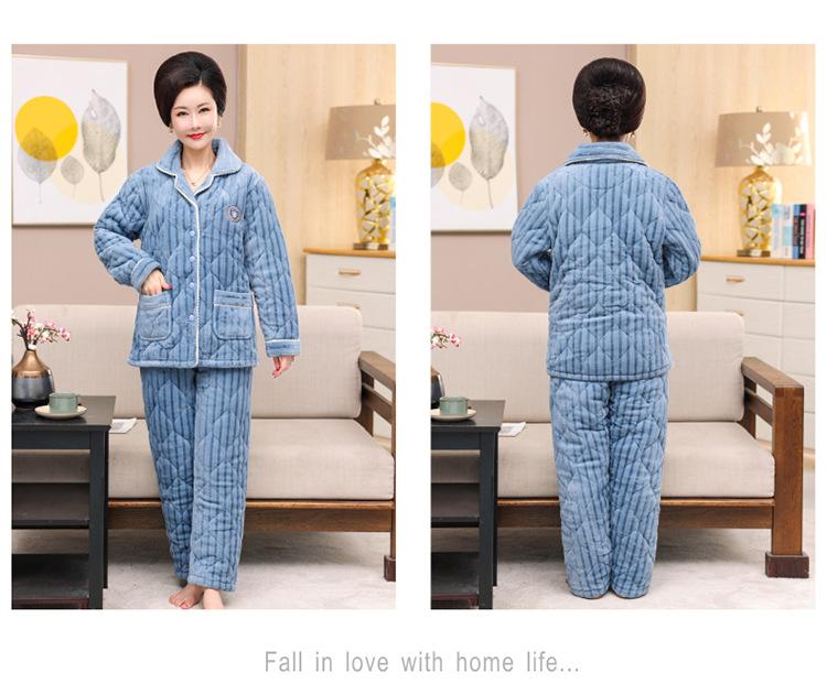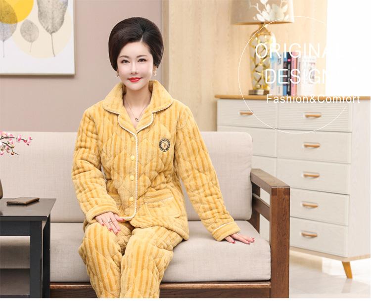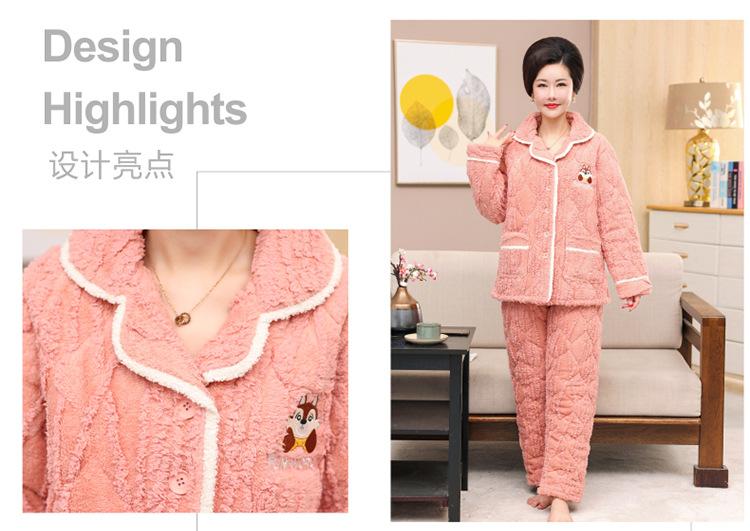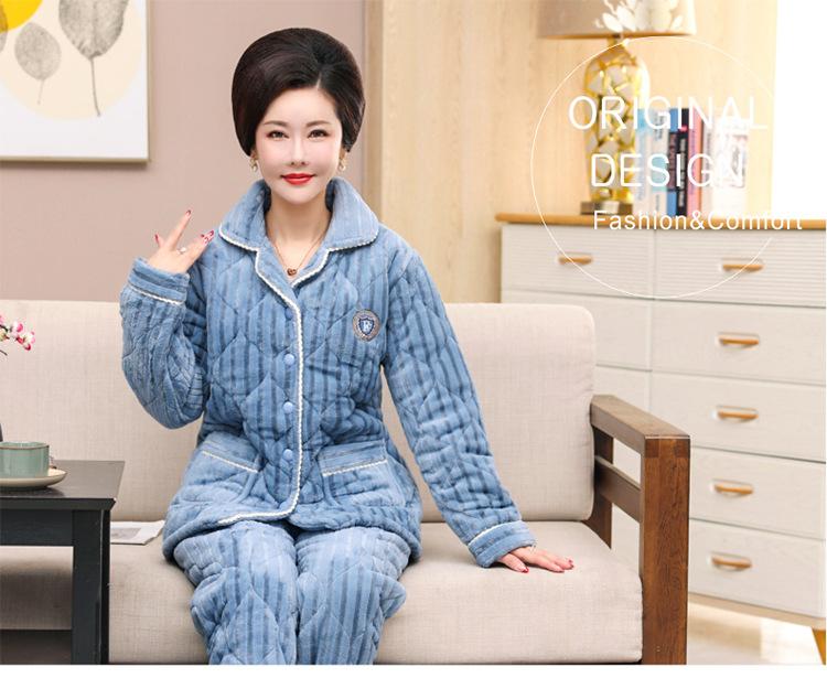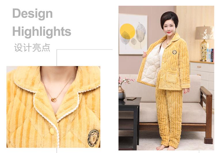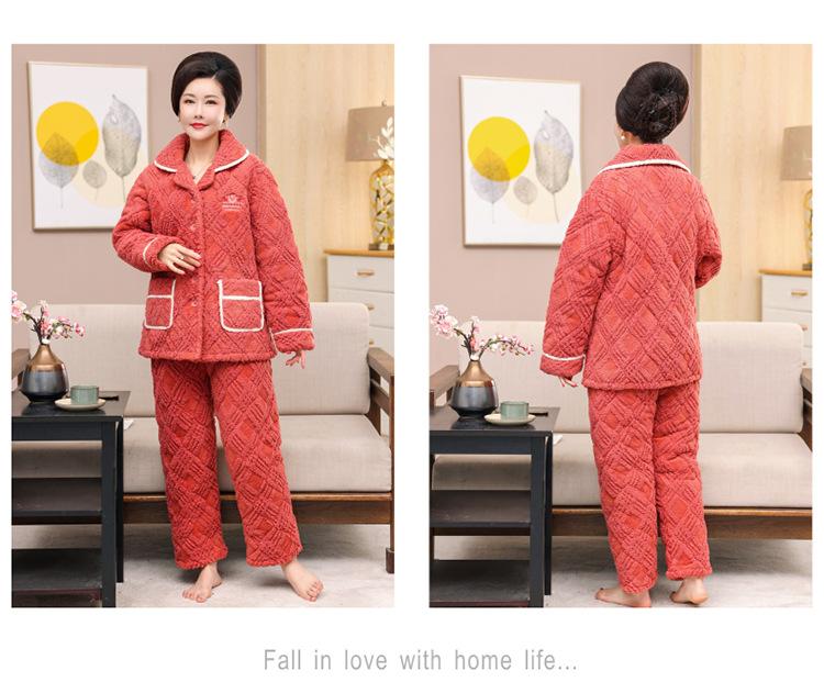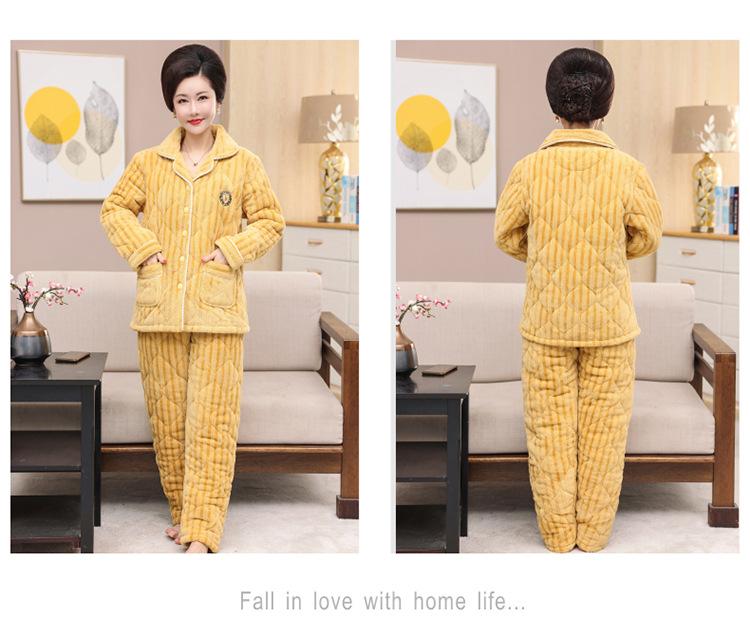 Pijama de lana coral de otoño e invierno para madres de mediana edad, cárdigan de solapa de franela de talla grande para ropa de hogar de mediana edad y mayores.