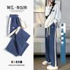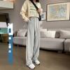 Pantalones deportivos grises de pierna ancha para mujer 2024 Primavera y Otoño Nueva Moda Drapeados Rectos Hasta el Suelo Pantalones Casuales para Niñas