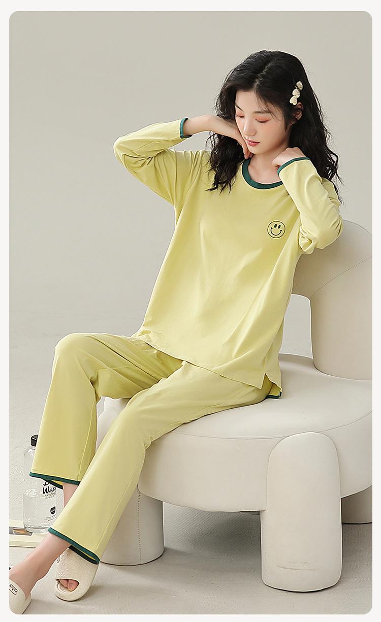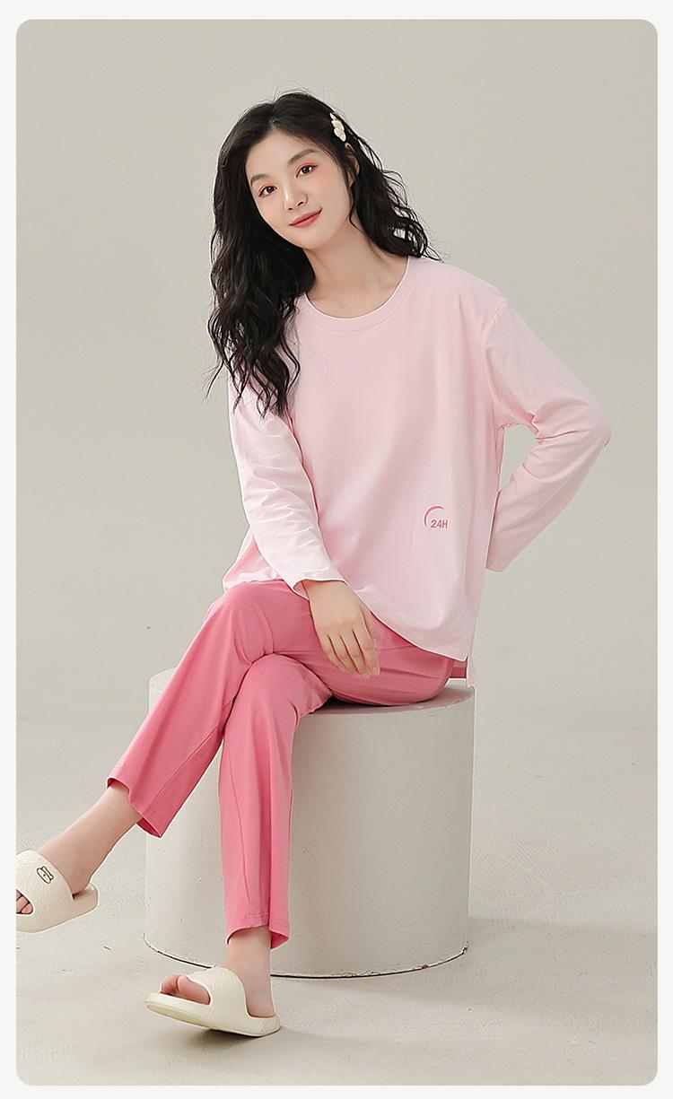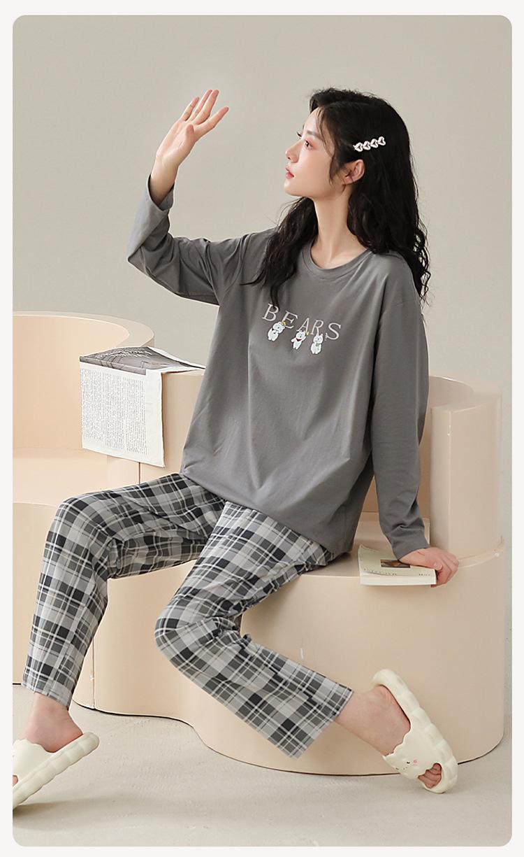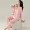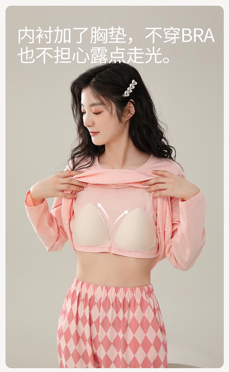 Pijamas de mujer de primavera y otoño de algodón puro de manga larga con almohadilla para el pecho traje de otoño ropa de casa de mujer primavera y verano fino