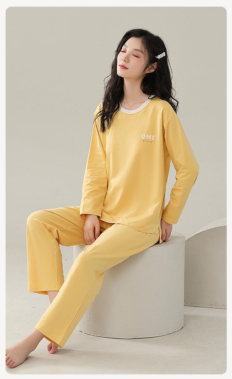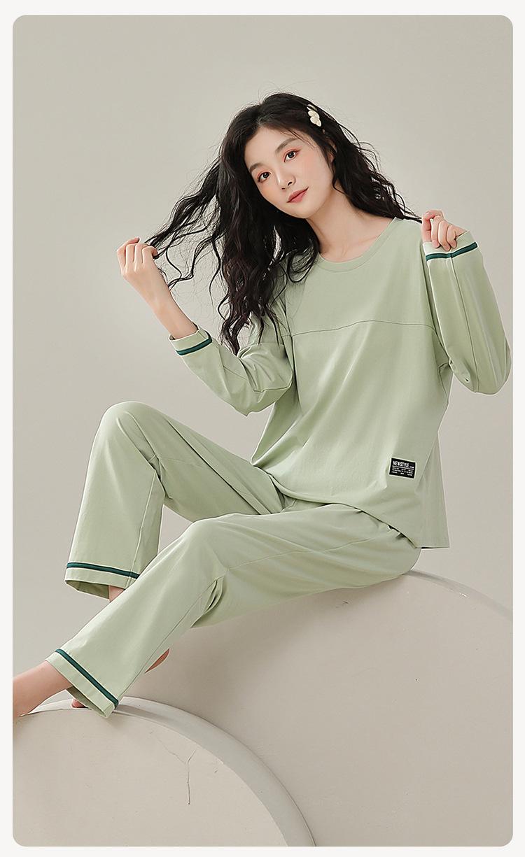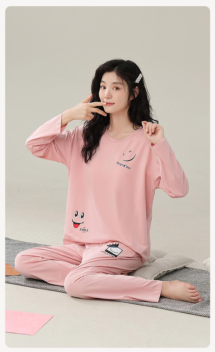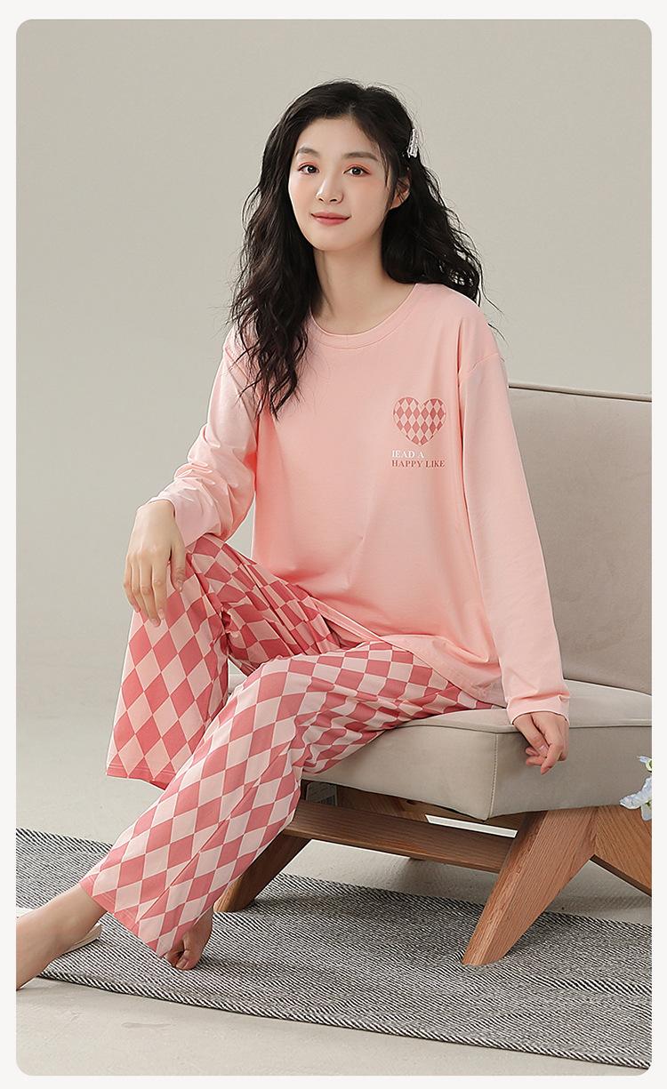 Pijamas de mujer de primavera y otoño de algodón puro de manga larga con almohadilla para el pecho traje de otoño ropa de casa de mujer primavera y verano fino
