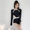 Traje de baño para mujer, adelgazante, que cubre el vientre, de alta gama, conservador para chica gorda, 2022 nuevo, de una pieza con falda, traje de baño de verano de manga larga