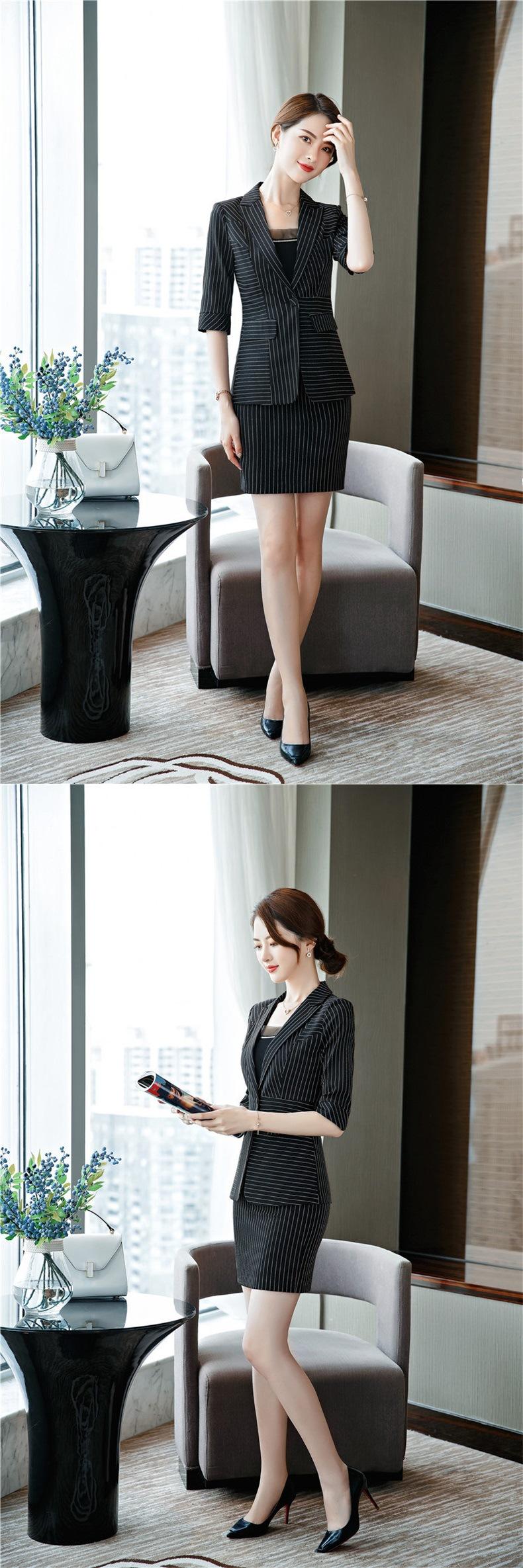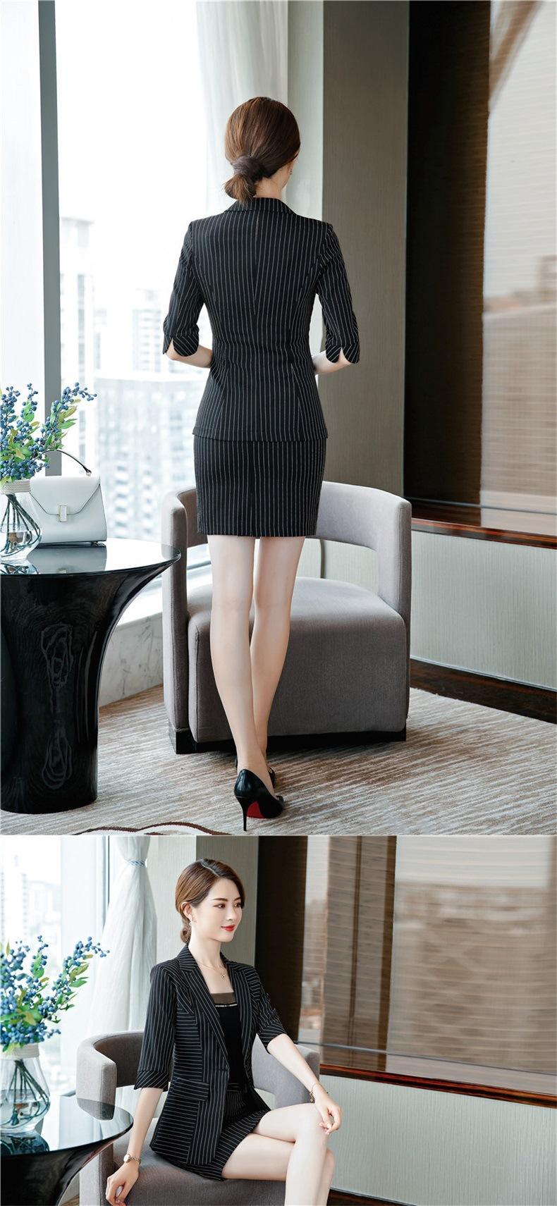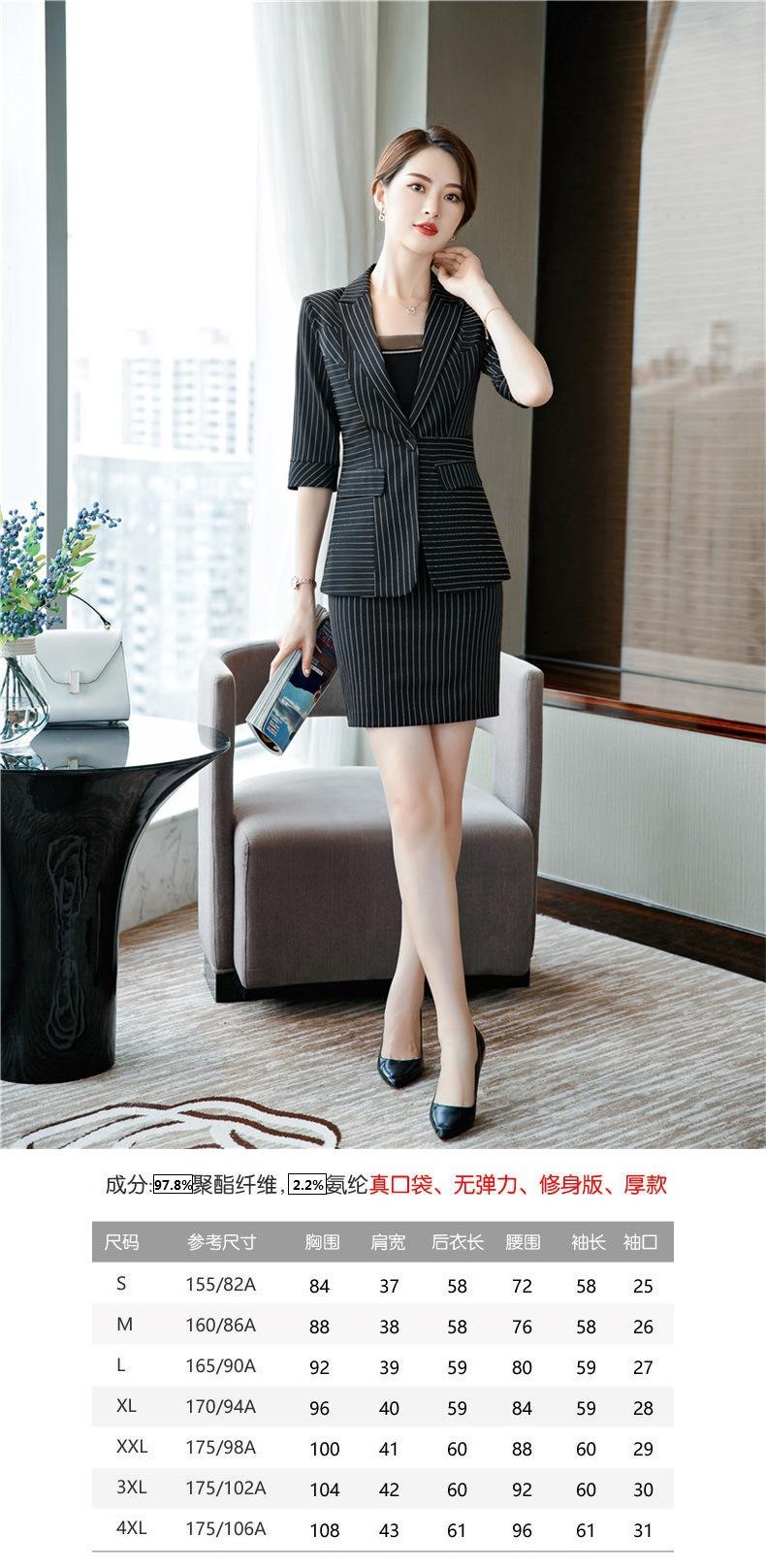 Traje de negocios para mujer, primavera, nueva moda, elegante, pequeño, vestido, informal, a rayas, falda y manga