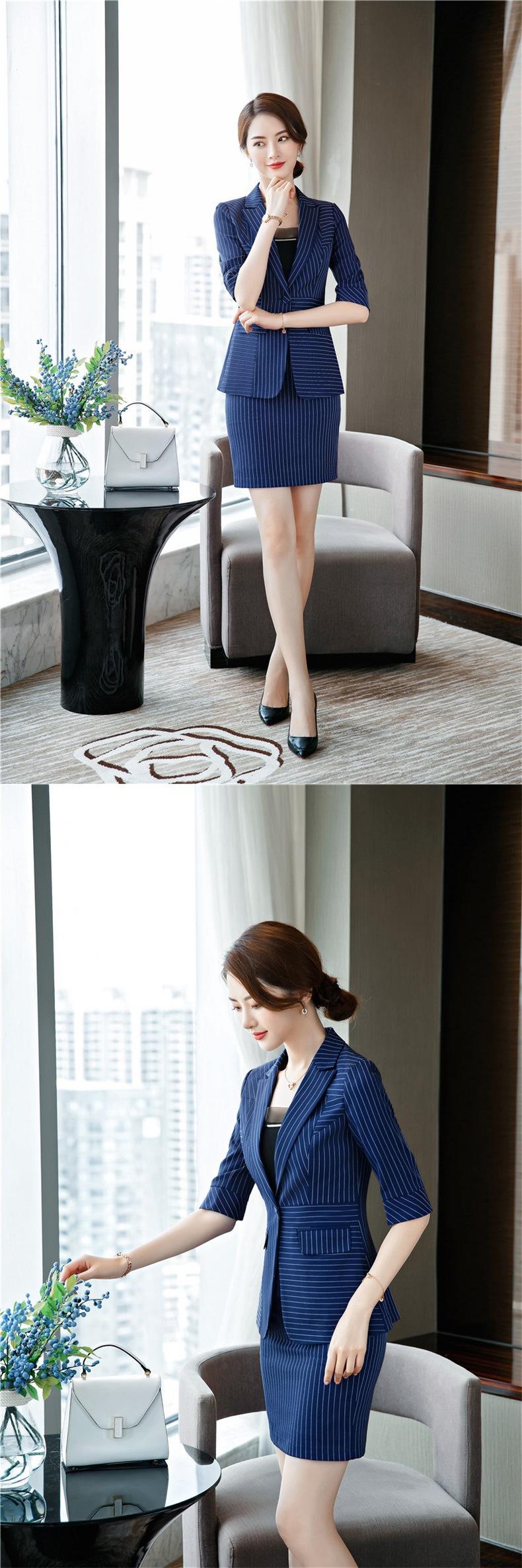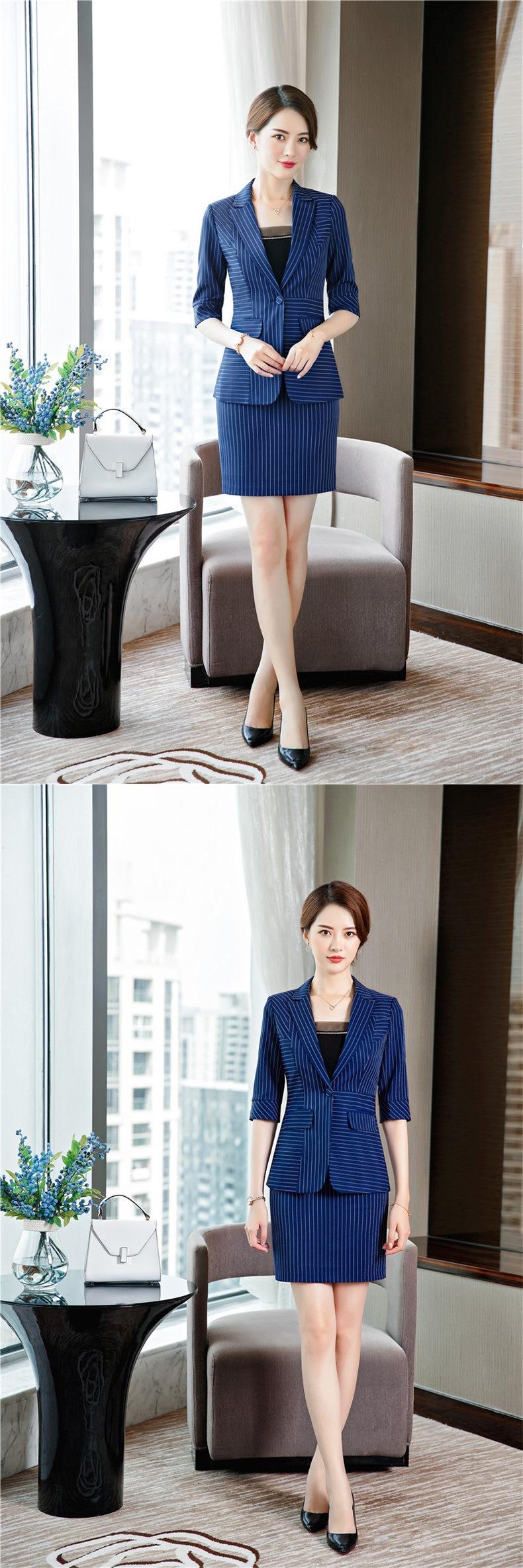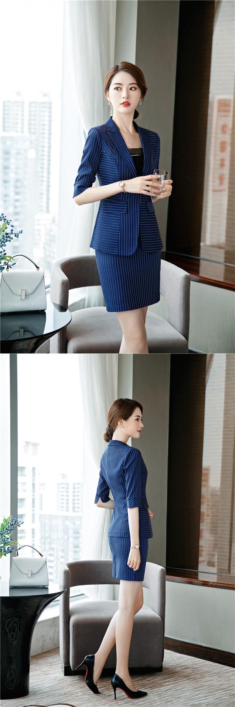 Traje de negocios para mujer, primavera, nueva moda, elegante, pequeño, vestido, informal, a rayas, falda y manga