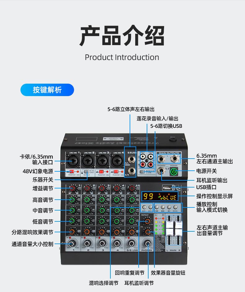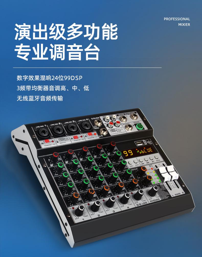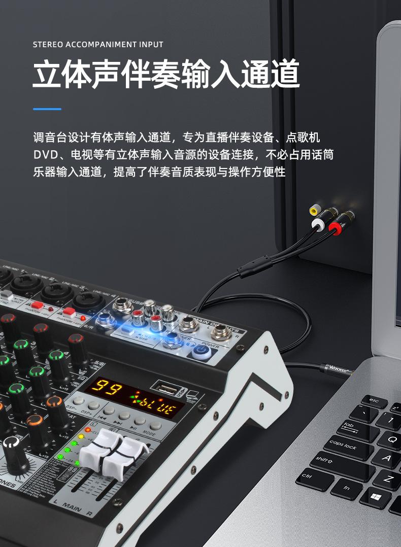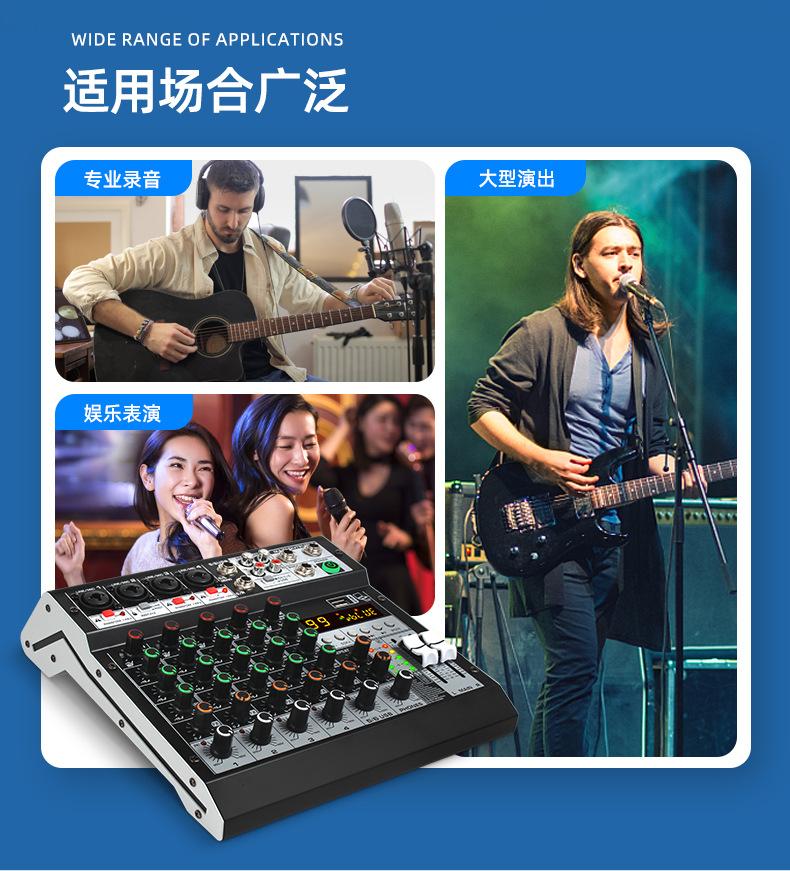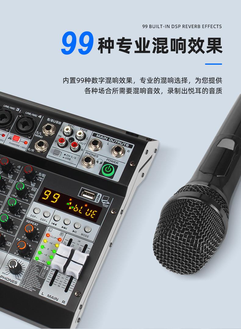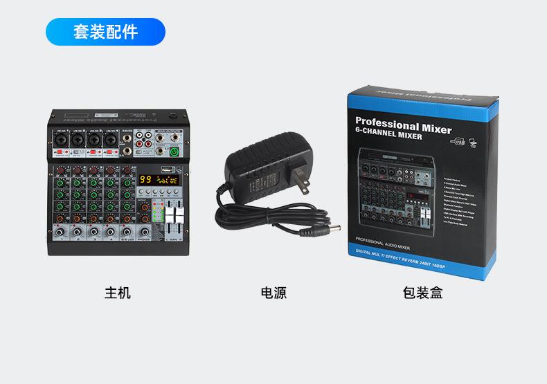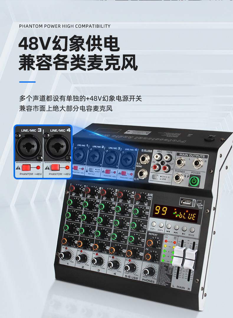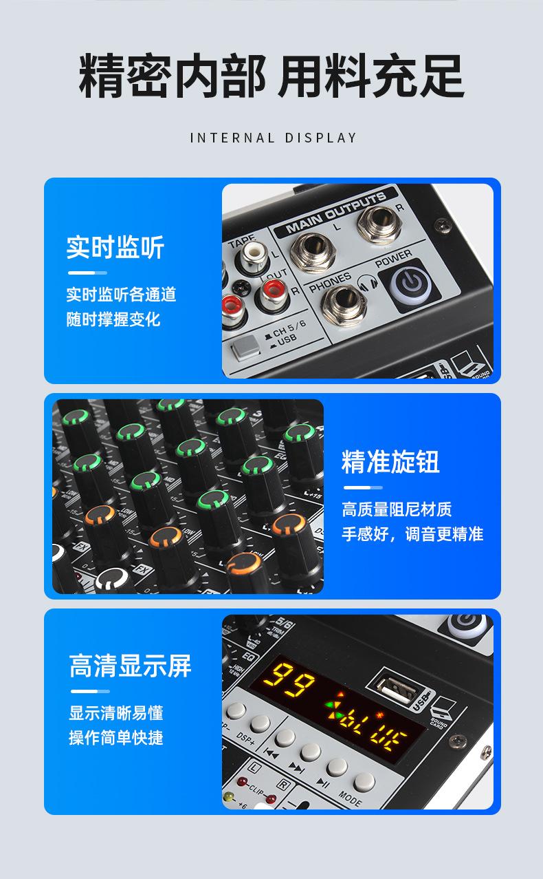 Mezclador de 6 vías para ordenador, grabador, teléfono móvil, tarjeta de sonido, escenario en vivo, Bluetooth, USB, mezclador de DJ de 8 vías
