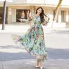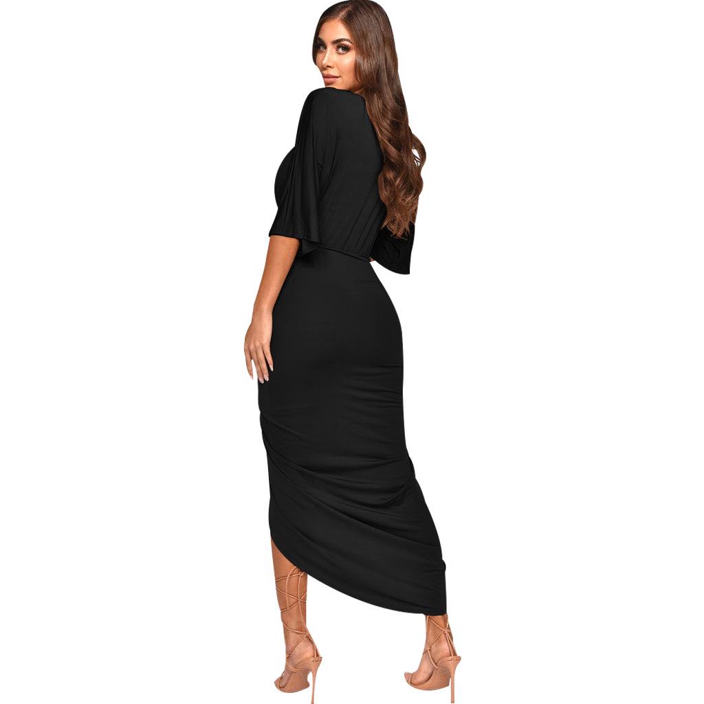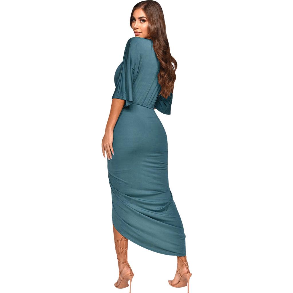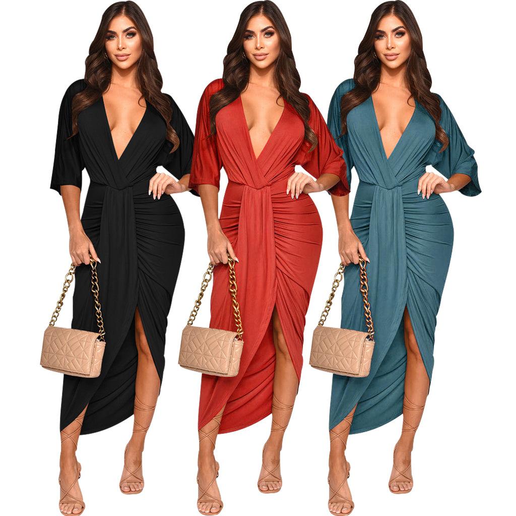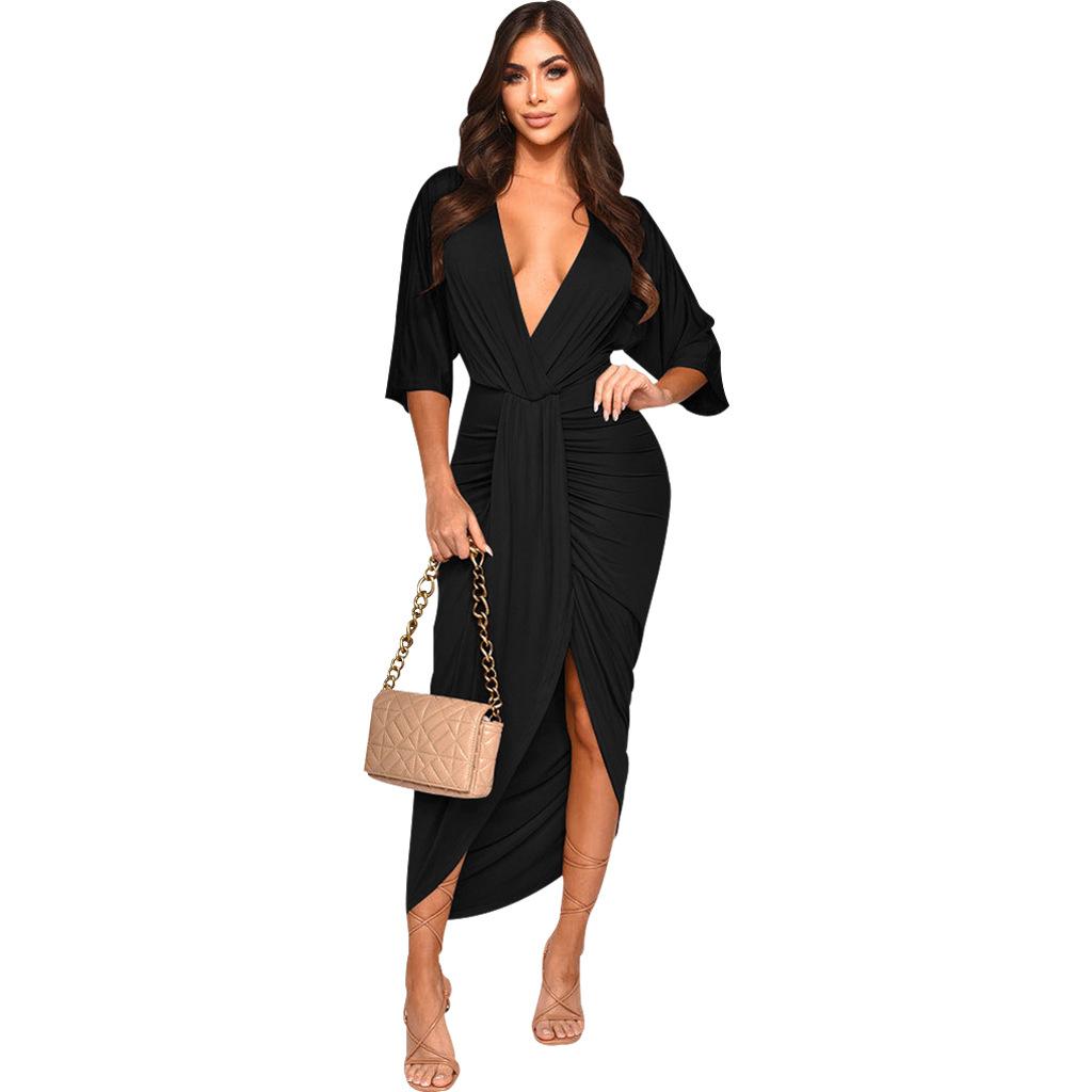 Vestido de verano 2023 de manga larga con cuello en V y cordones, ajustado, plisado, de longitud media, de comercio exterior de Amazon.