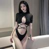 Camiseta de manga corta con costuras de encaje en la espalda, diseño sexy y ajustado, para chica sexy de verano 2024