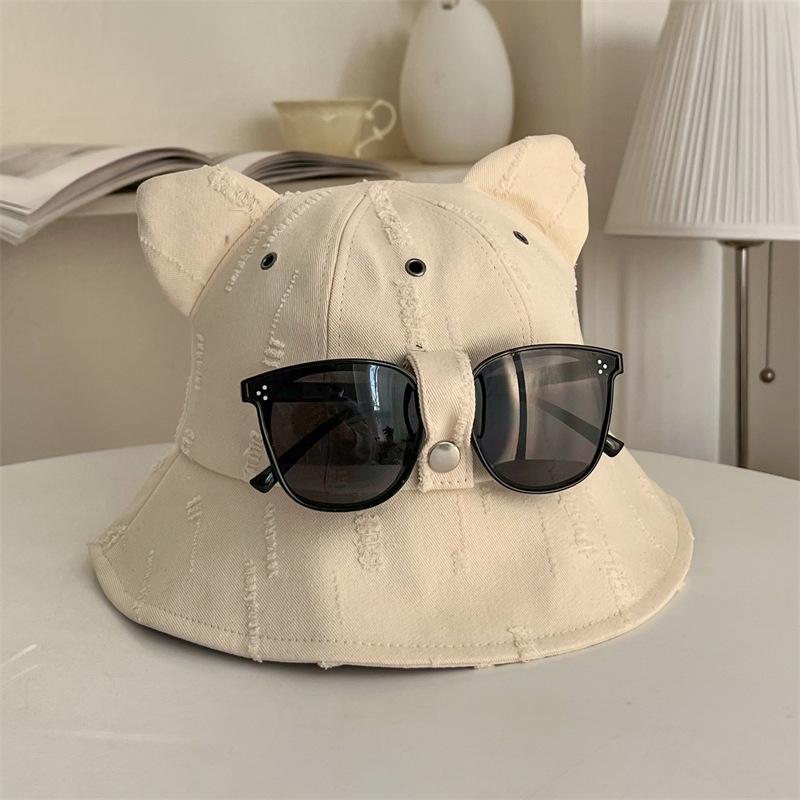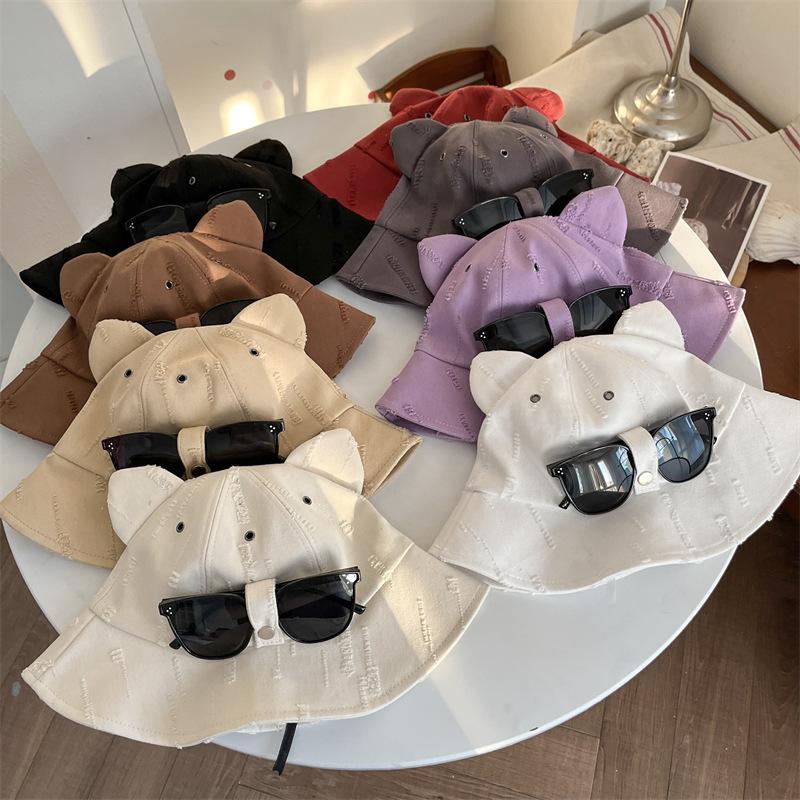 Nuevo sombrero de pescador con orejas de gato para mujer, estilo piloto, de primavera, combina con todo, para exteriores, protector solar, moderno