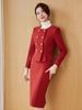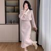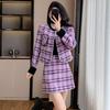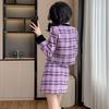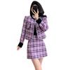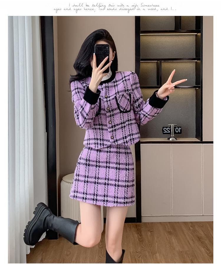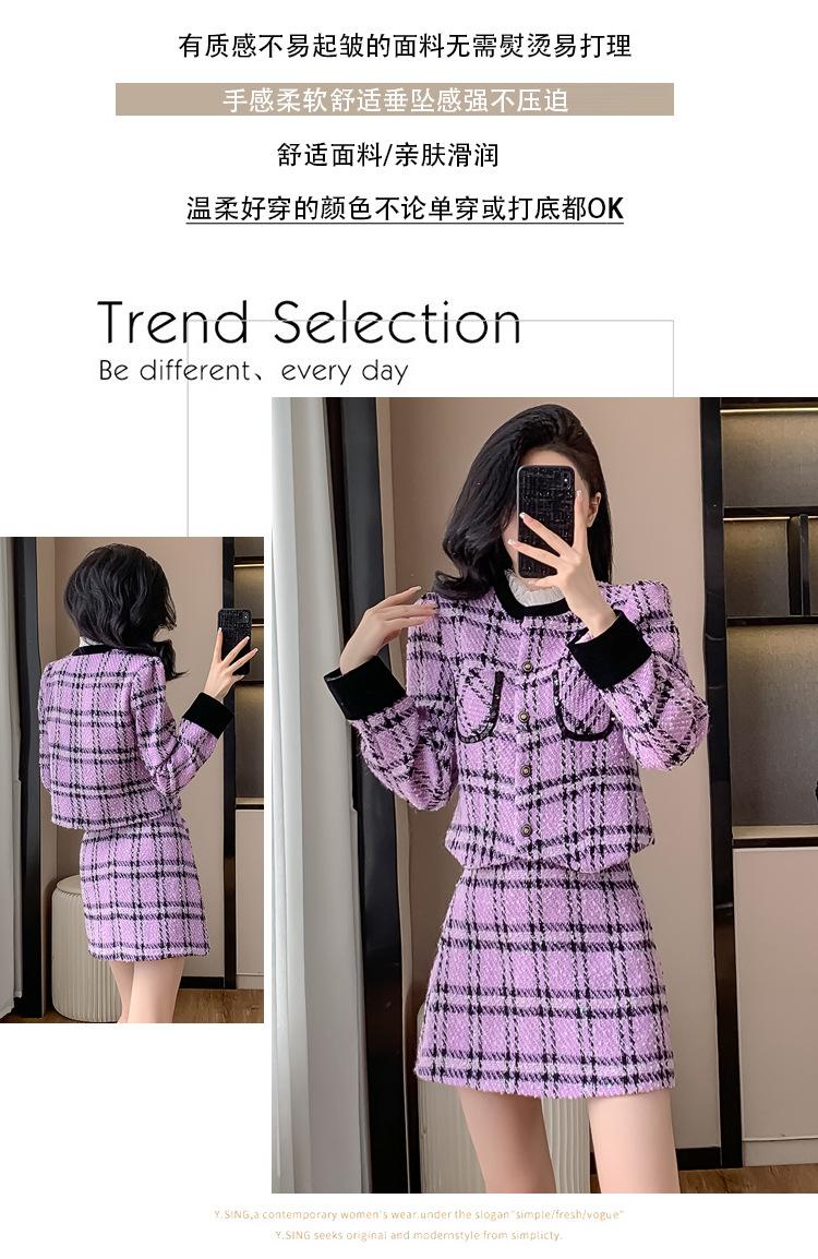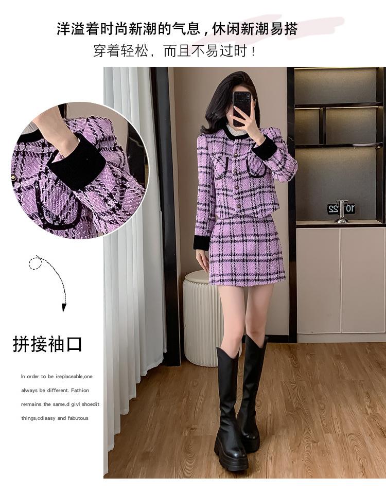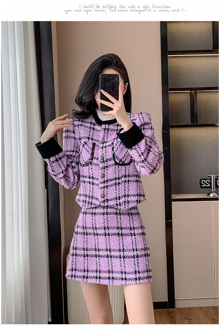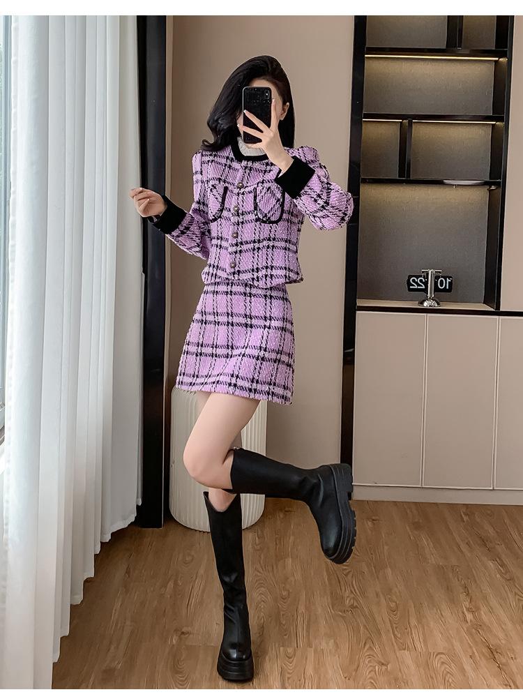 2025 otoño e invierno nuevo abrigo de estilo pequeño para mujer pata de gallo con lentejuelas cuello redondo abrigo con falda traje de dos piezas