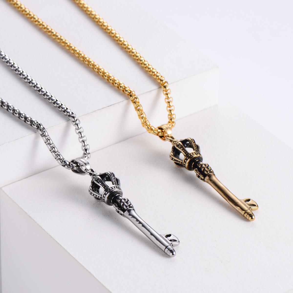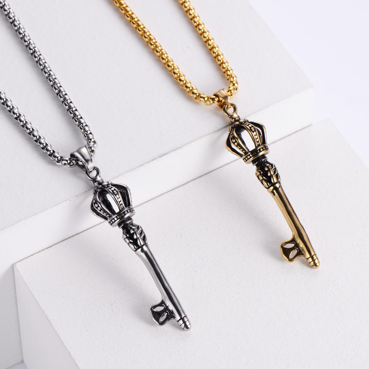 【Nuevo en nuestra tienda] Llave corona retro de acero de titanio acero de titanio 304 ennegrecido accesorios de moda para combinar ropa colgante collar caliente