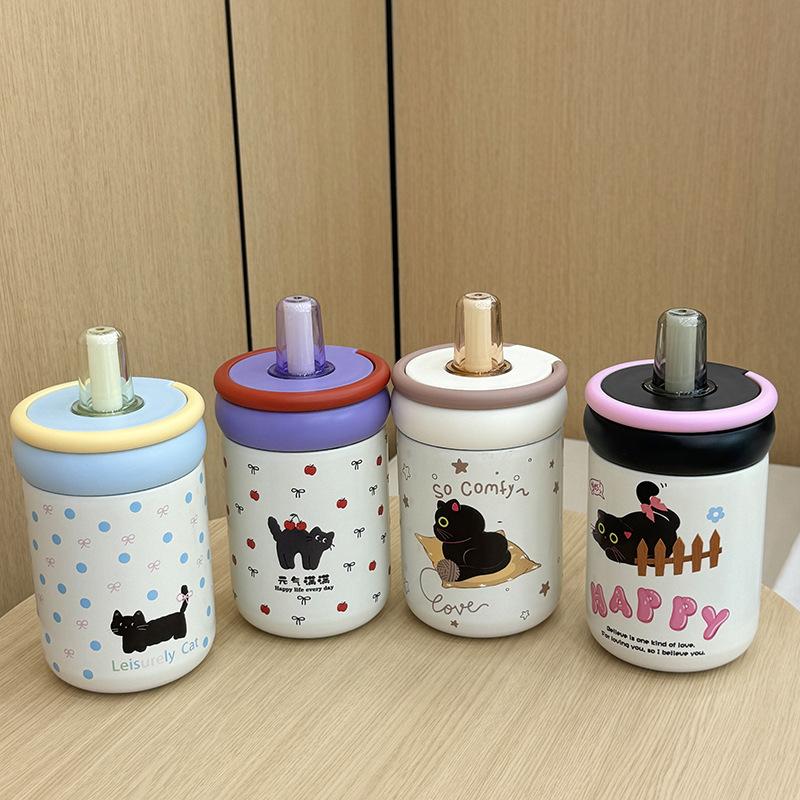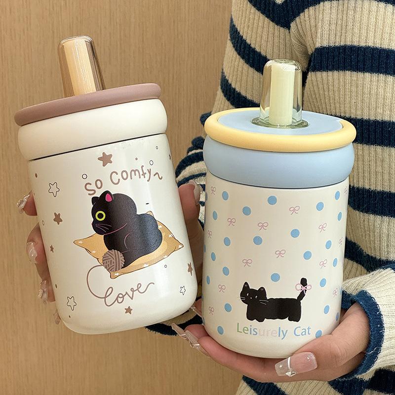 Cat desktop thermos cup wool cat, Cat desktop thermos cup apple cat, Cat desktop thermos cup bow cat, Cat desk...