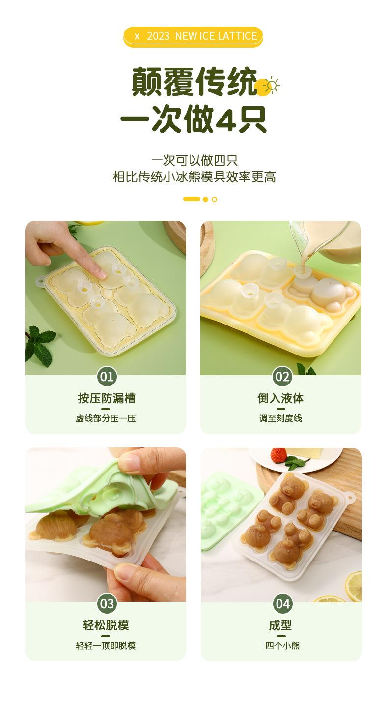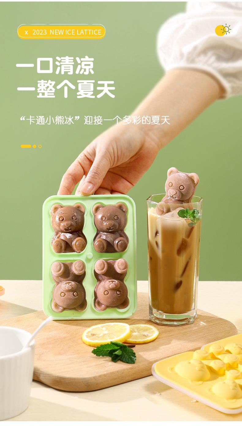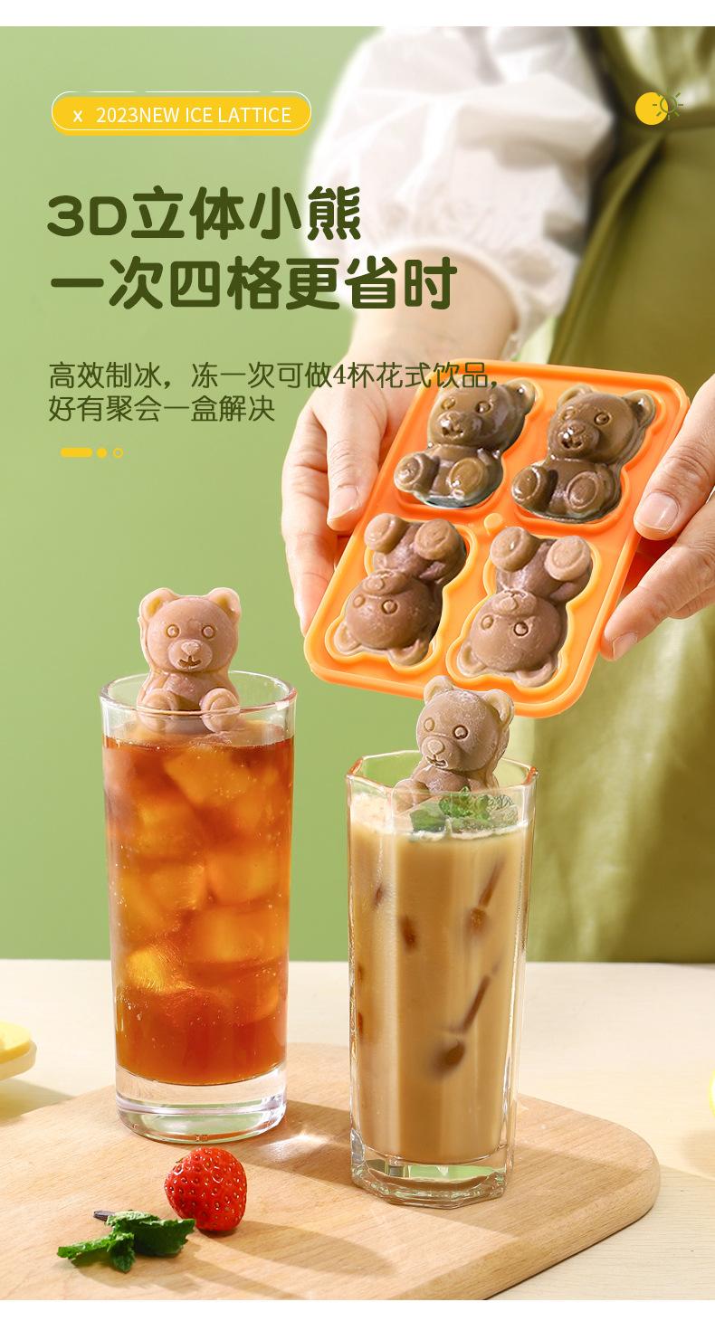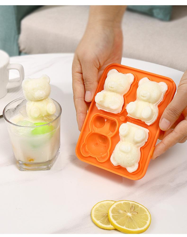 Molde para Cubitos de Hielo con Forma de Oso de Cuatro Enlaces, Popular Bandeja de Hielo de Silicona para Uso Doméstico, Helado Paleta Bola de Hielo Congelada Molde de Hielo