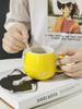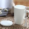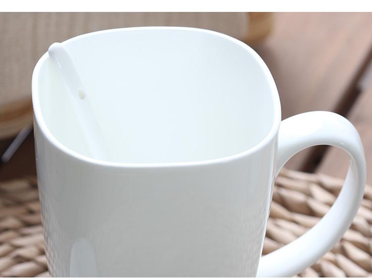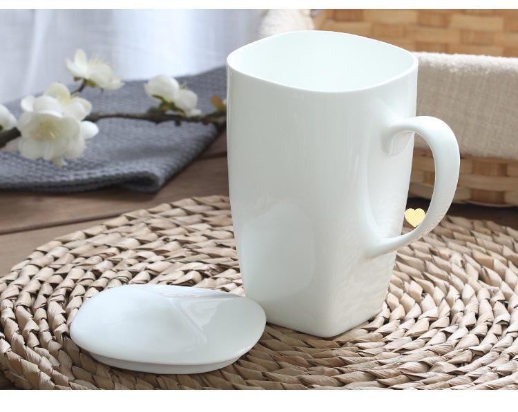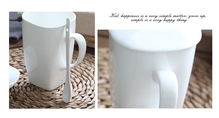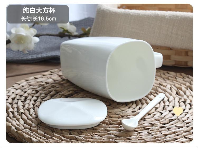 Taza cuadrada de cerámica de gran capacidad, taza de agua con tapa y cuchara, taza de leche, oficina, porcelana china creativa, hogar creativo