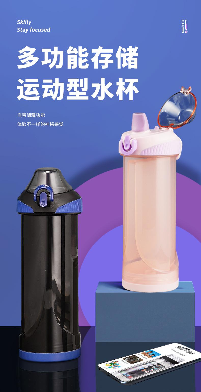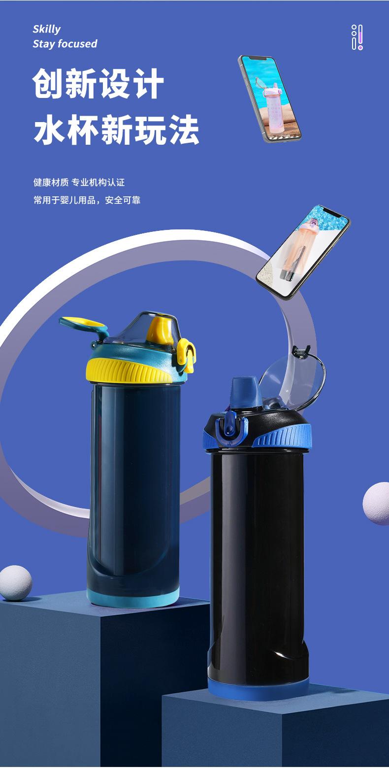 Vaso de Agua Deportivo de Gran Capacidad de Alto Color Botella de Agua para Fitness Boca para Beber Directamente Vaso de Plástico Vaso de Estudiante de Verano Botella de Agua