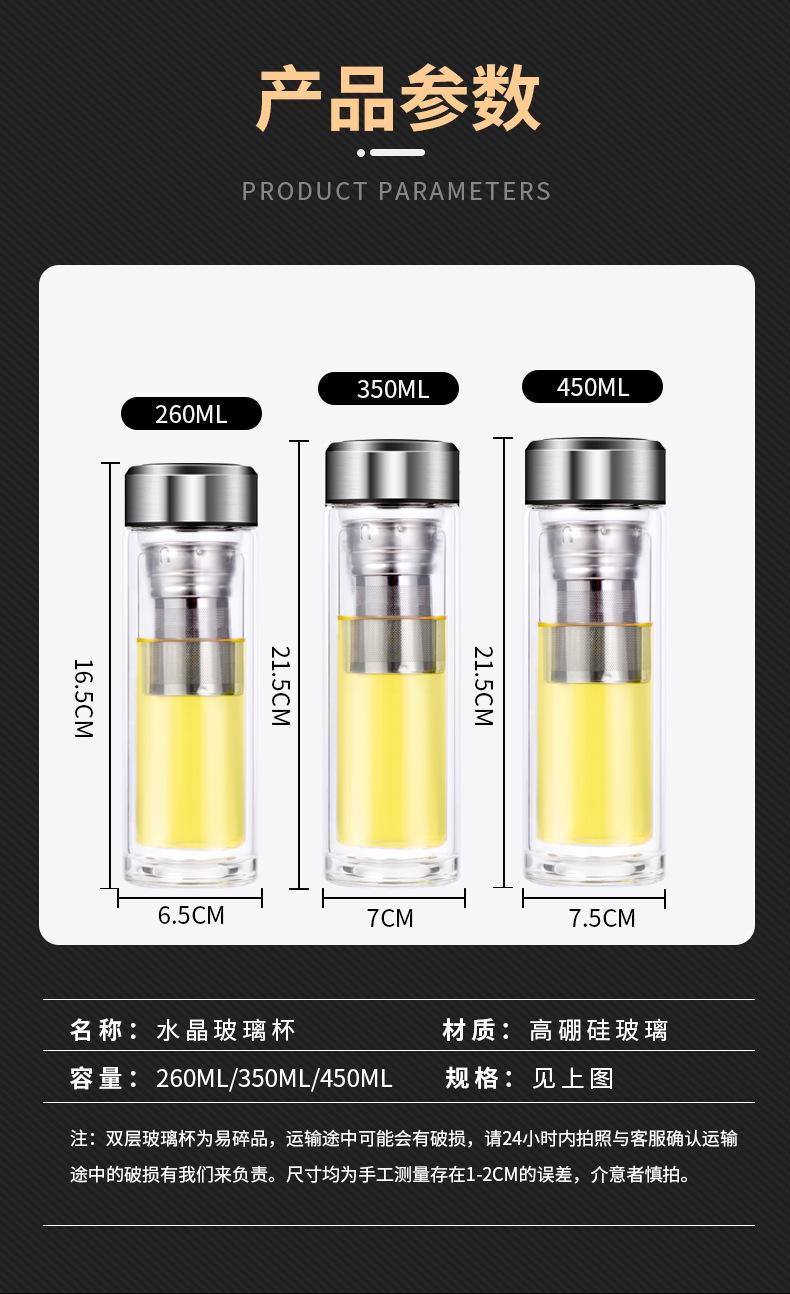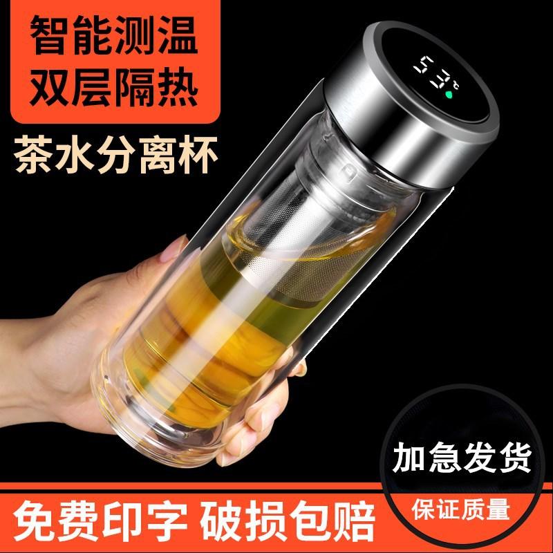 Taza de té con aislamiento de vidrio de doble capa, impresión personalizada con logotipo, separación de temperatura, regalo, venta al por mayor, taza de té personalizada