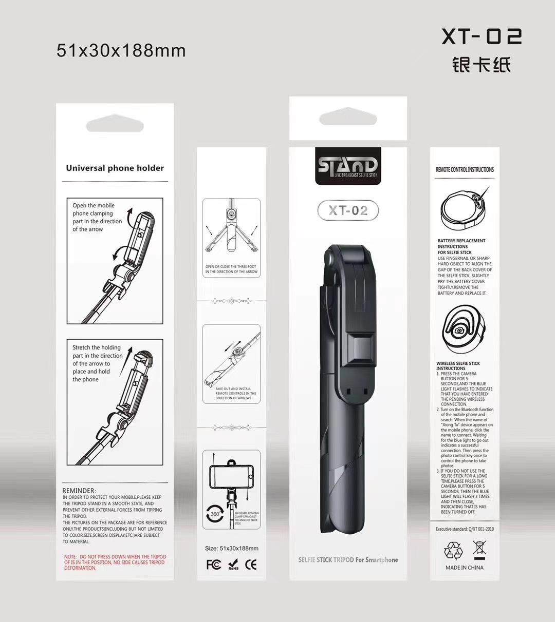 Ventas directas de fábrica del nuevo palo selfie trípode XT10 para disparo horizontal y vertical, el popular palo selfie retráctil