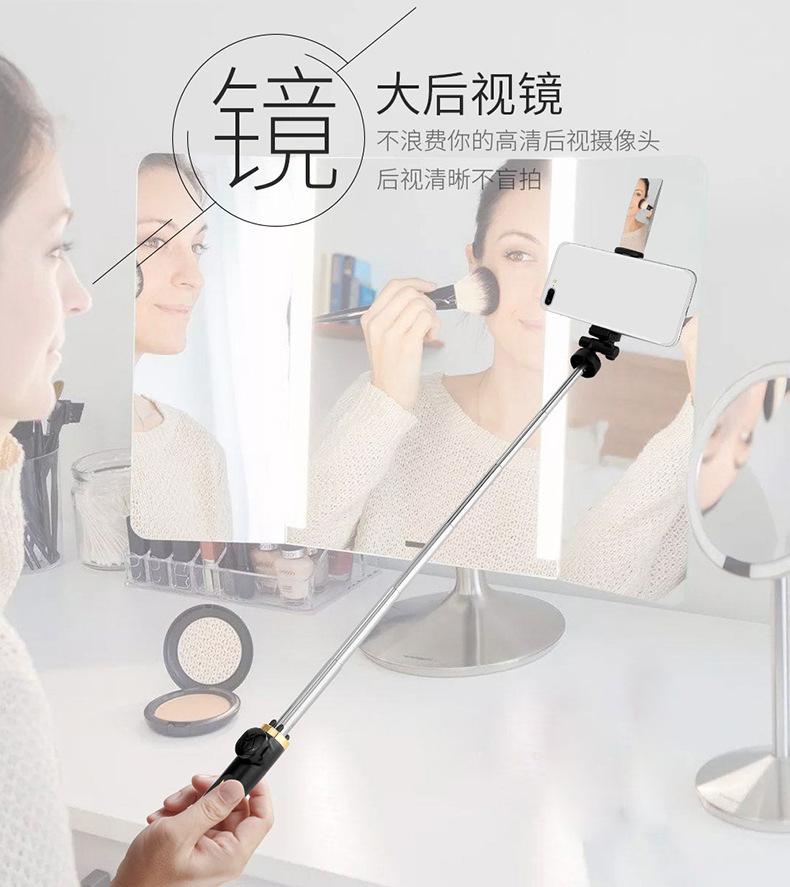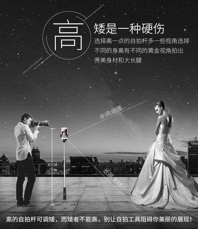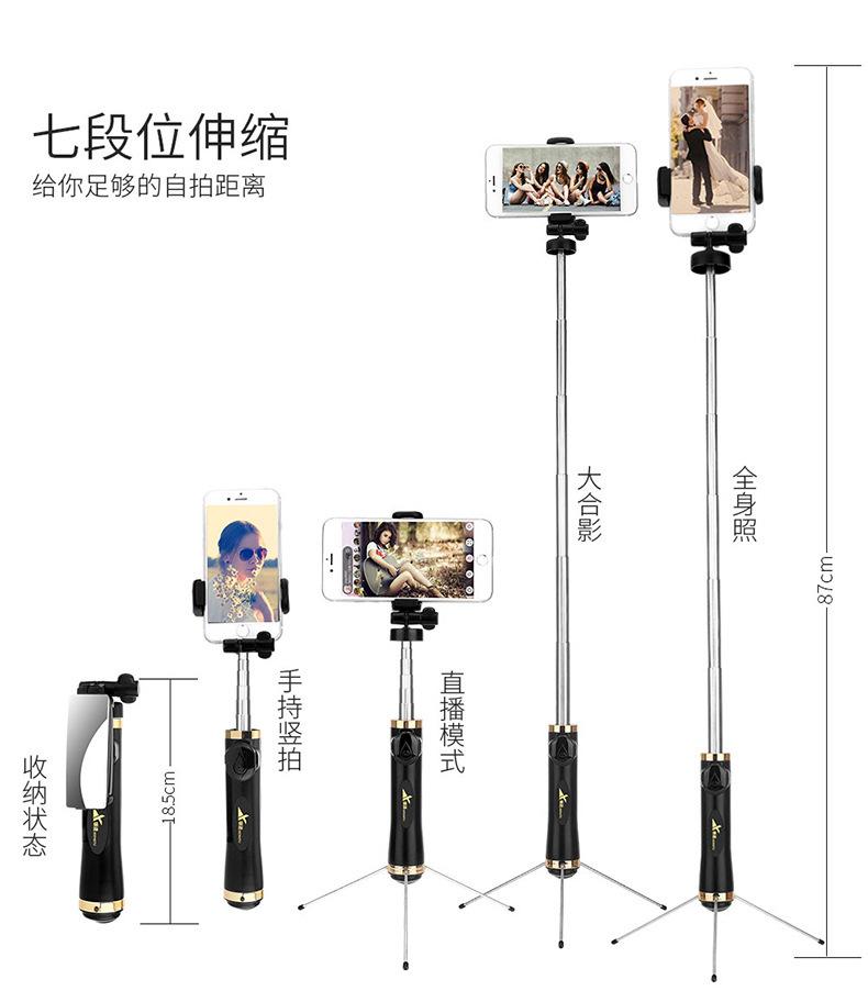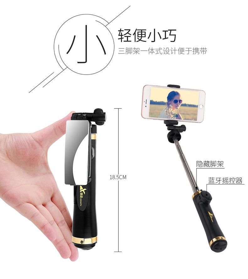 Diseño de control remoto Bluetooth, tiene la función de un palo para selfies tradicional cuando está instalado, y es más conveniente tomar selfies cuando se quita, por lo que nadie se perderá en una foto grupal;