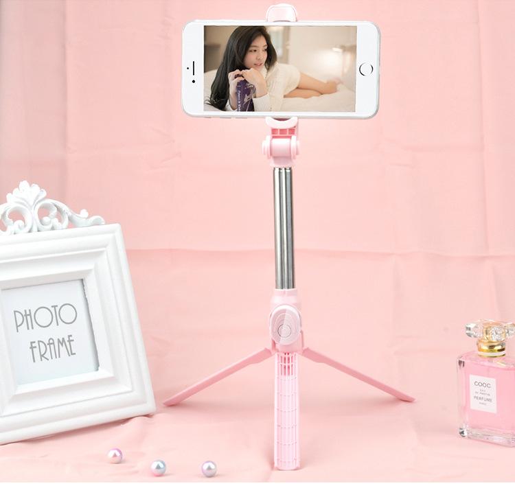 El diseño de trípode integrado se puede utilizar como trípode para teléfono móvil o soporte de escritorio, lo que lo hace conveniente para fotografías grupales y libera sus manos para ver programas de televisión;