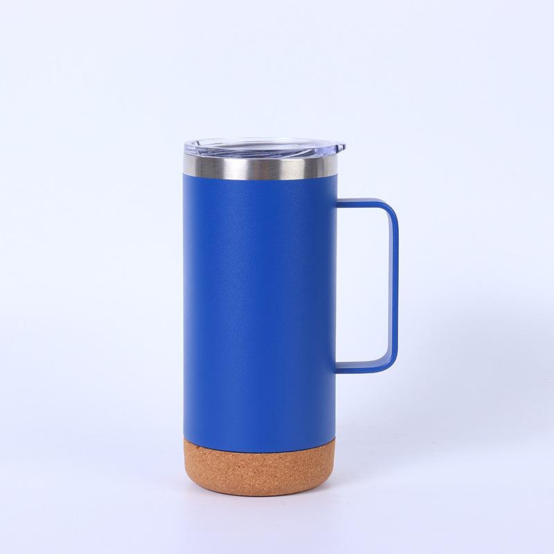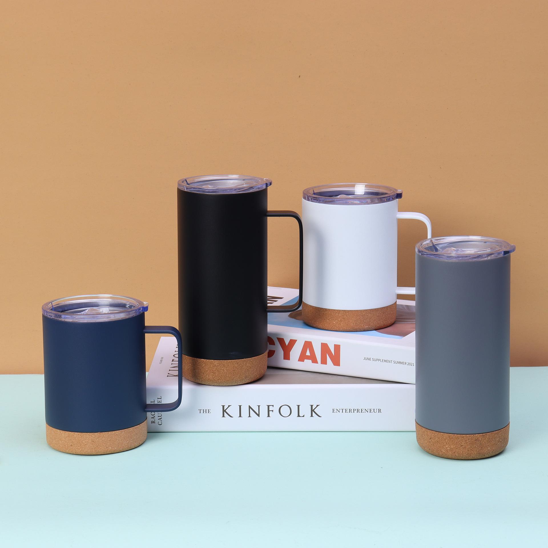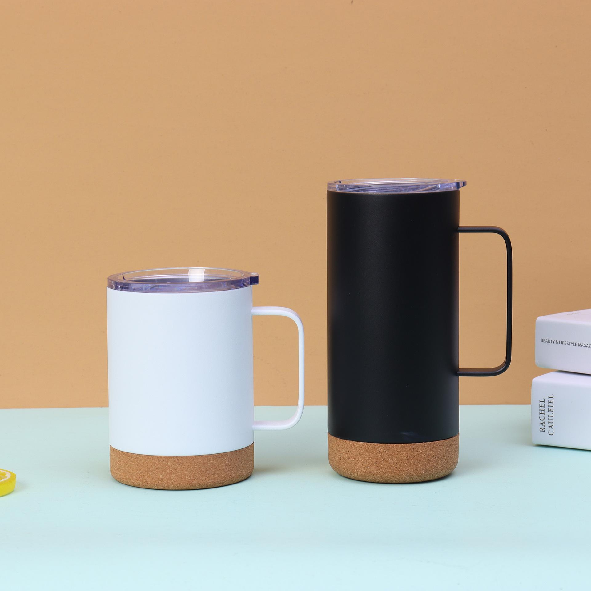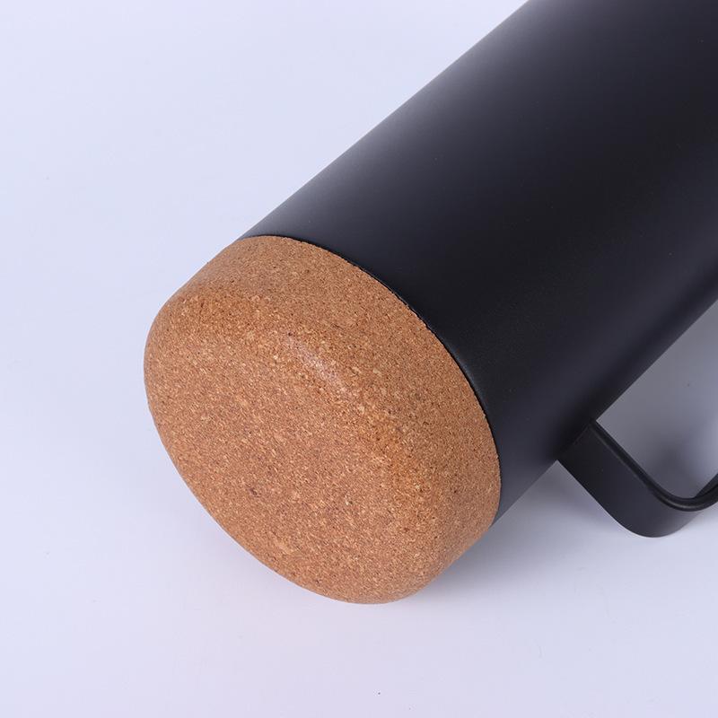 Termo de acero inoxidable 304 de doble capa con asa y fondo de corcho, taza de agua portátil de gran capacidad y recta.