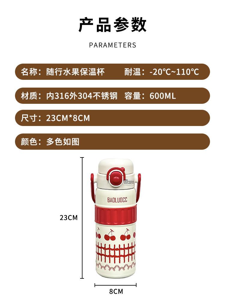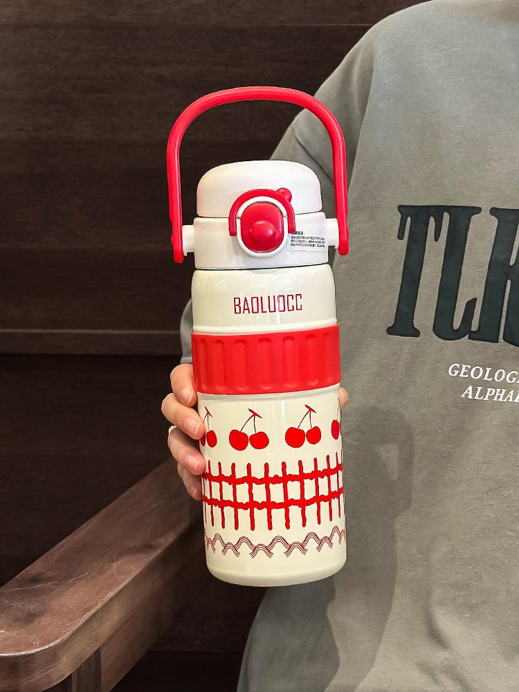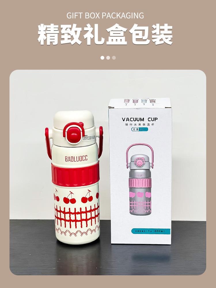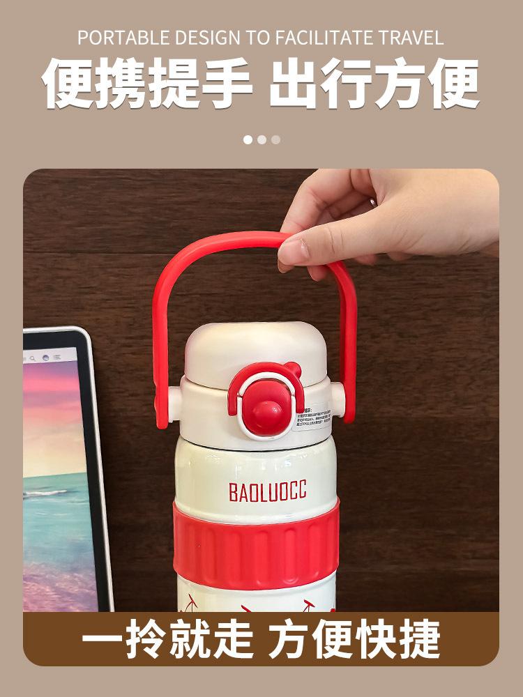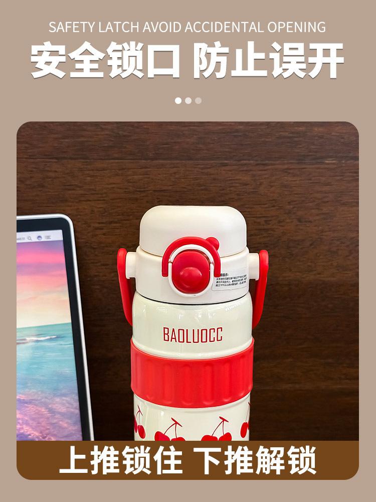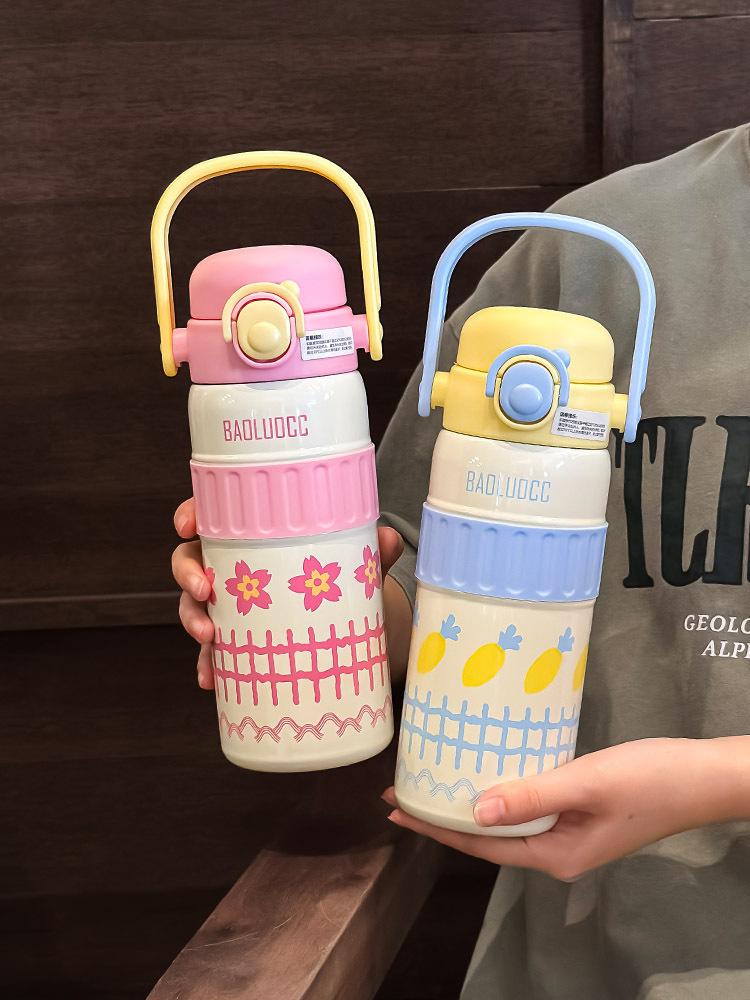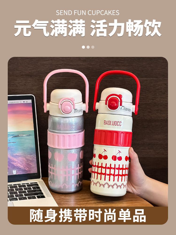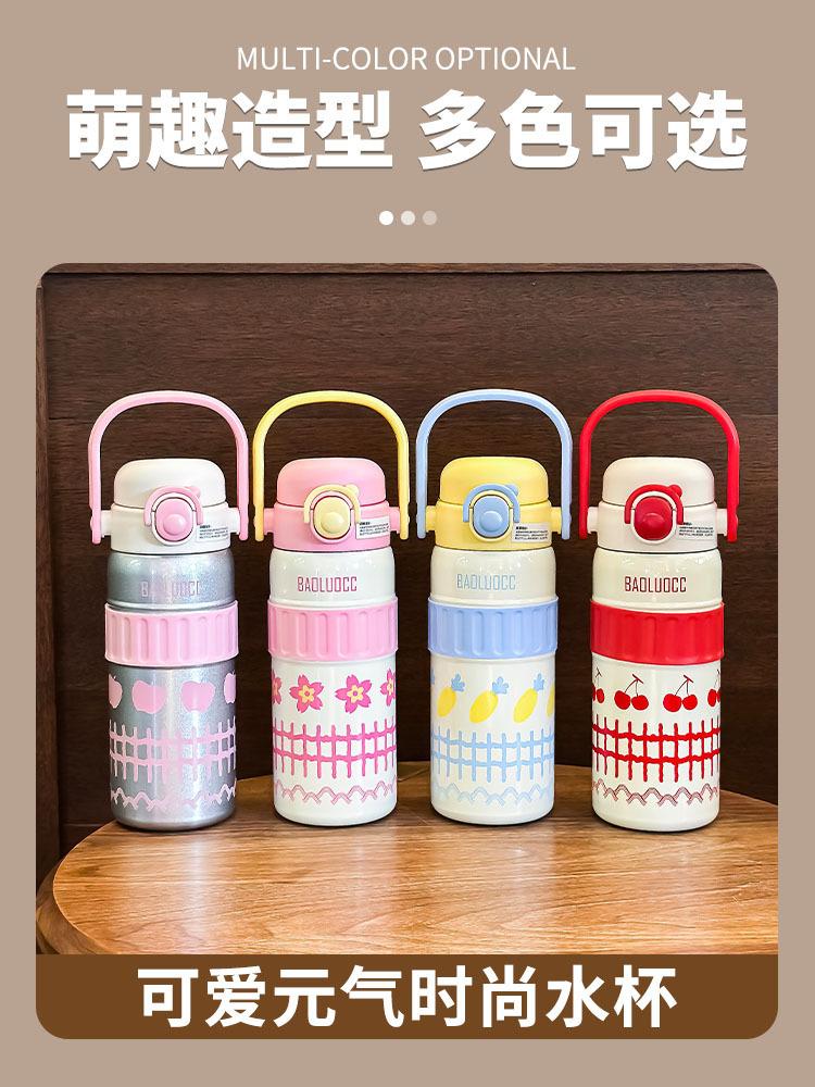 Taza de agua portátil para niñas, de acero inoxidable 316, con alto valor de color, doble ventosa para bebidas, gran capacidad, termo portátil para estudiantes.