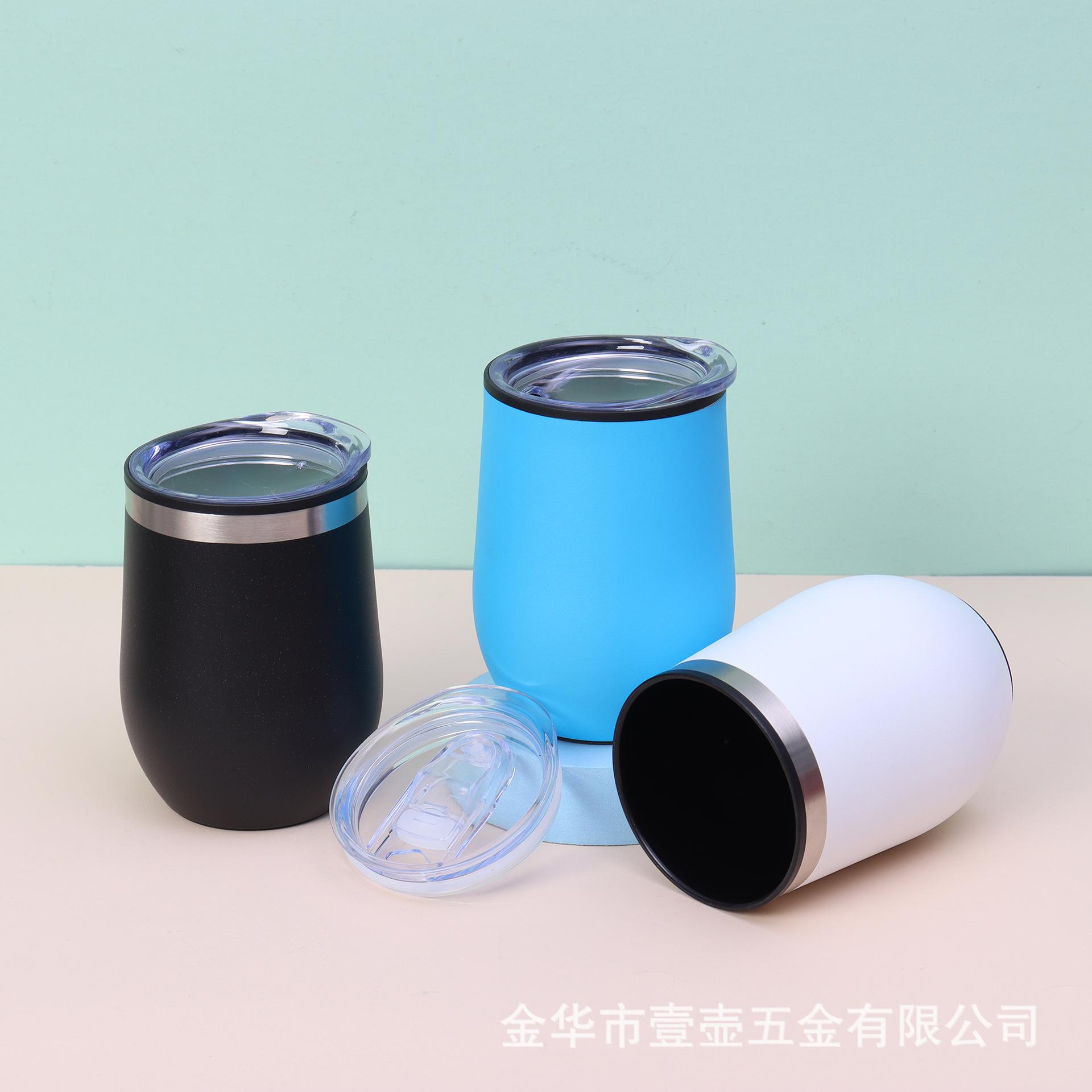 Nueva taza de cáscara de huevo de 12 oz, termo de vacío de acero con interior y exterior de plástico, mini taza de huevo frío, taza de vino tinto en forma de U, venta al por mayor