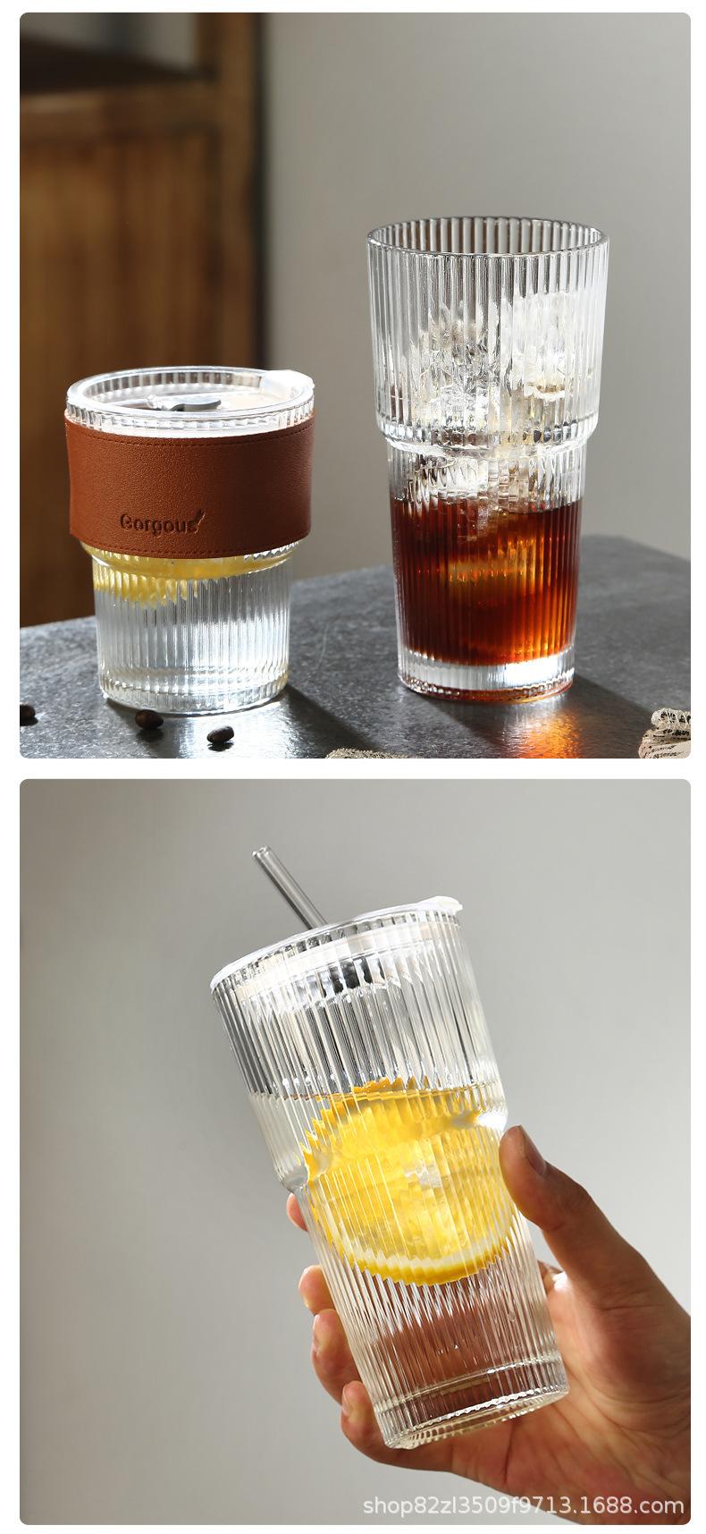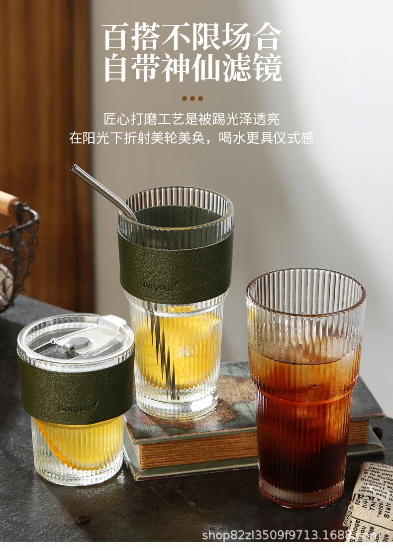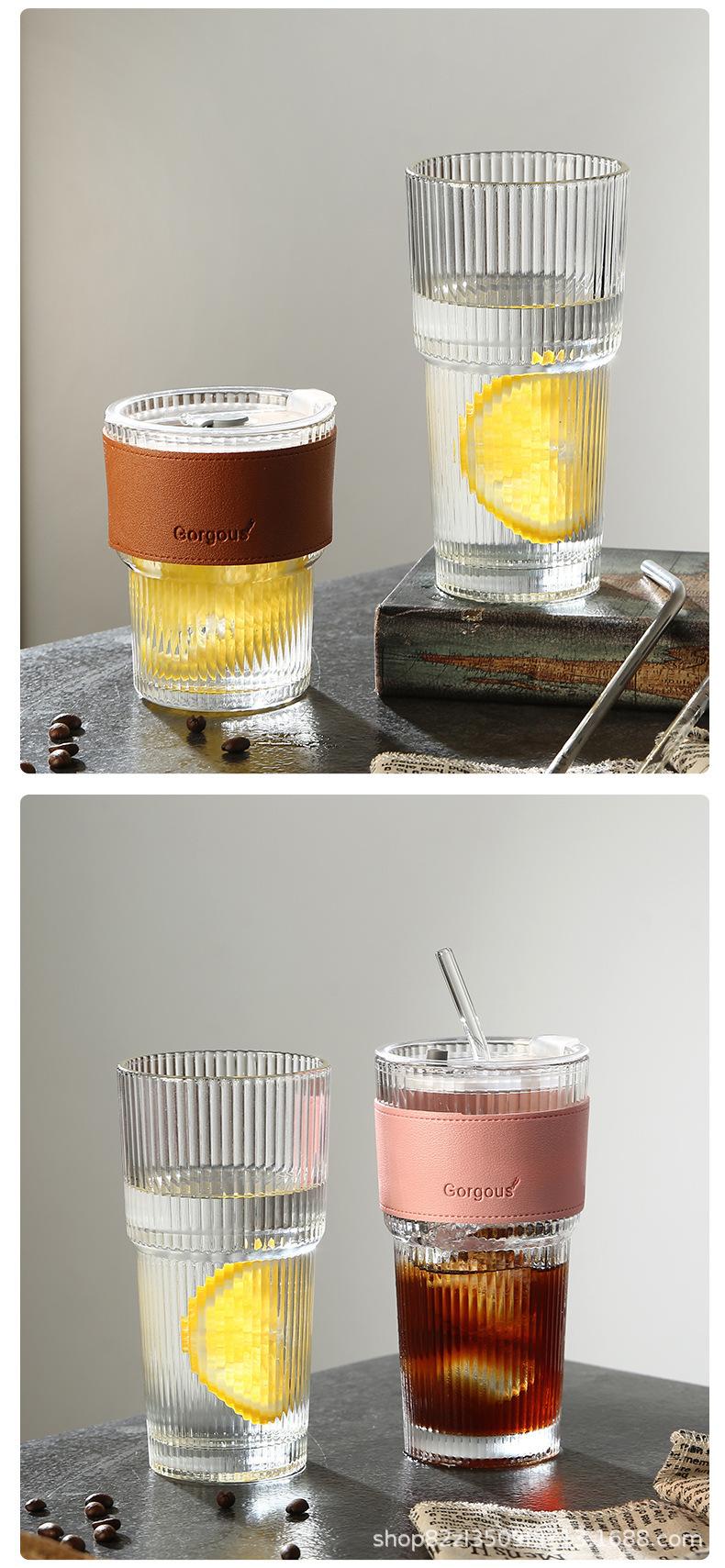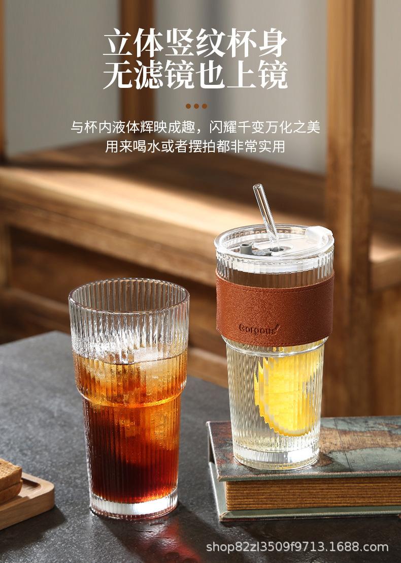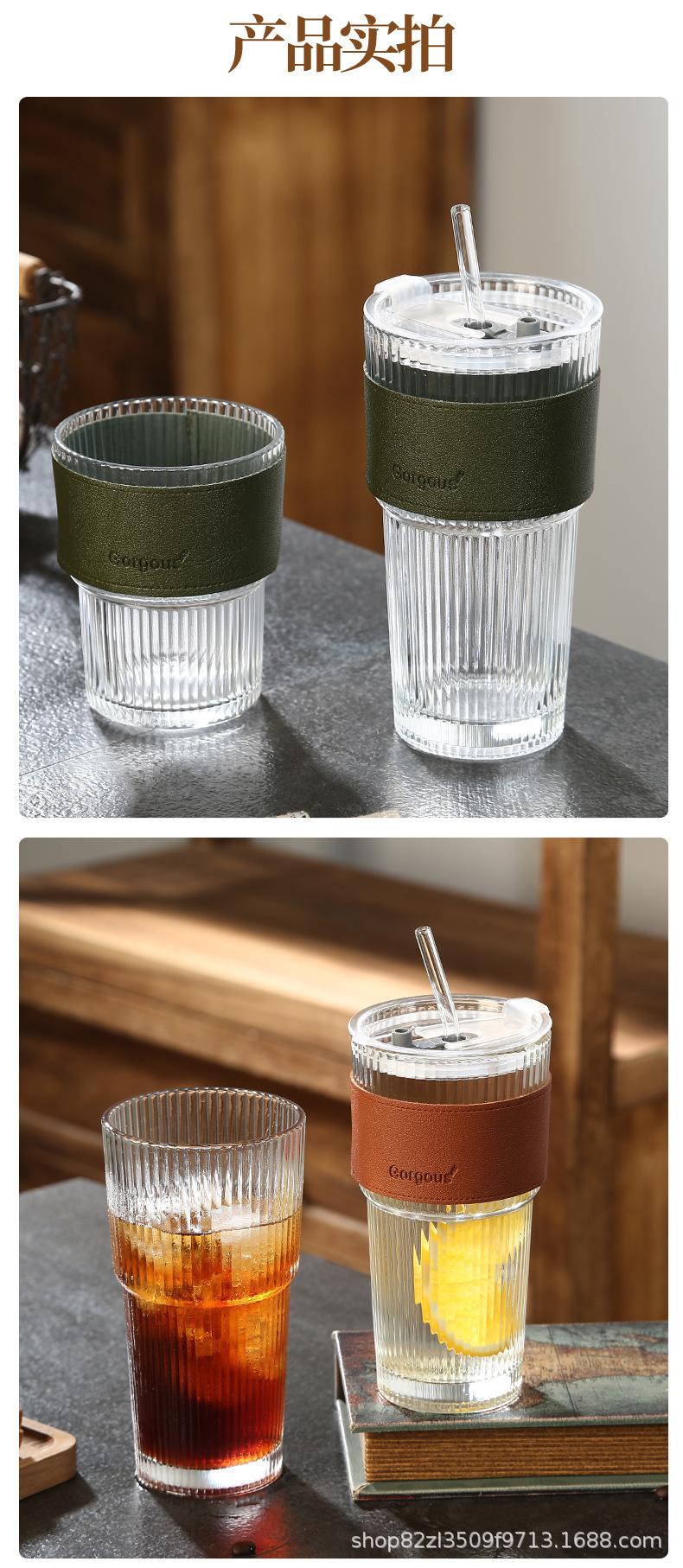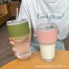 Taza de succión vertical de gran capacidad, taza doble para bebidas, para oficina y hogar, para jugos de frutas, café, vaso de vidrio con tapa, taza de mano