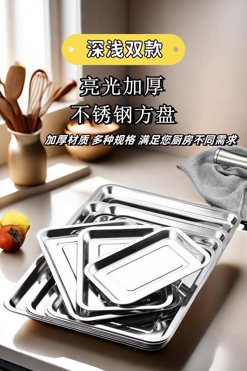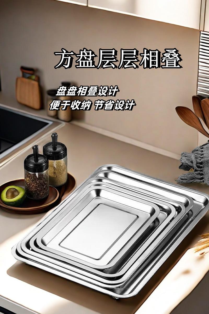 Plato cuadrado de acero inoxidable grueso, bandeja rectangular cuadrada, plato para barbacoa, cantimplora, plato de arroz al vapor de gran capacidad, plato para la cena, plato de pescado a la parrilla