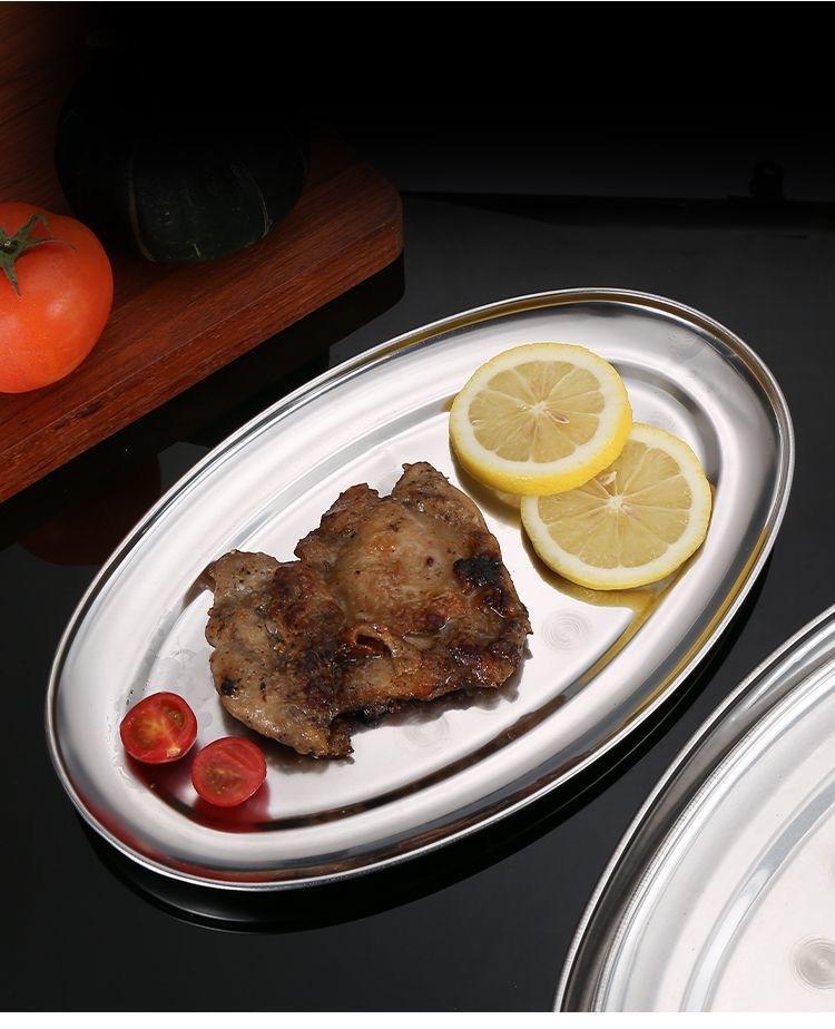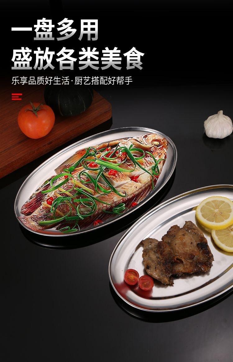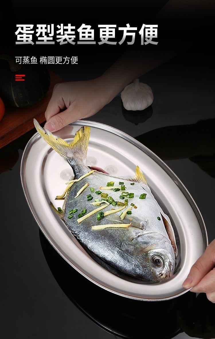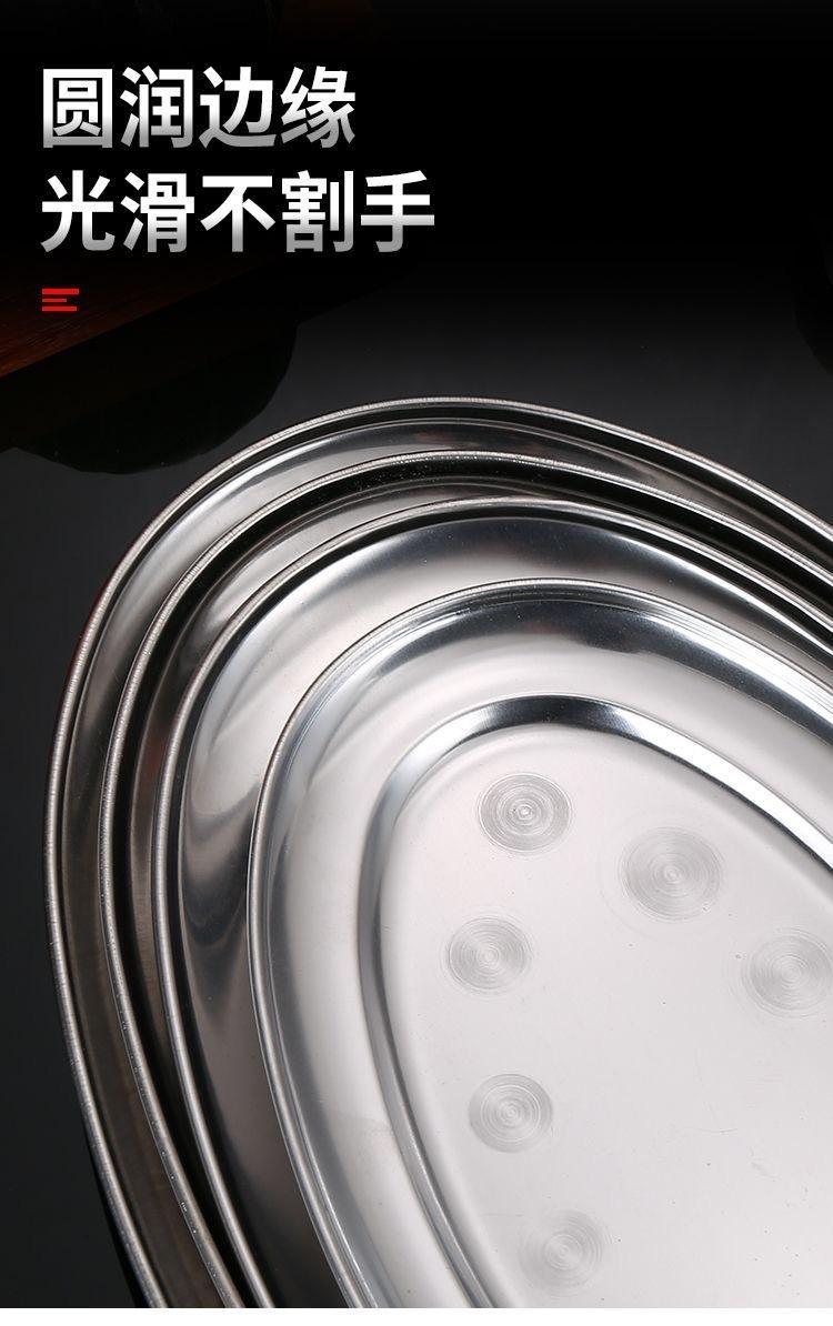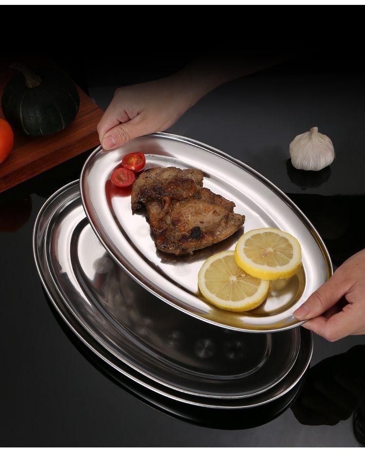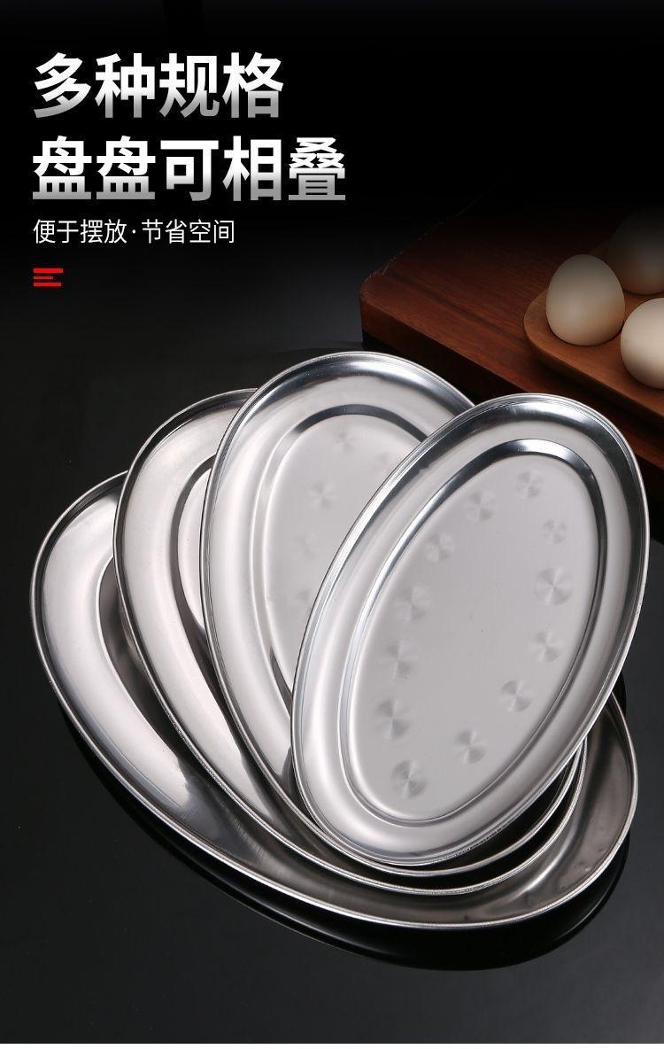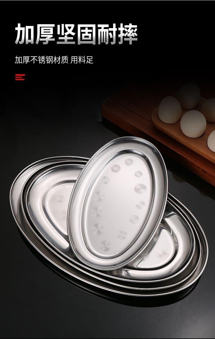 Plato ovalado de acero inoxidable, plato grueso con forma de huevo, plato de pescado al vapor para el hogar, plato de barbacoa para restaurante, plato poco profundo, plato de fruta, adecuado